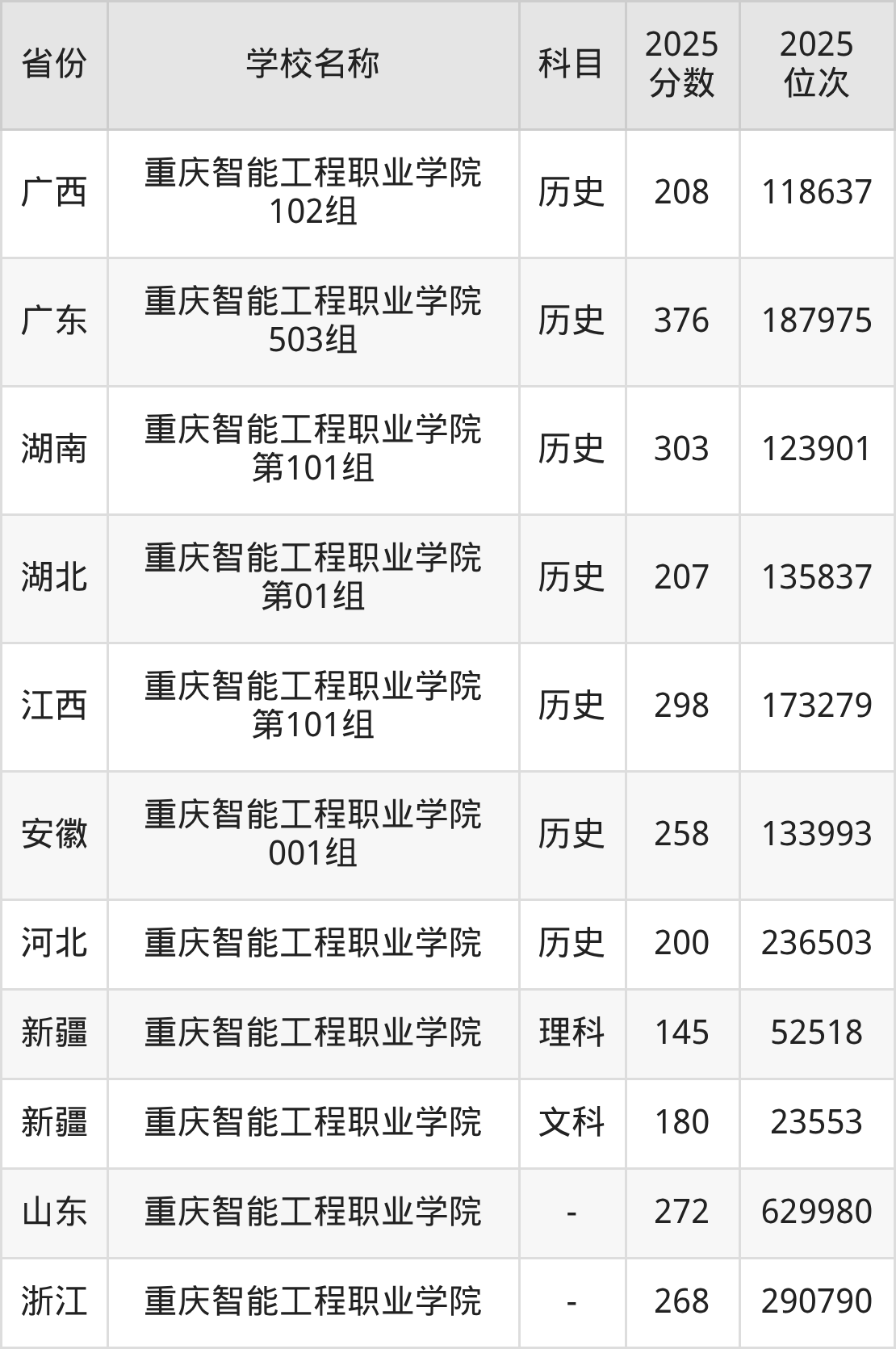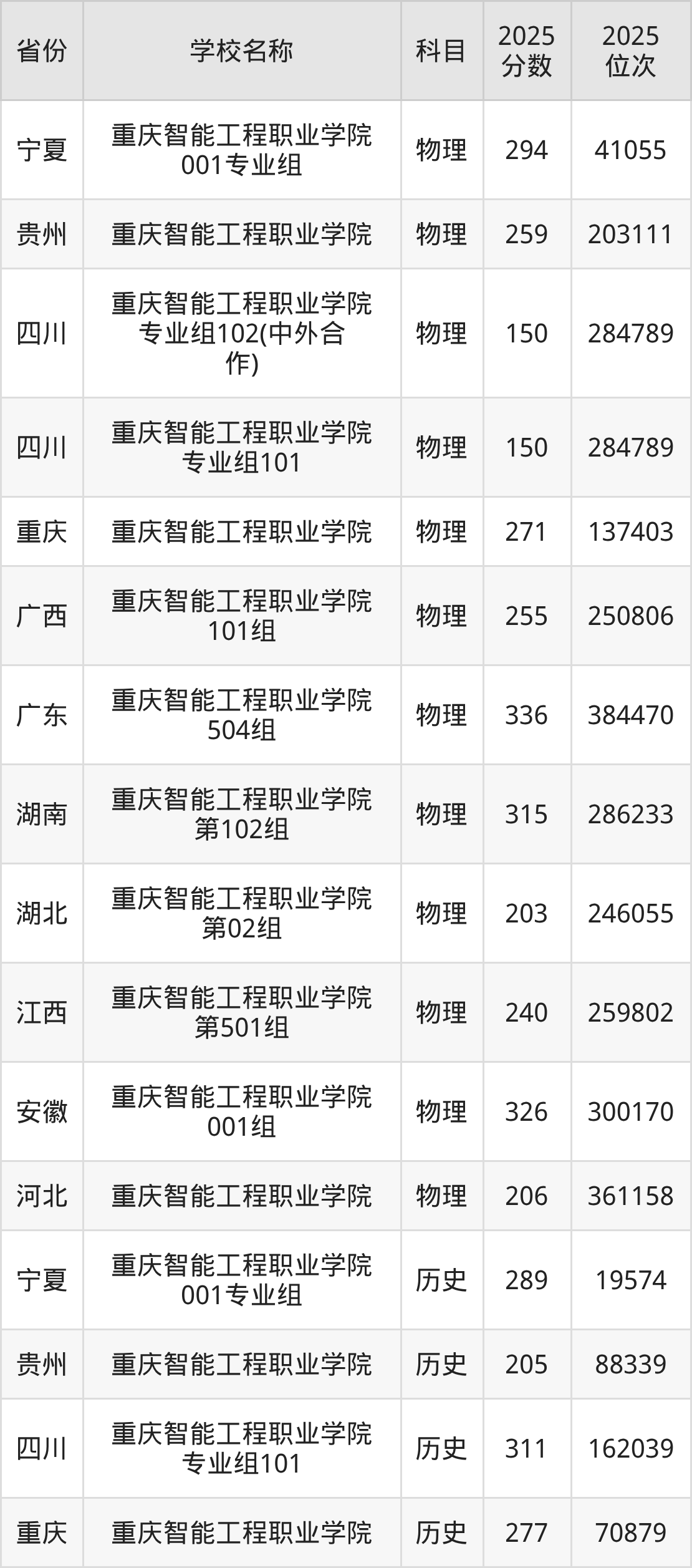 重庆智能工程职业学院2025年面向重庆市内首选了历史科目的考生招生:
