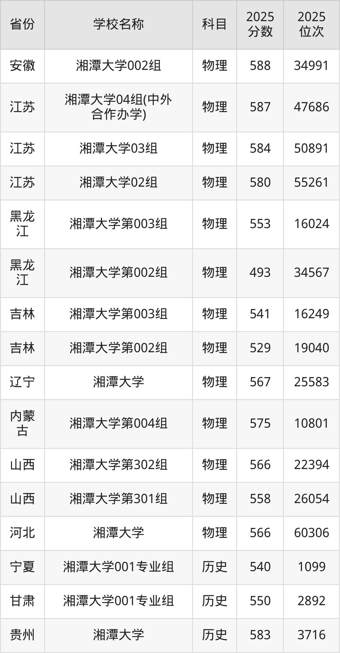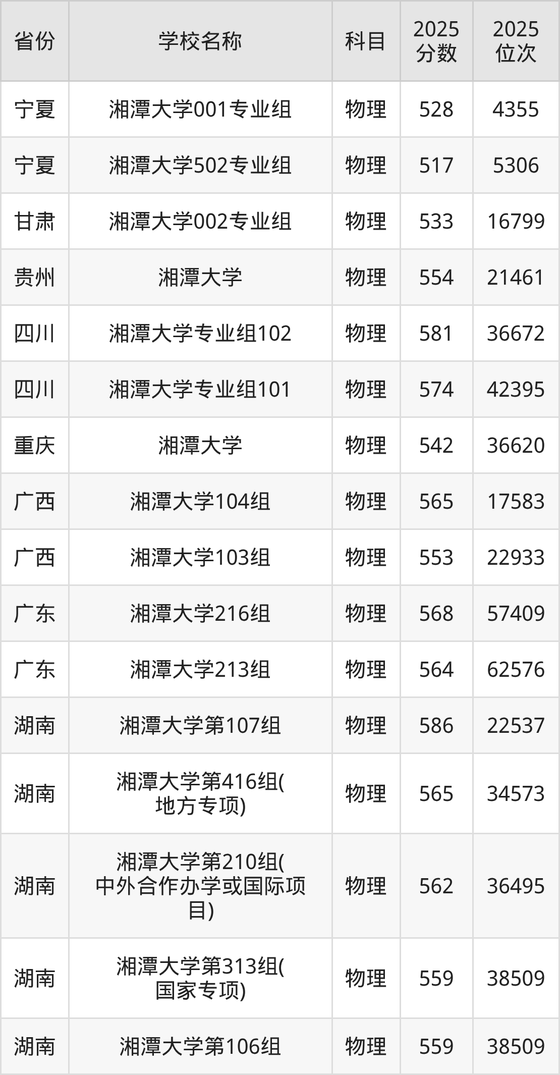 湘潭大学2025年有10个专业组面向湖南省内首选了物理科目的考生招生: