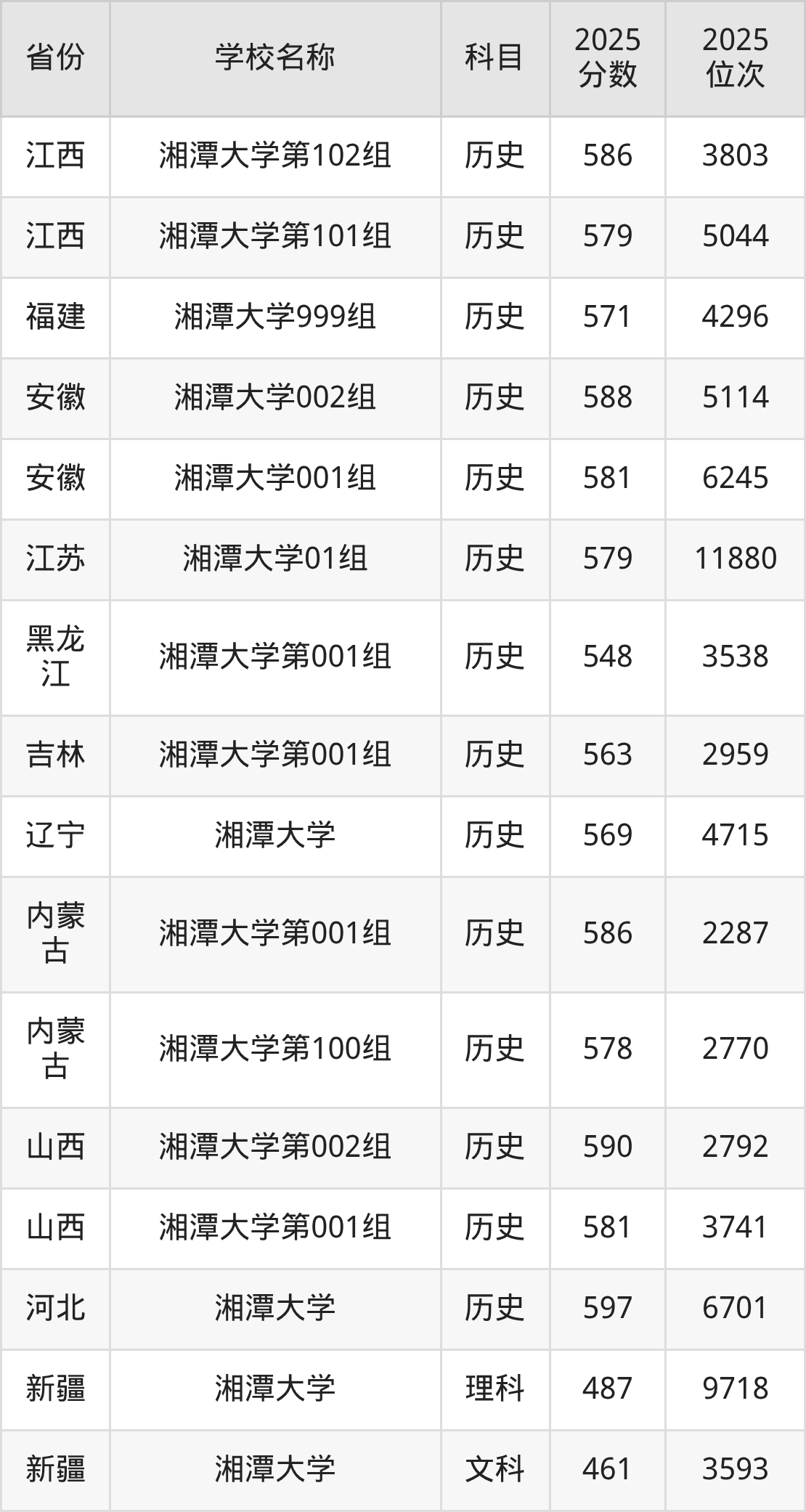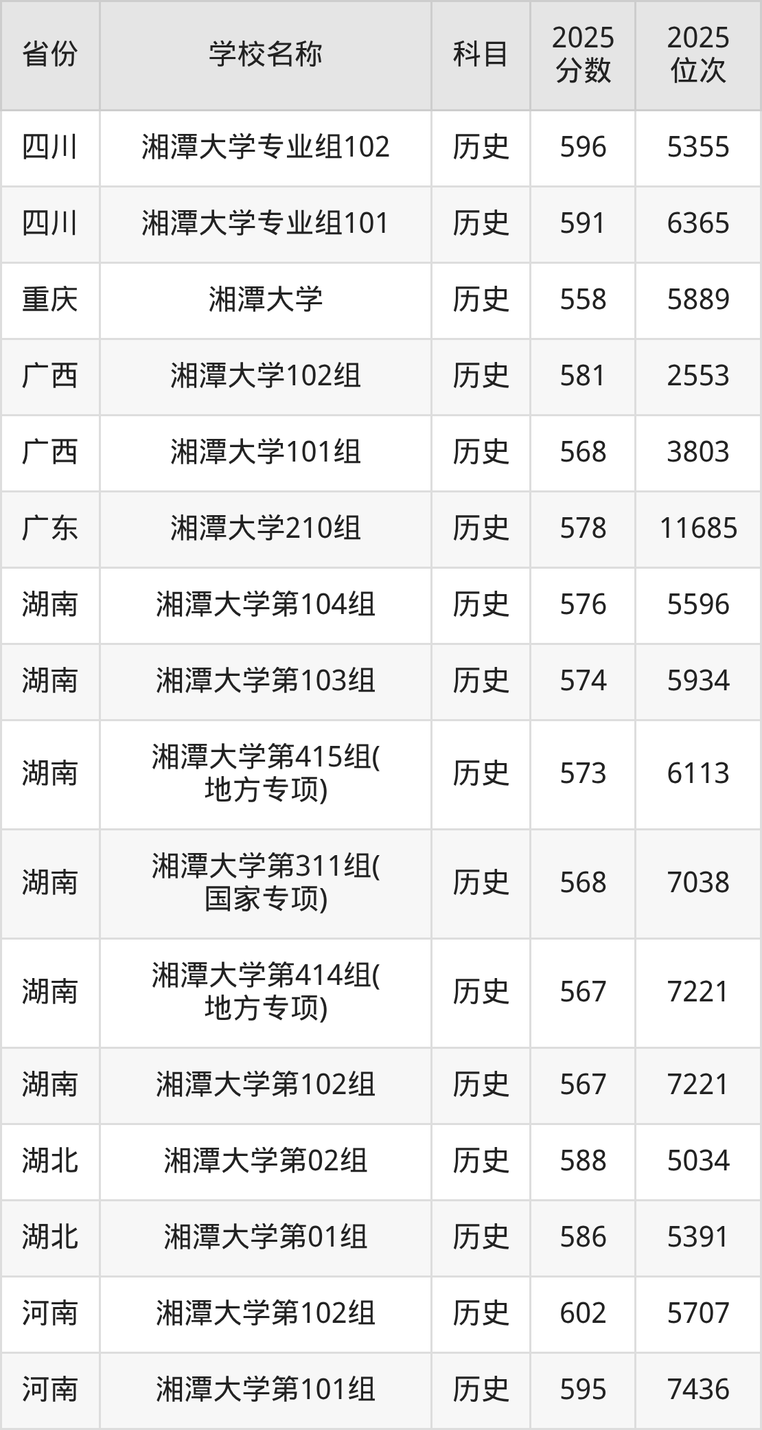 湘潭大学2025年有6个专业组面向湖南省内首选了历史科目的考生招生:
