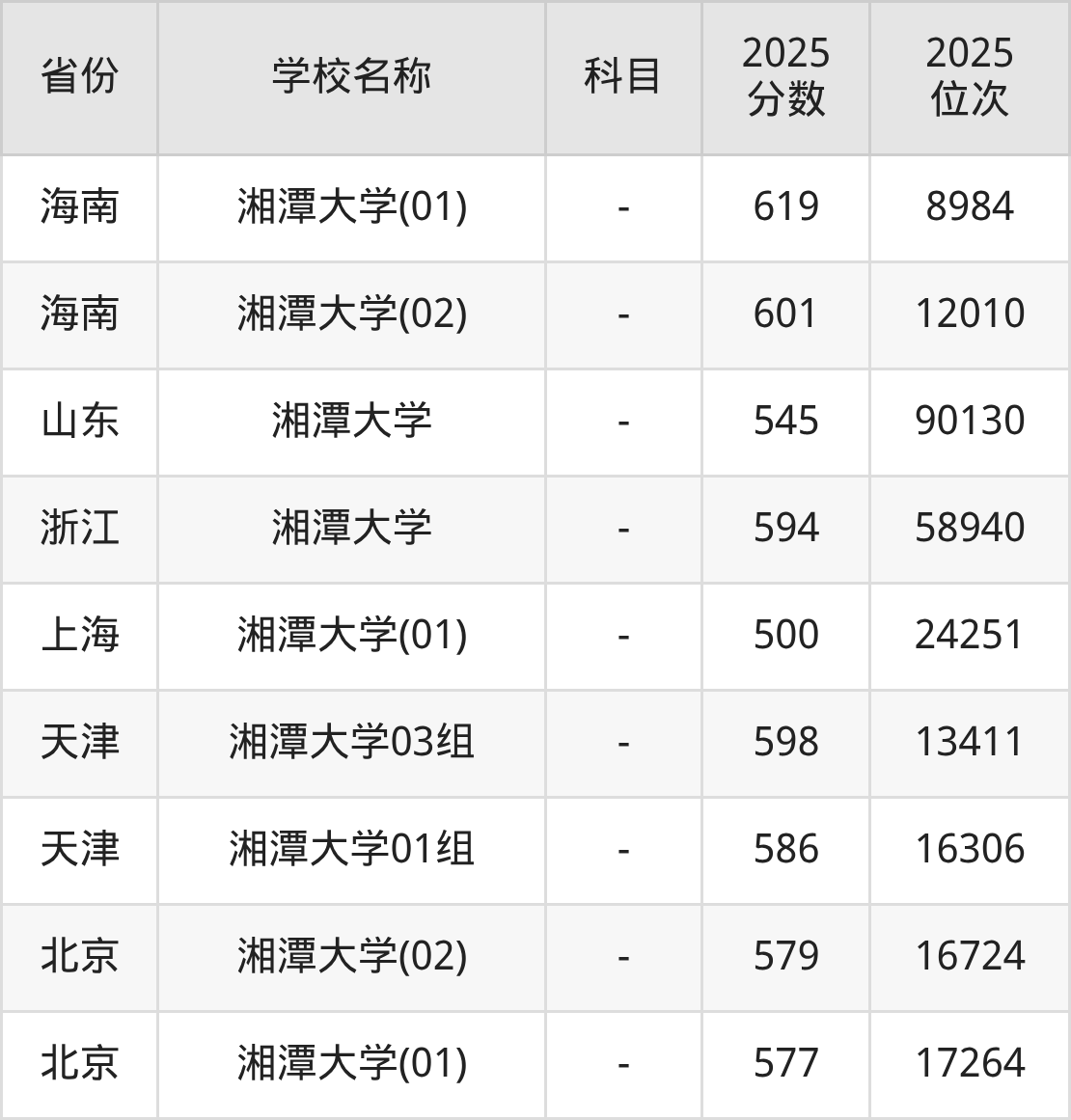 2025年湘潭大学在全国各省本科的最低录取分数线在461~619分之间。海南高考生最低619分能上湘潭大学、河南物理类高考生最低611分能上湘潭大学……下文将展示湘潭大学在全国27个高考省份中的本科最低投档录取分汇总!