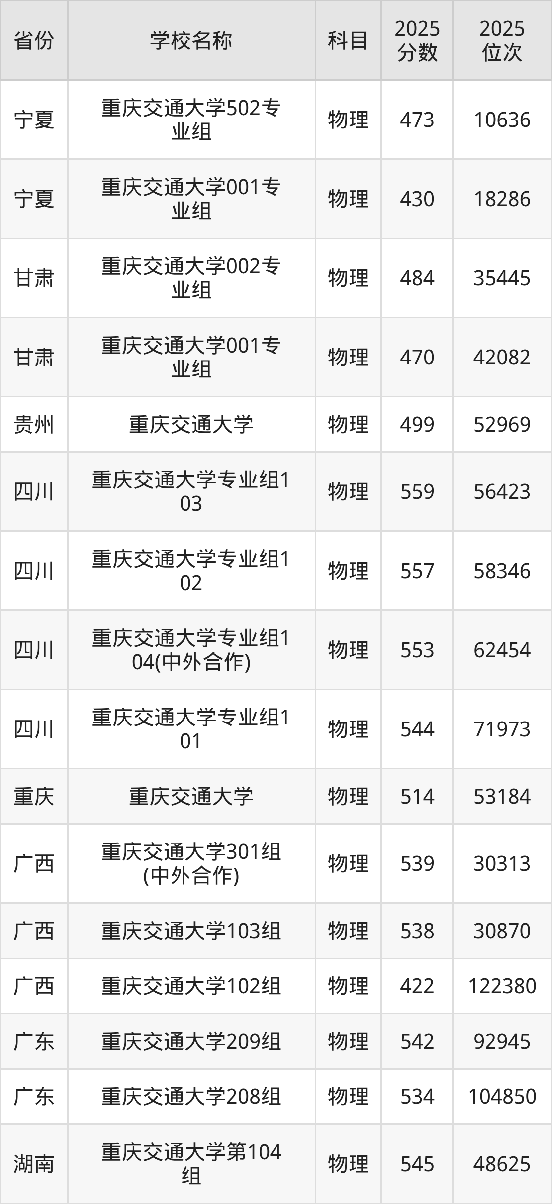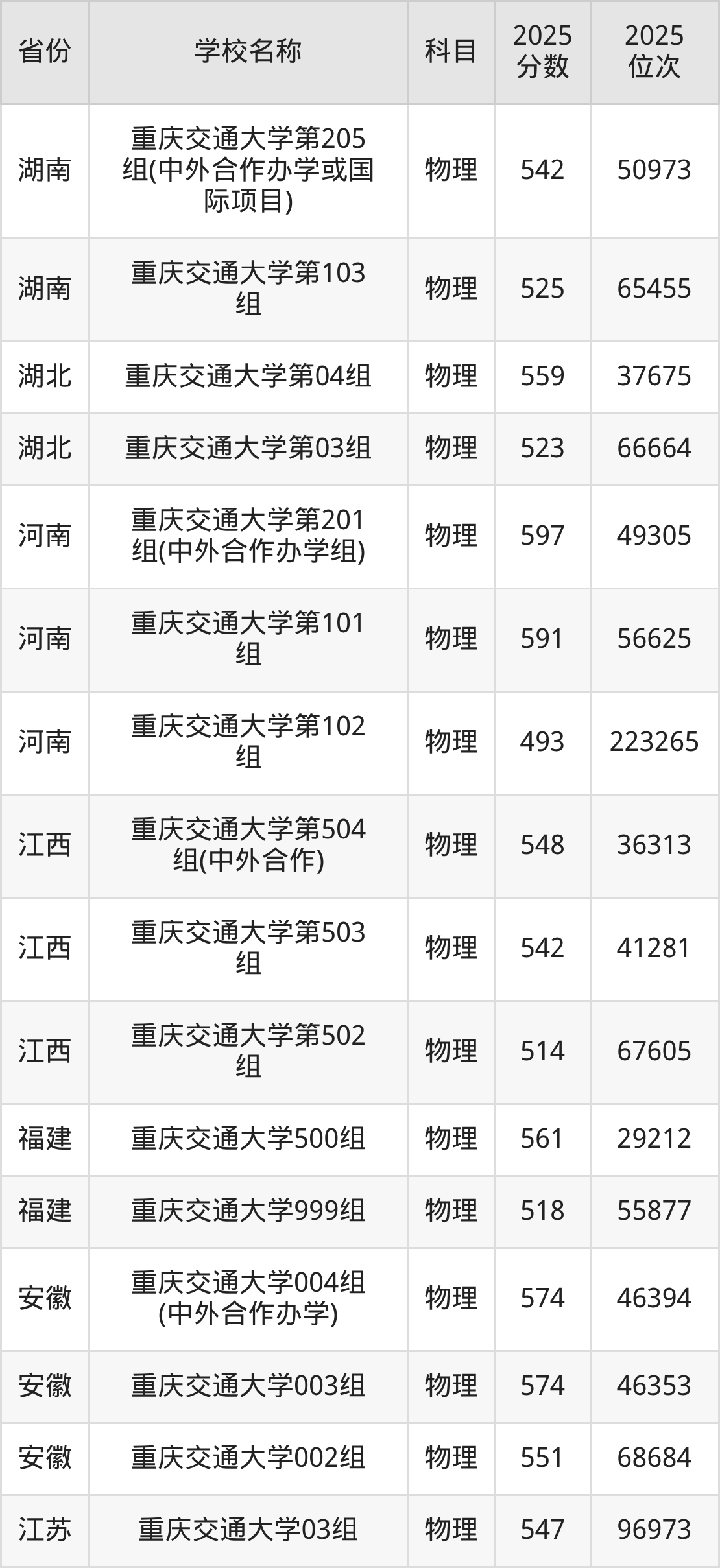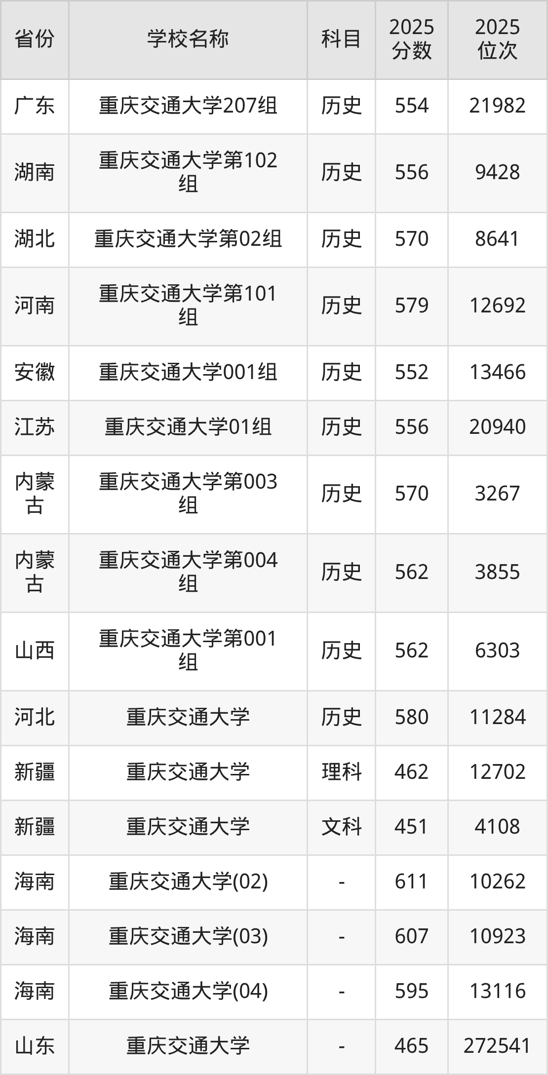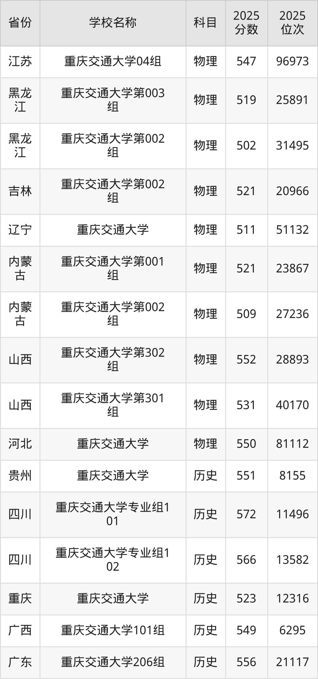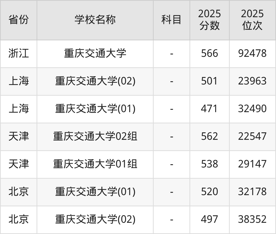 二、重庆交通大学各专业录取分数线