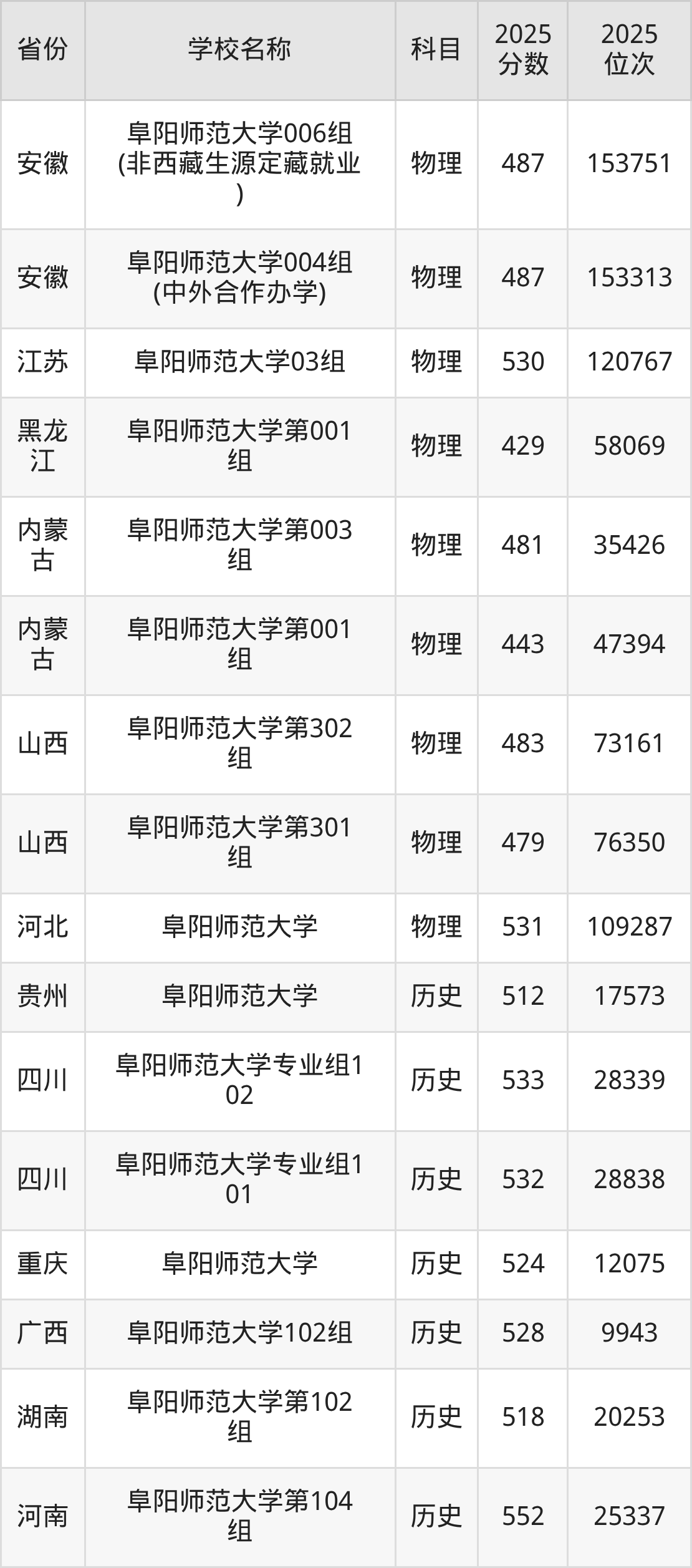 一、2025阜阳师范大学录取分数线