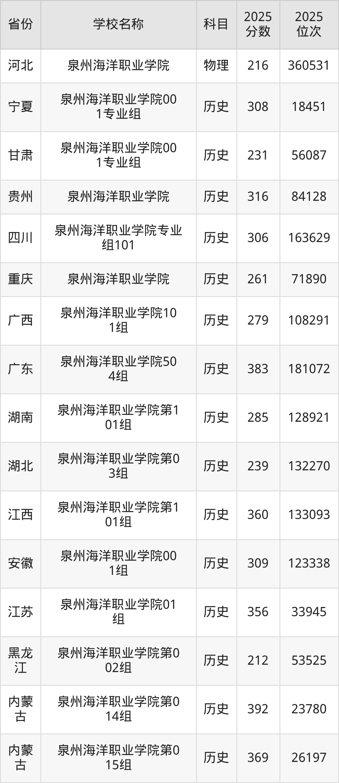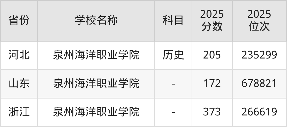 一、2025泉州海洋职业学院录取分数线