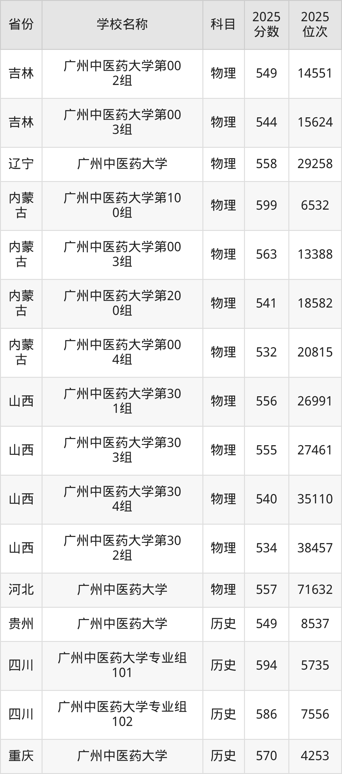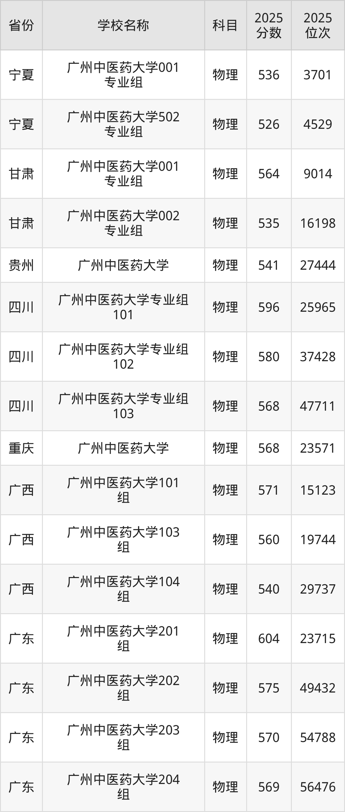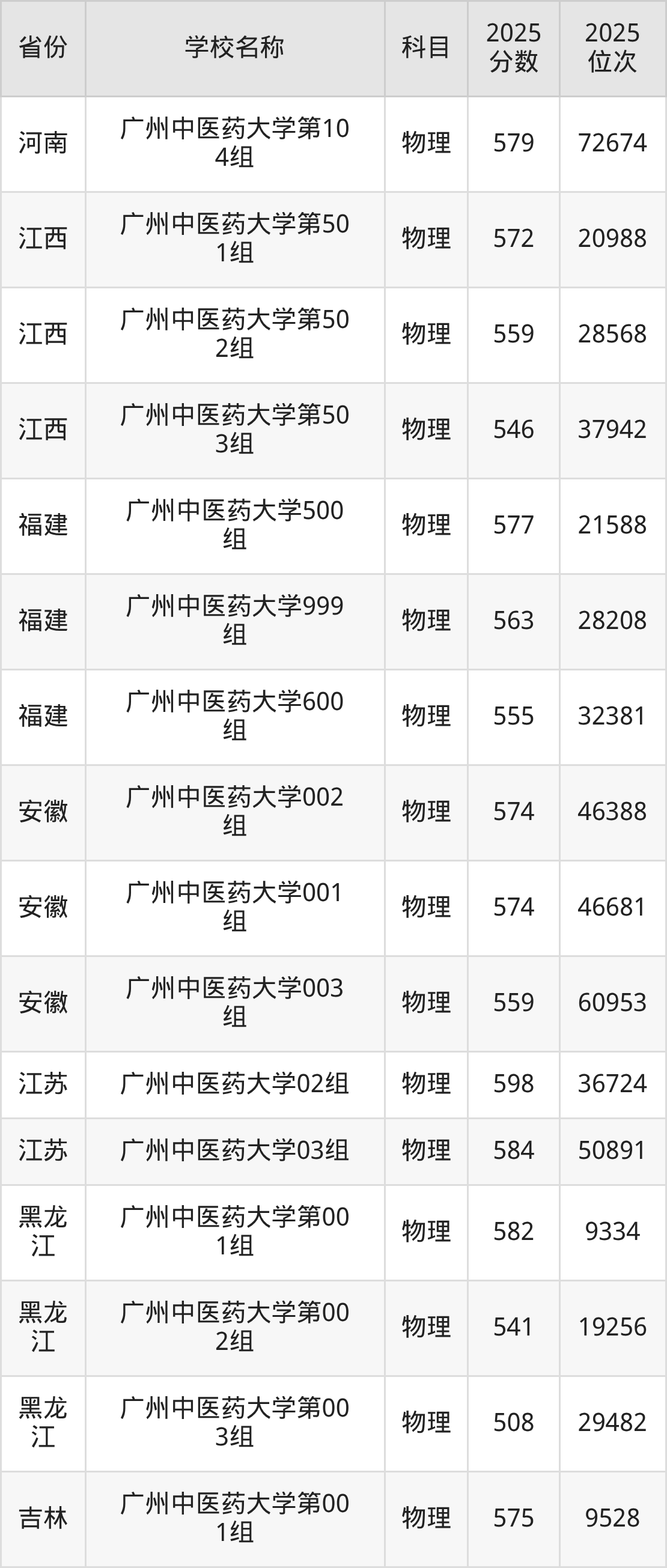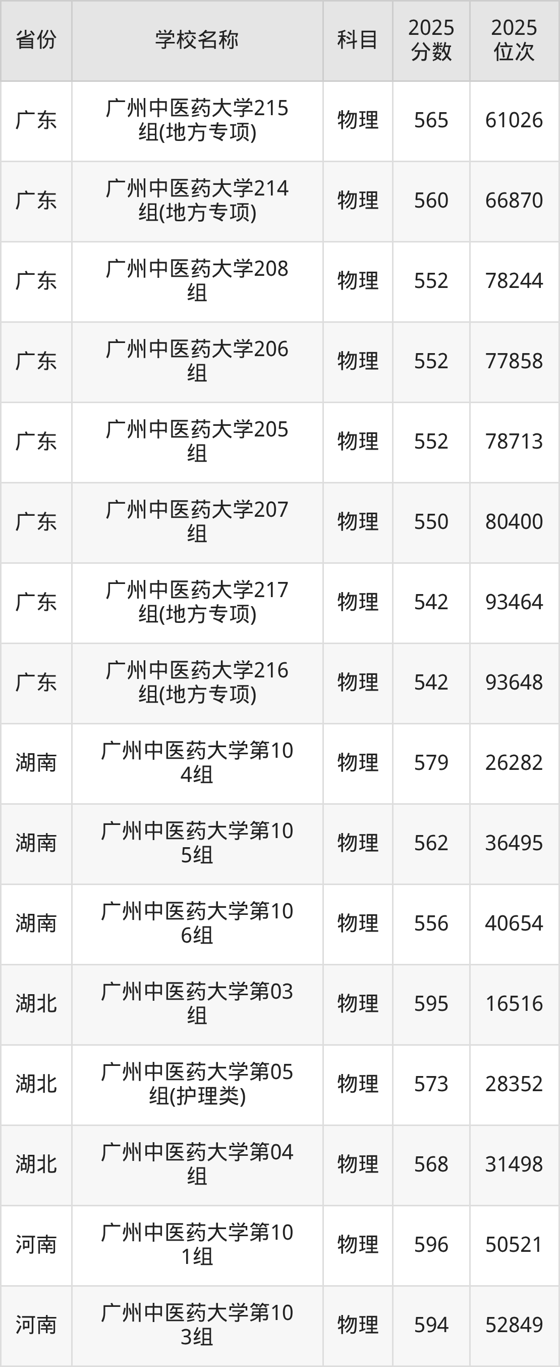 广州中医药大学2025年有70个专业组面向广东省内首选了物理科目的考生招生: