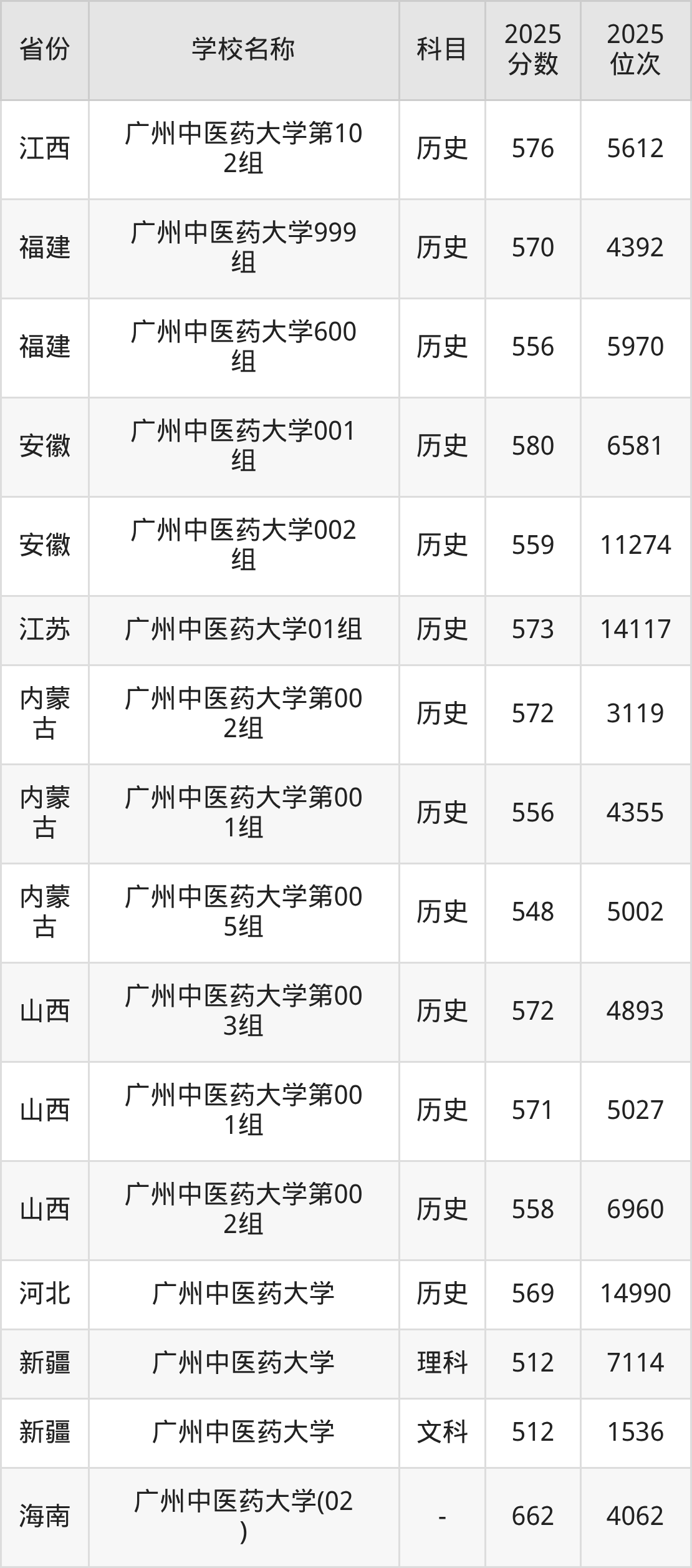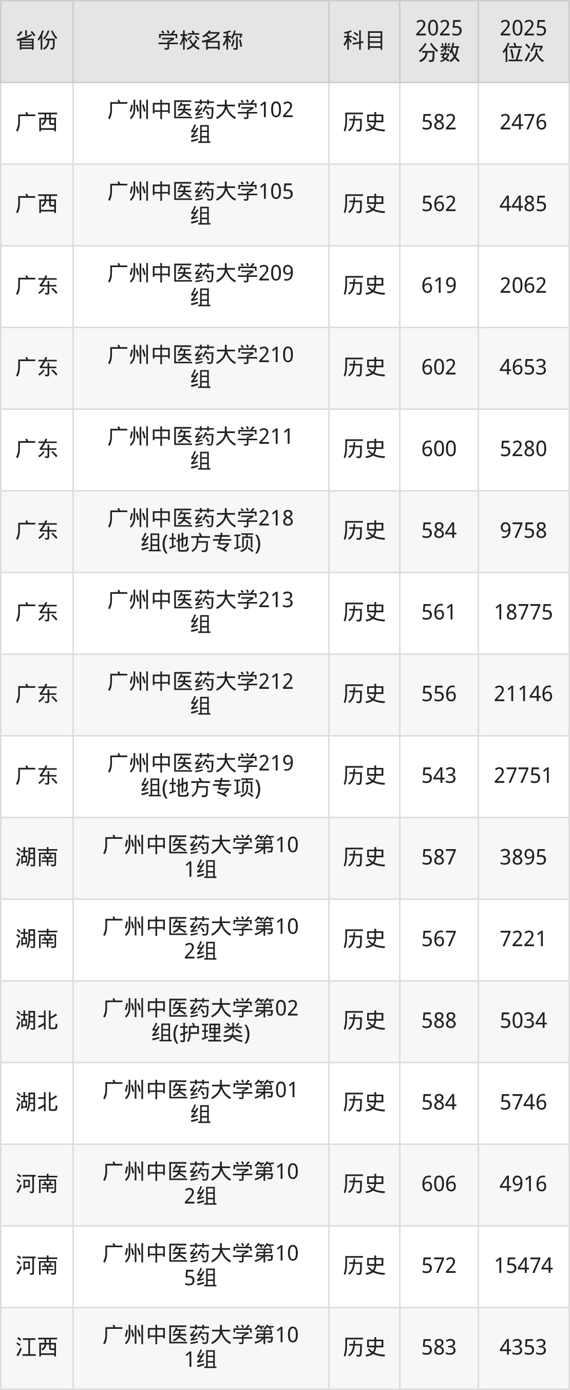 广州中医药大学2025年有15个专业组面向广东省内首选了历史科目的考生招生: