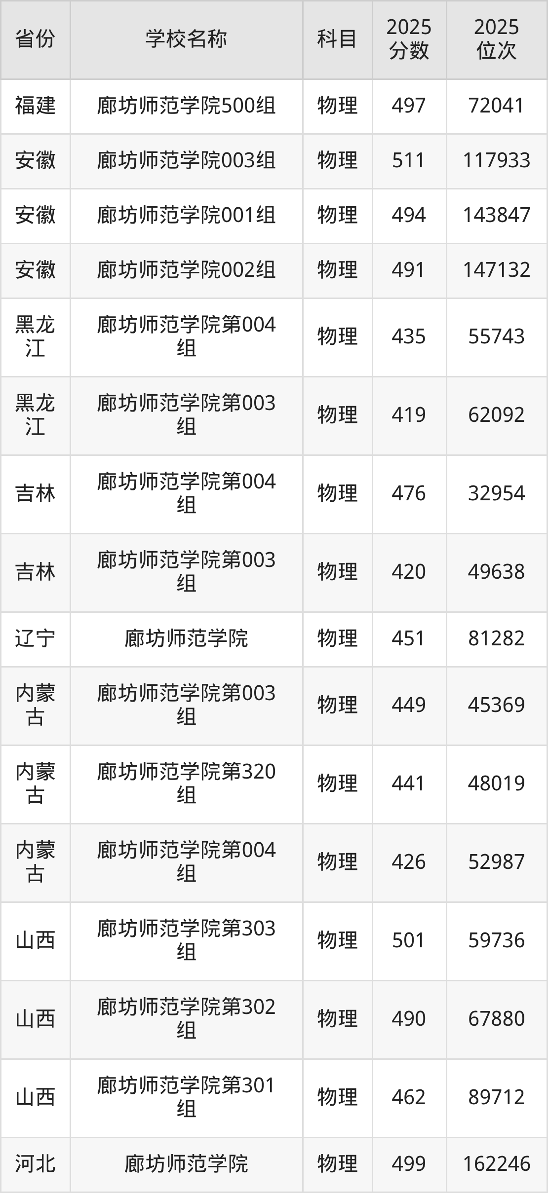 16、物理学专业:2025年最低515分、最低位次是135284