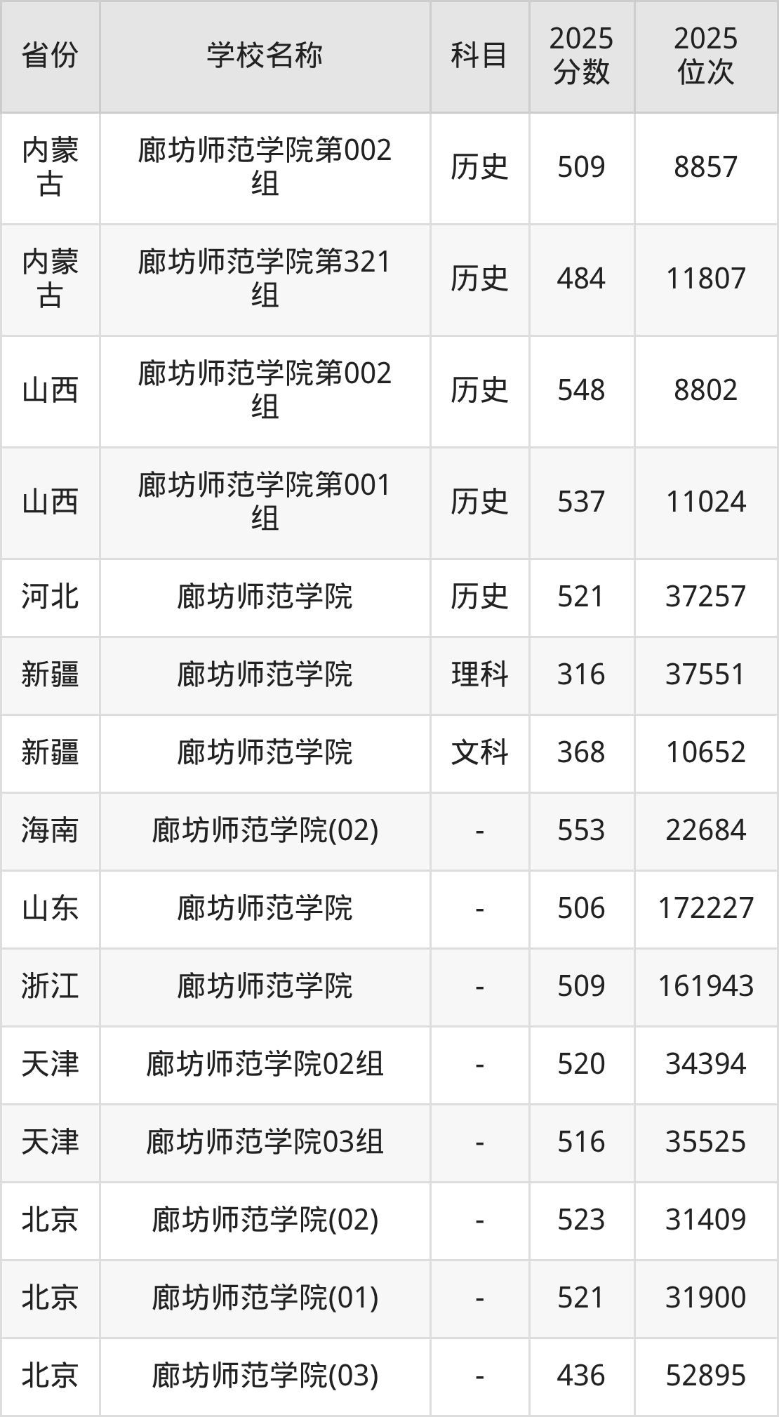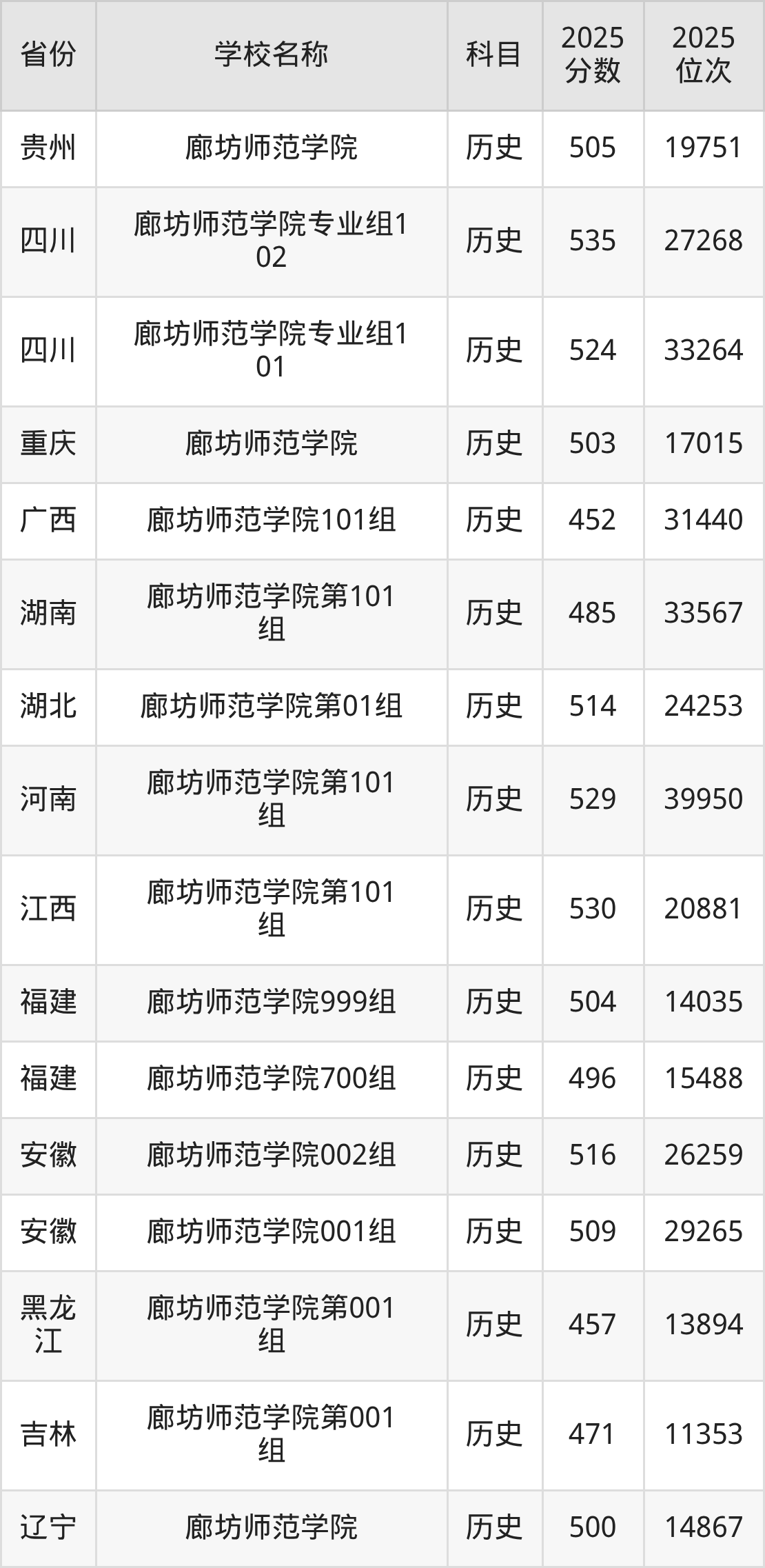 二、廊坊师范学院各专业录取分数线