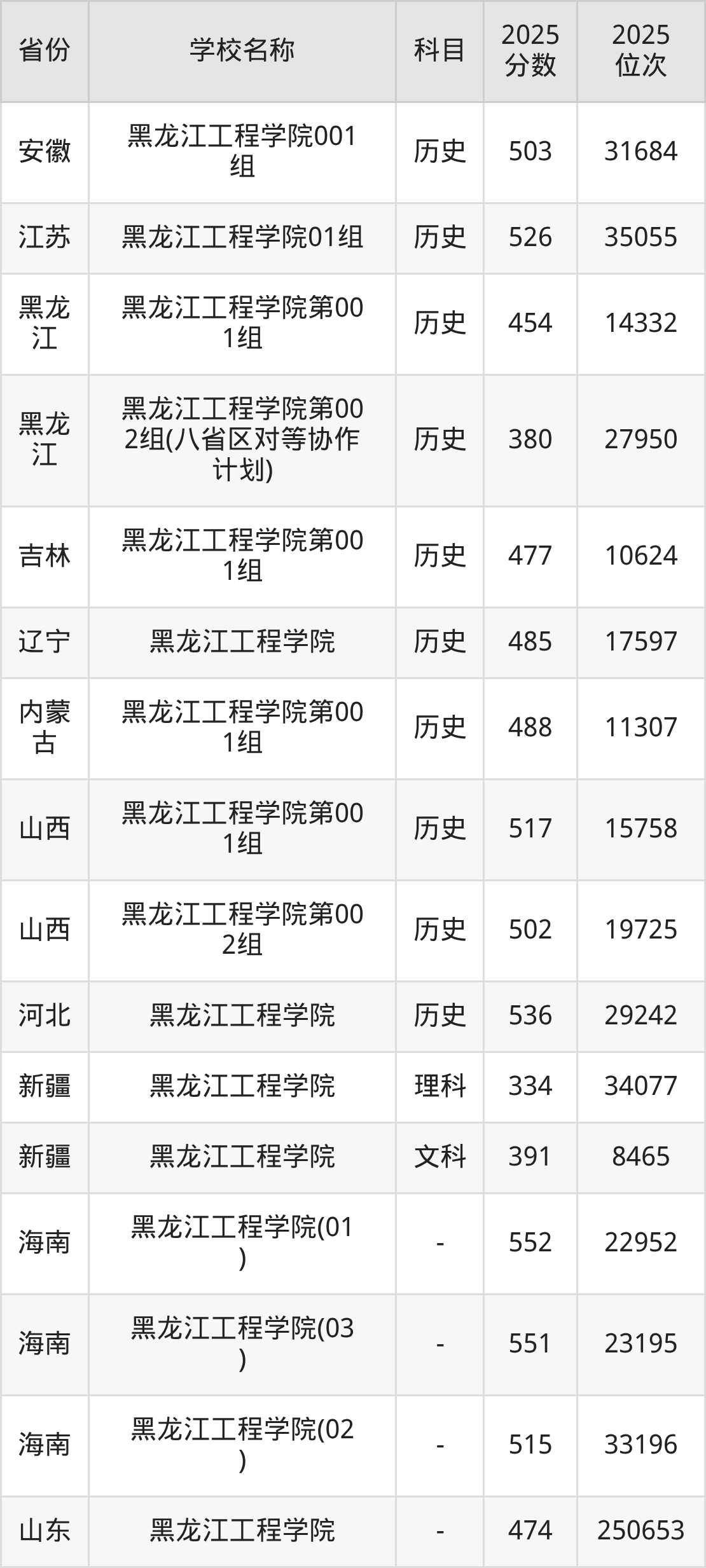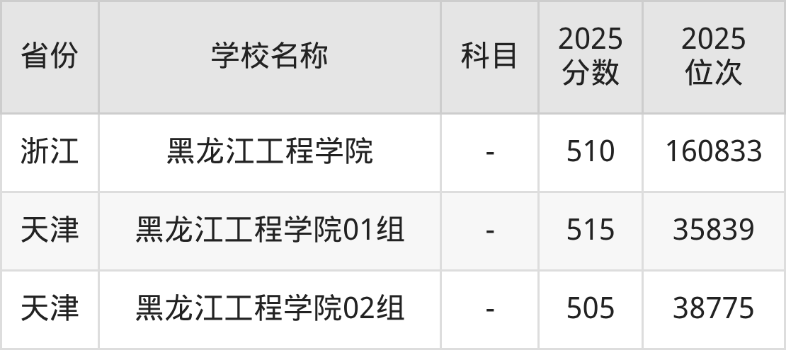 一、2025黑龙江工程学院录取分数线