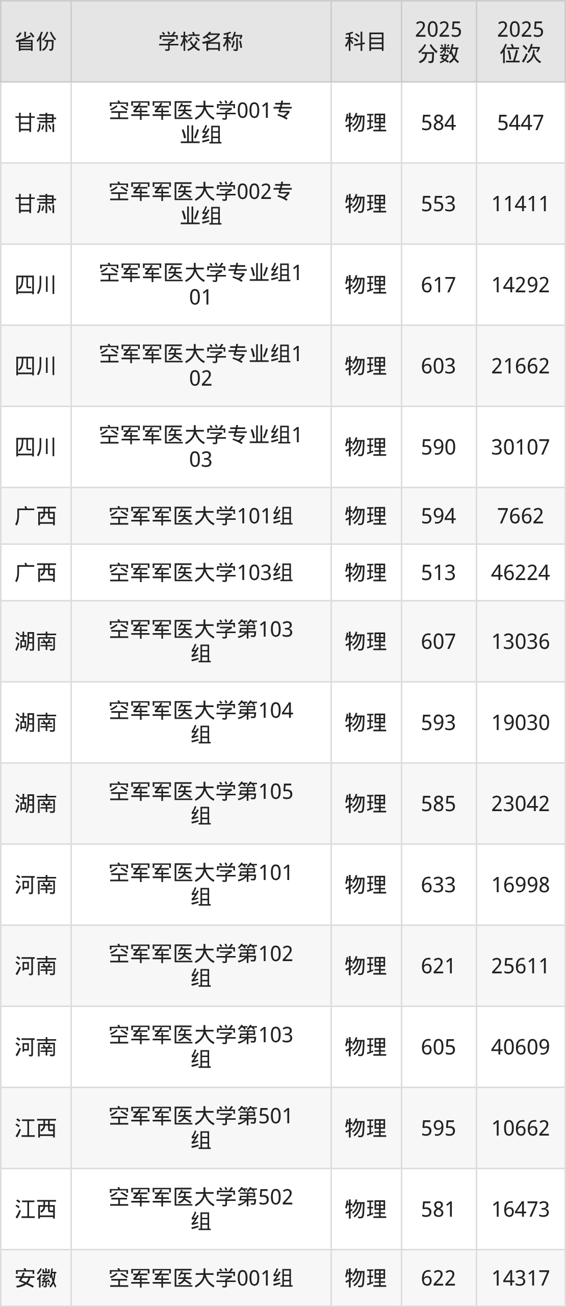 二、空军军医大学各专业录取分数线