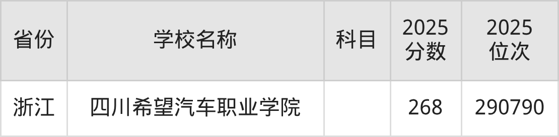 一、2025四川希望汽车职业学院录取分数线
