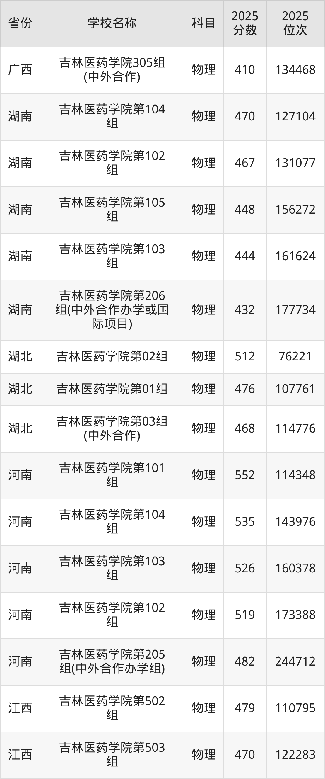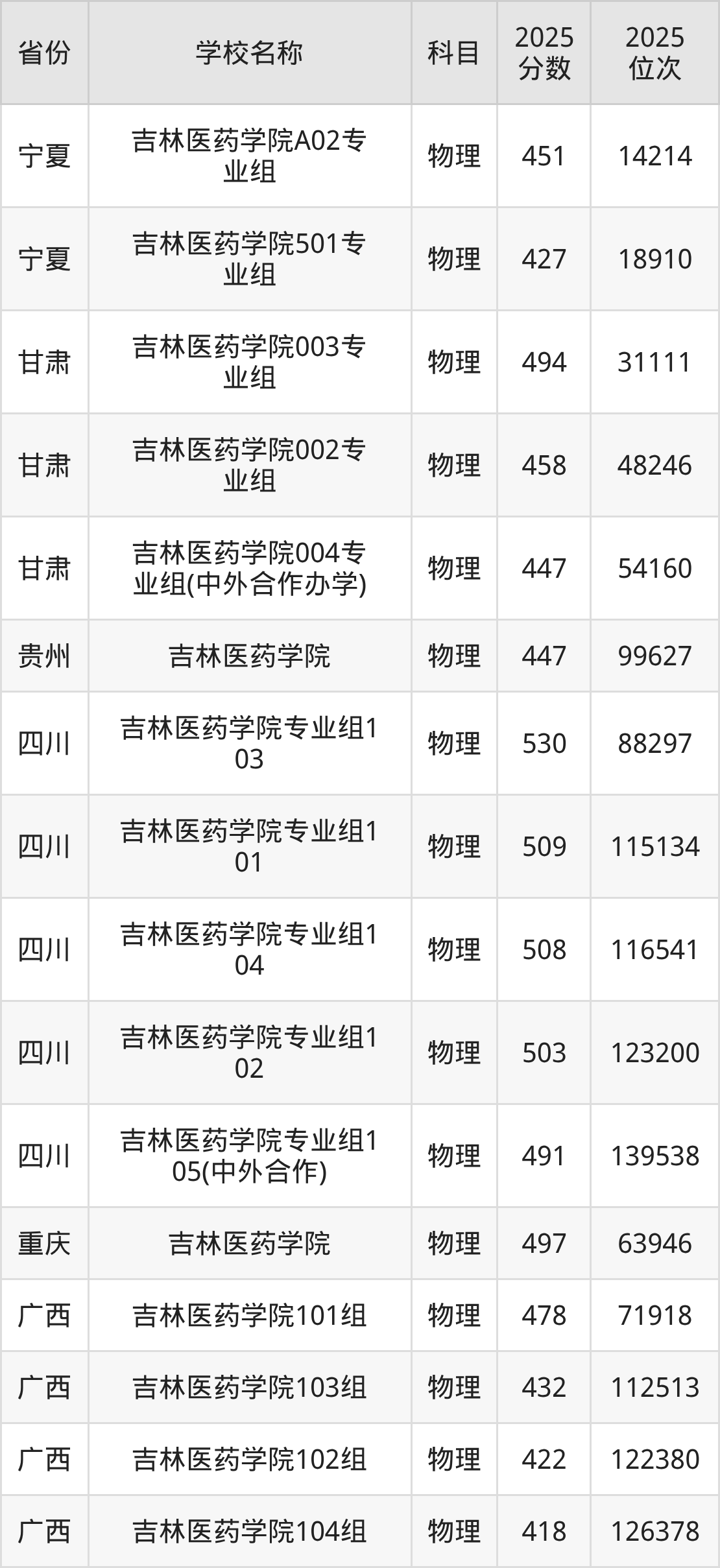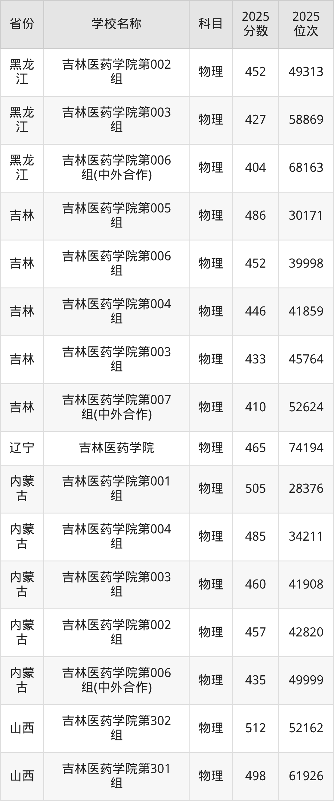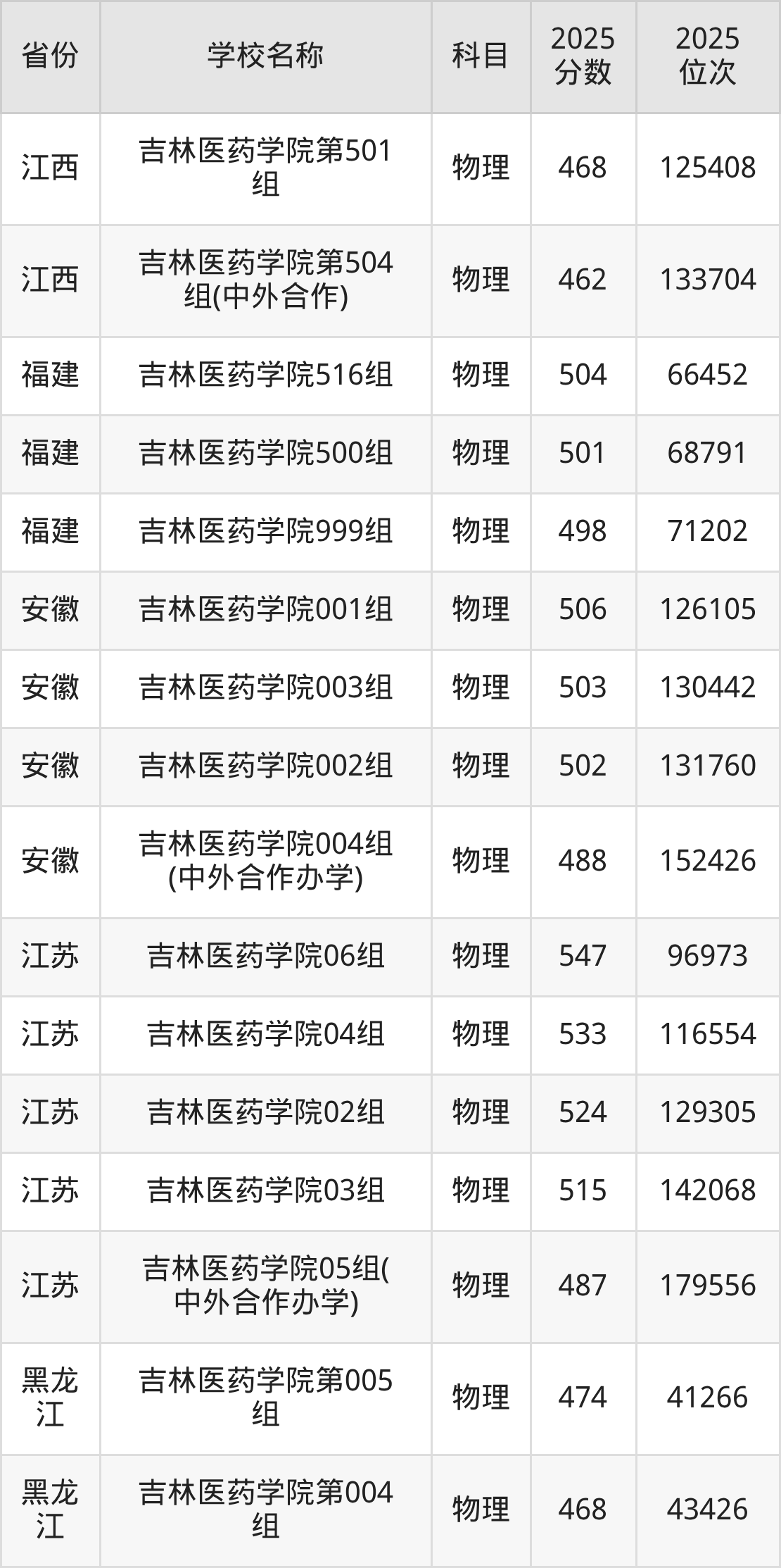 吉林医药学院2025年有6个专业组面向吉林省内首选了物理科目的考生招生: