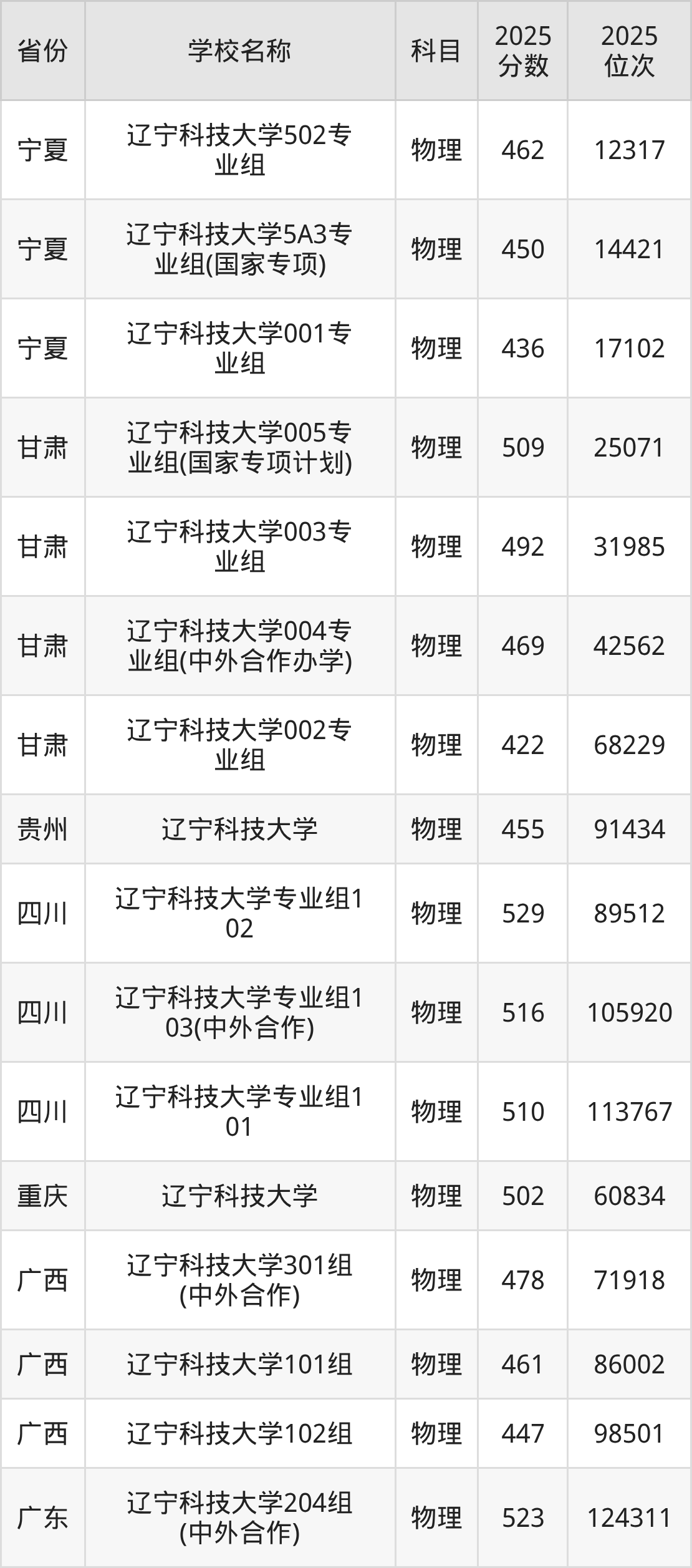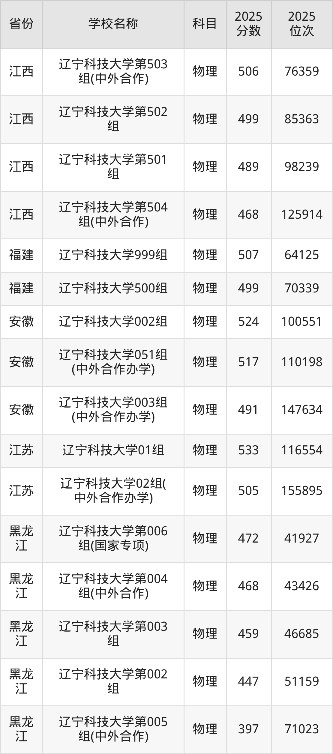 辽宁科技大学2025年面向辽宁省内首选了物理科目的考生招生: