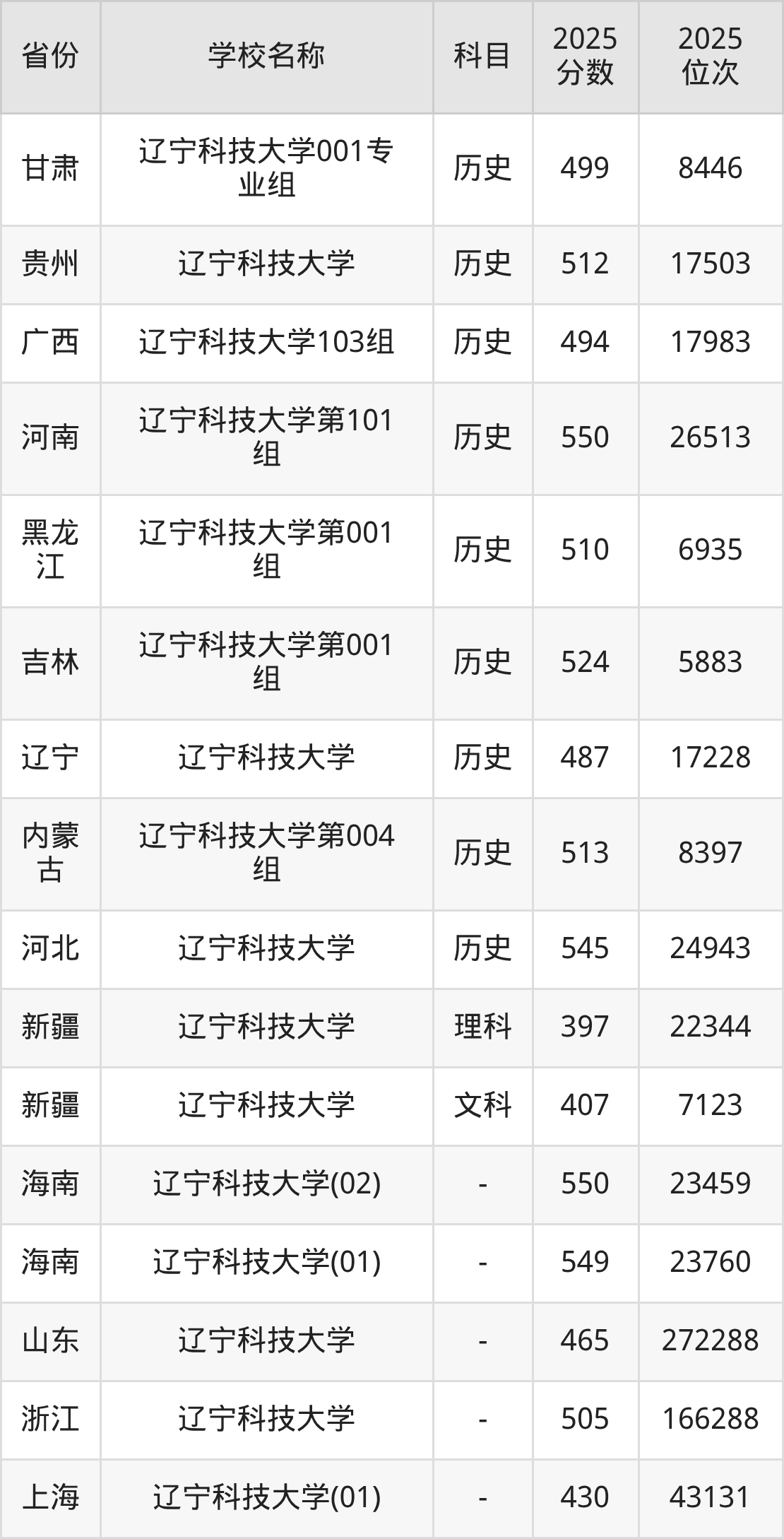辽宁科技大学2025年面向辽宁省内首选了历史科目的考生招生: