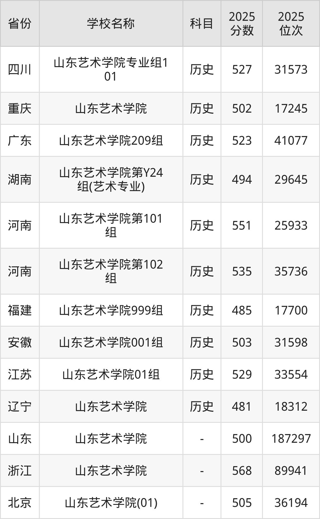 5、艺术史论专业:2025年最低501分、最低位次是184591