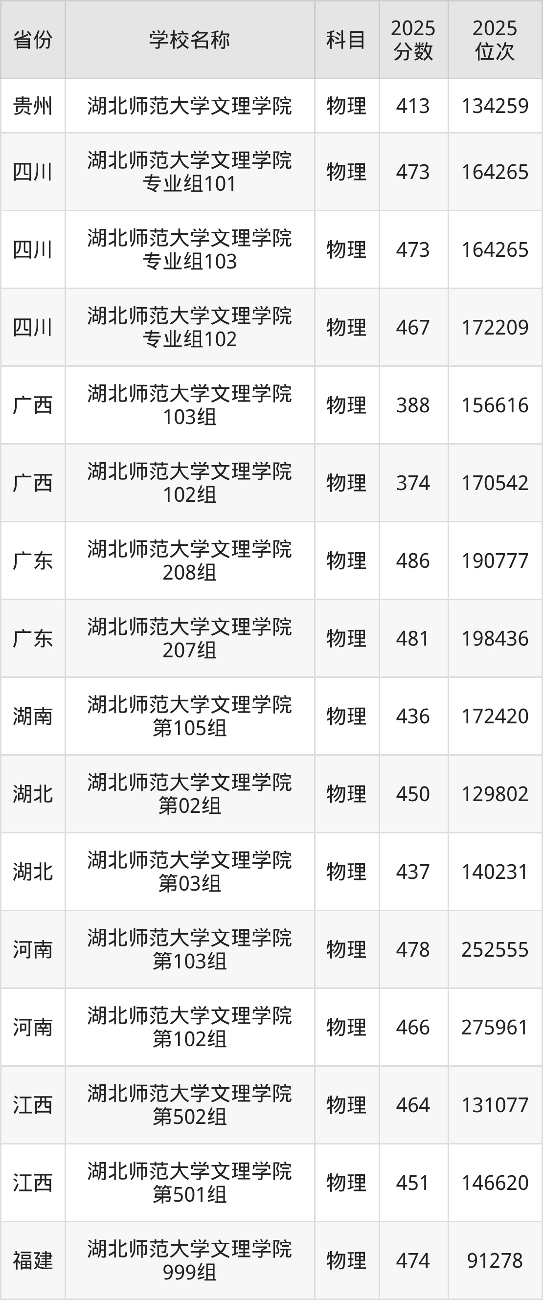 湖北师范大学文理学院2025年有3个专业组面向湖北省内首选了物理科目的考生招生: