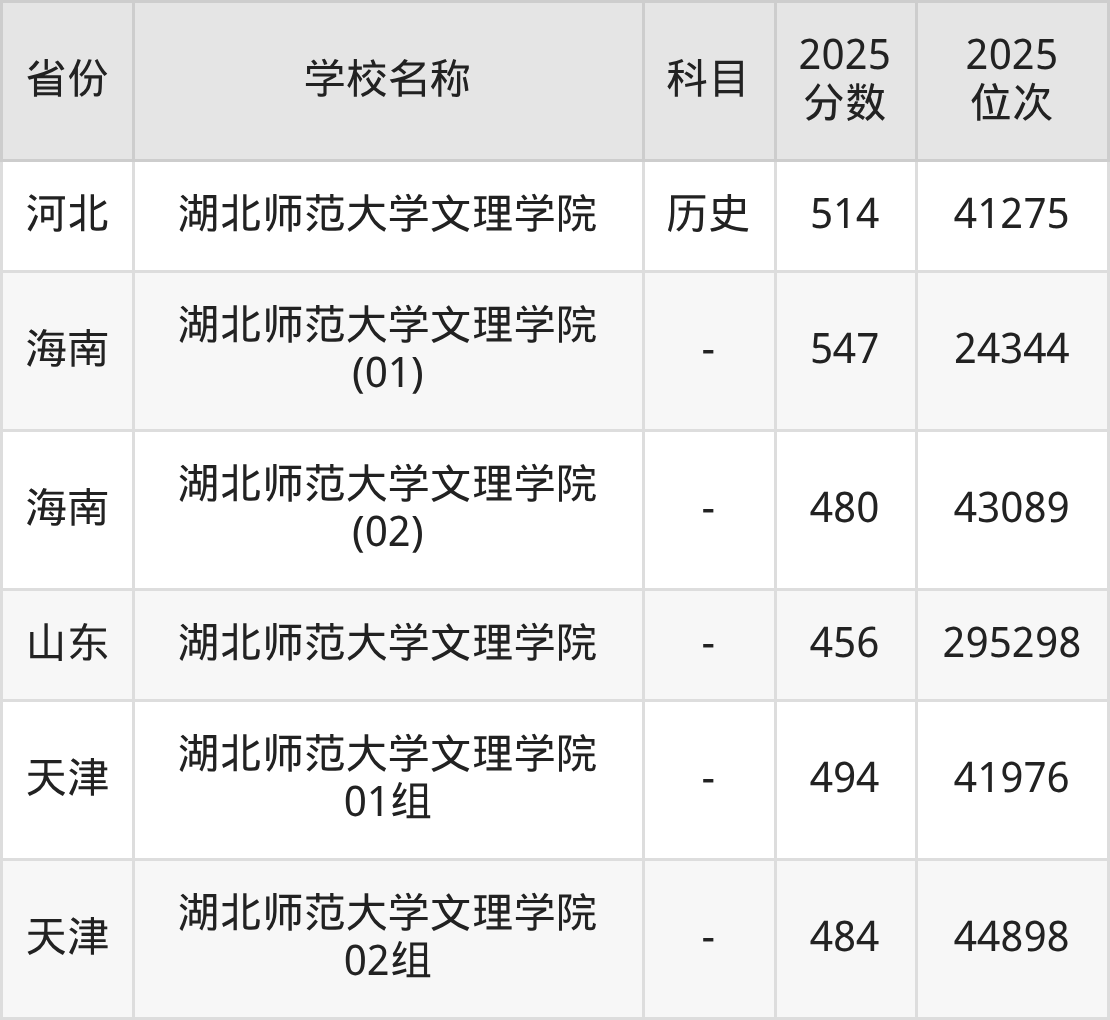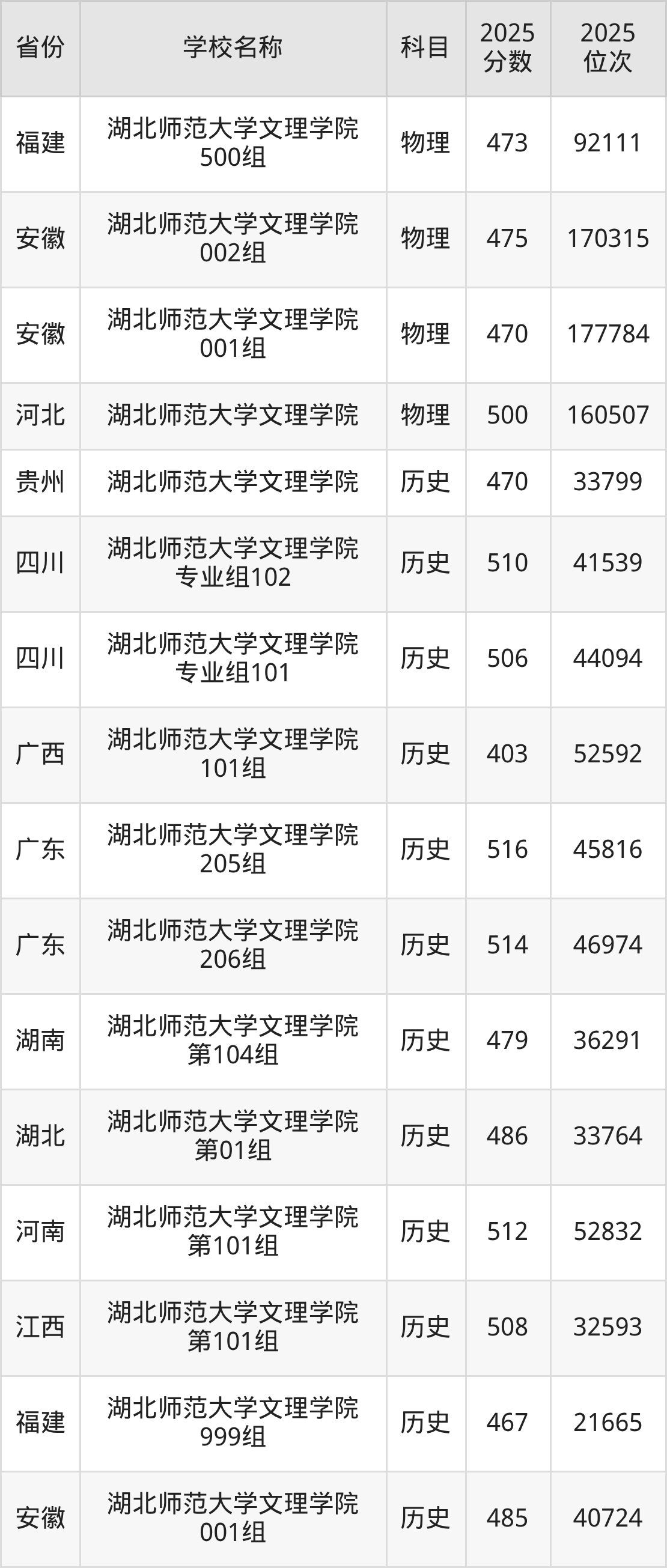 湖北师范大学文理学院2025年有2个专业组面向湖北省内首选了历史科目的考生招生:
