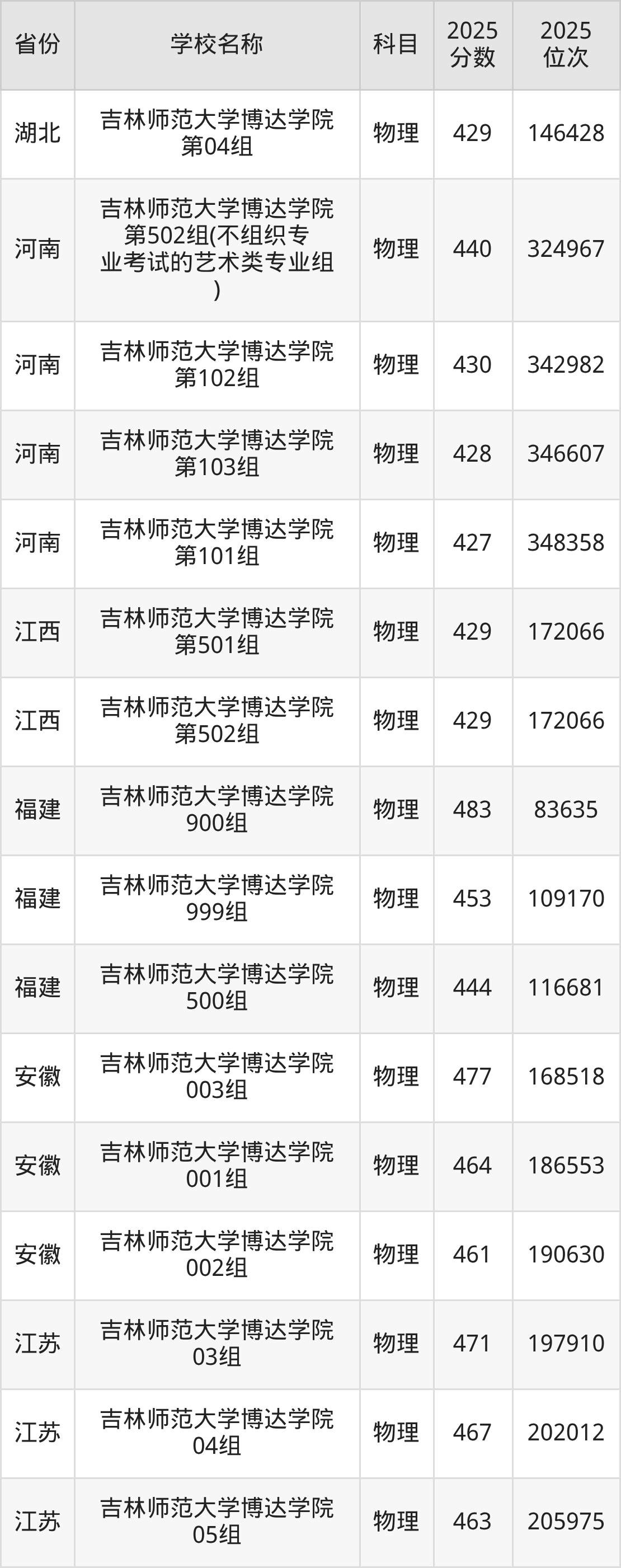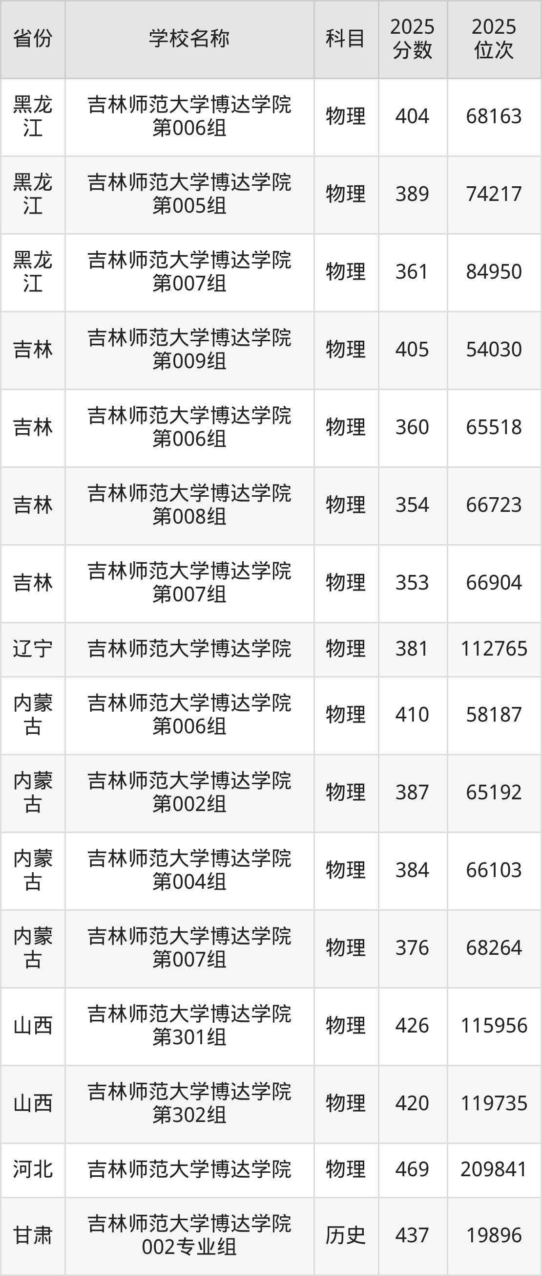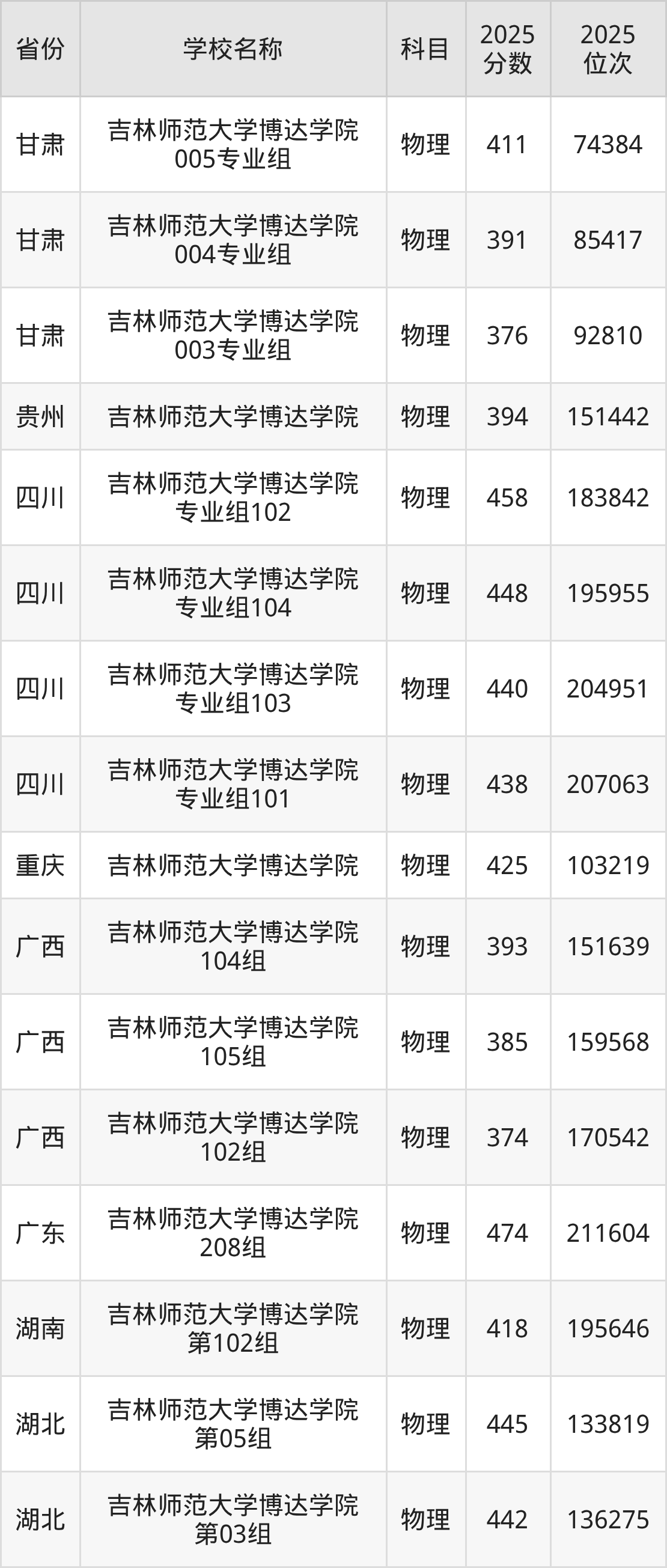 吉林师范大学博达学院2025年有4个专业组面向吉林省内首选了物理科目的考生招生:
