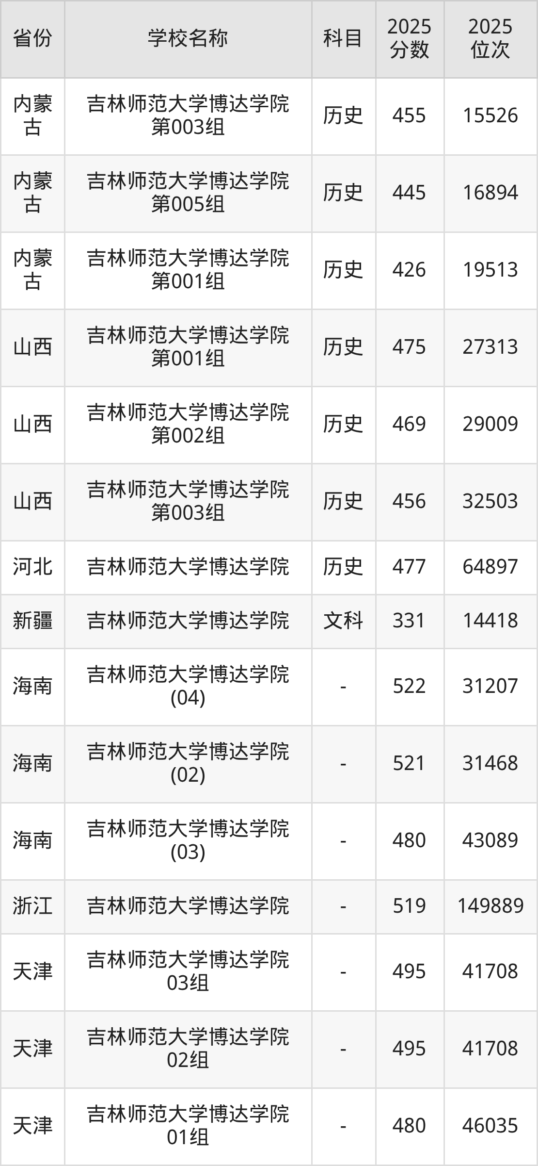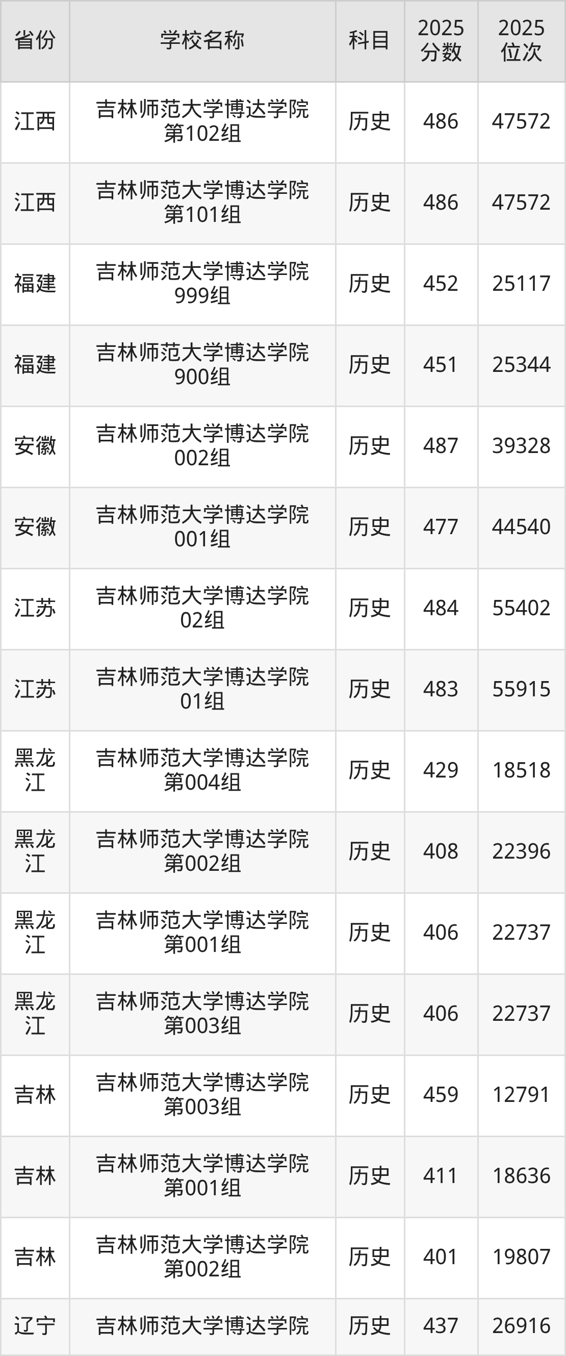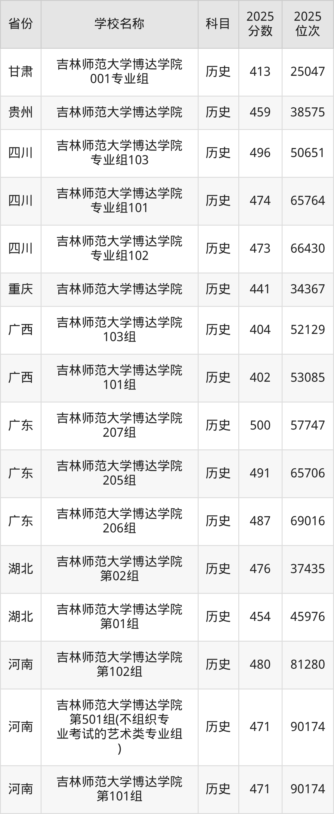 吉林师范大学博达学院2025年有3个专业组面向吉林省内首选了历史科目的考生招生: