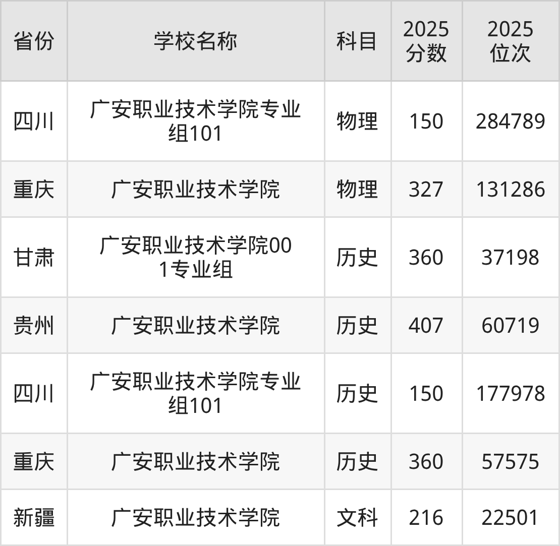 一、2025广安职业技术学院录取分数线