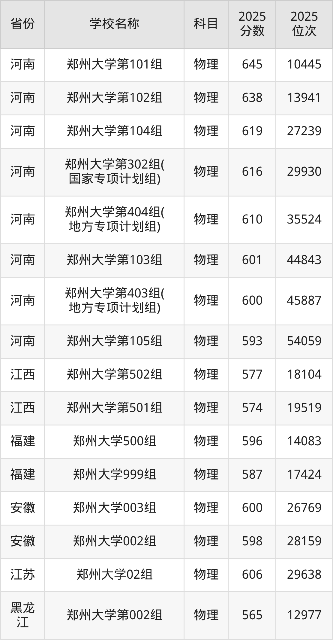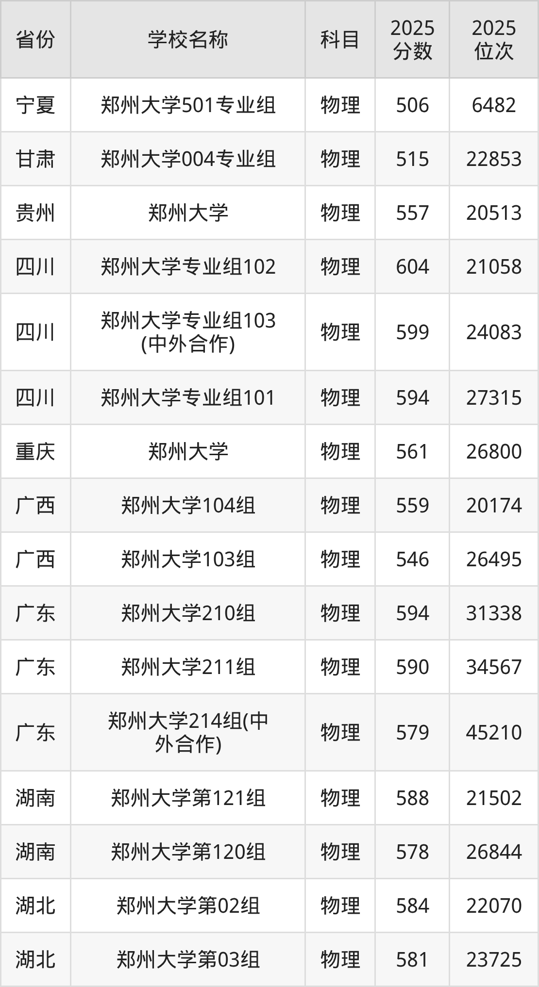 二、郑州大学各专业录取分数线