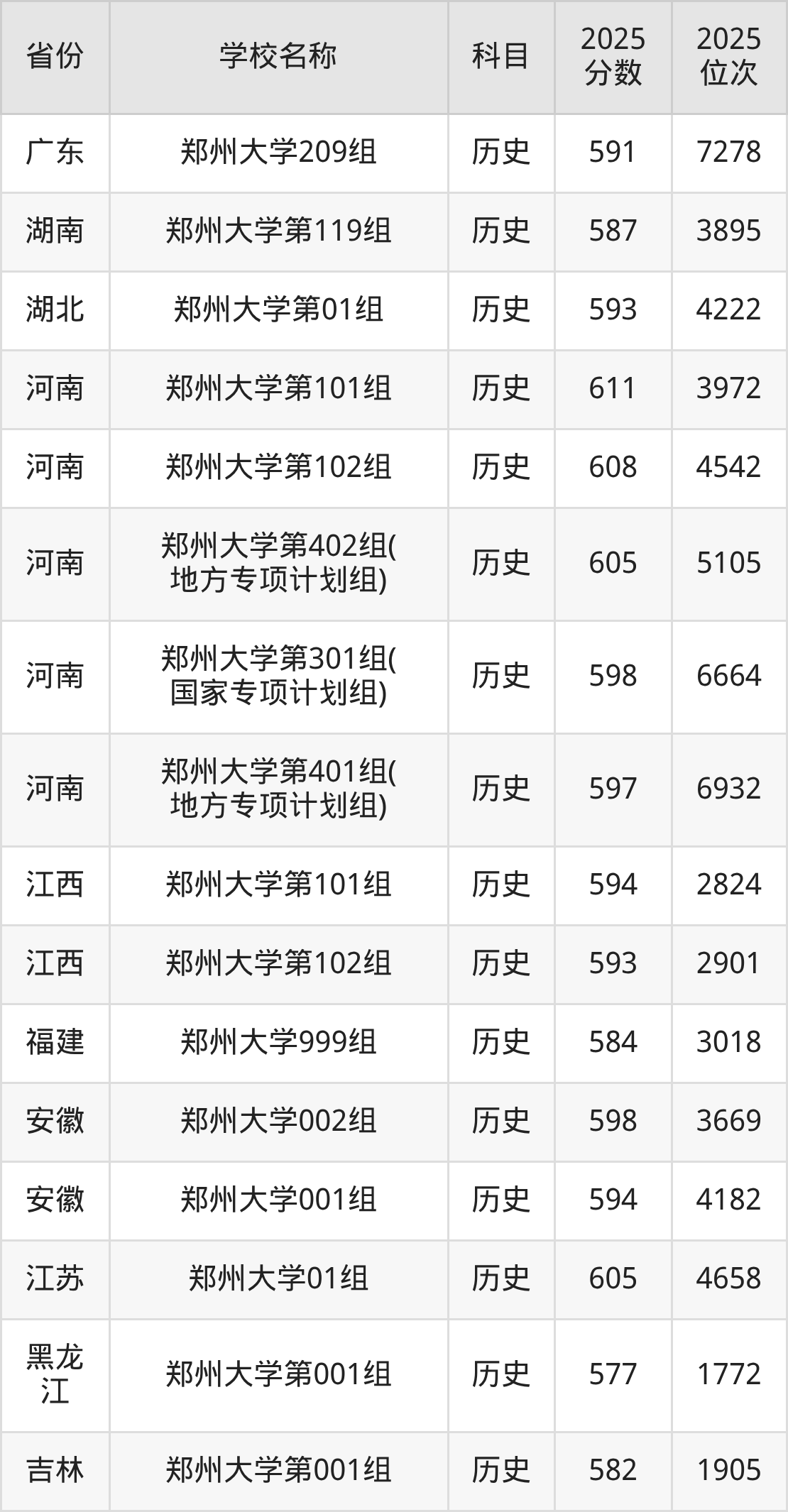 郑州大学2025年有5个专业组面向河南省内首选了历史科目的考生招生: