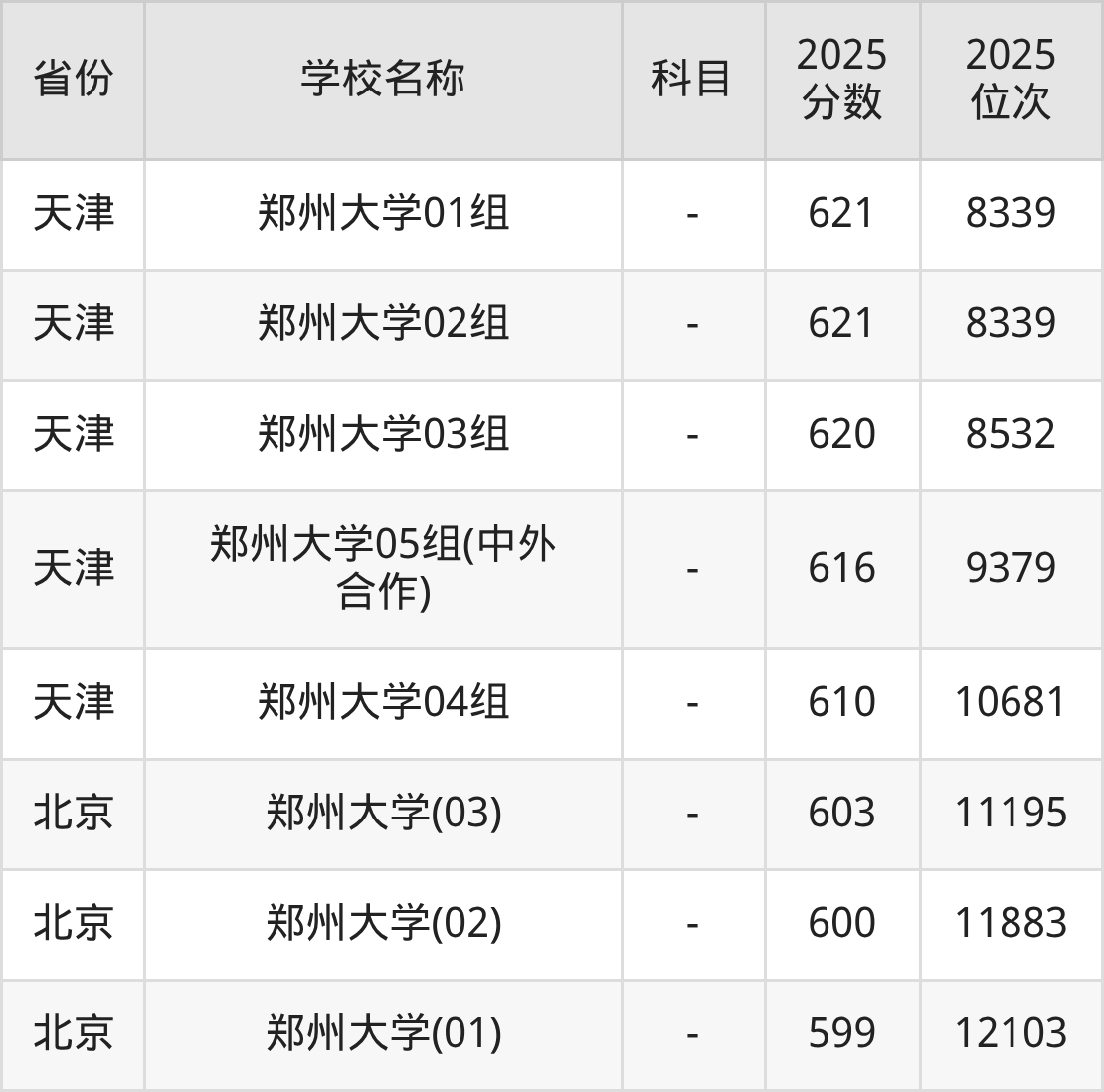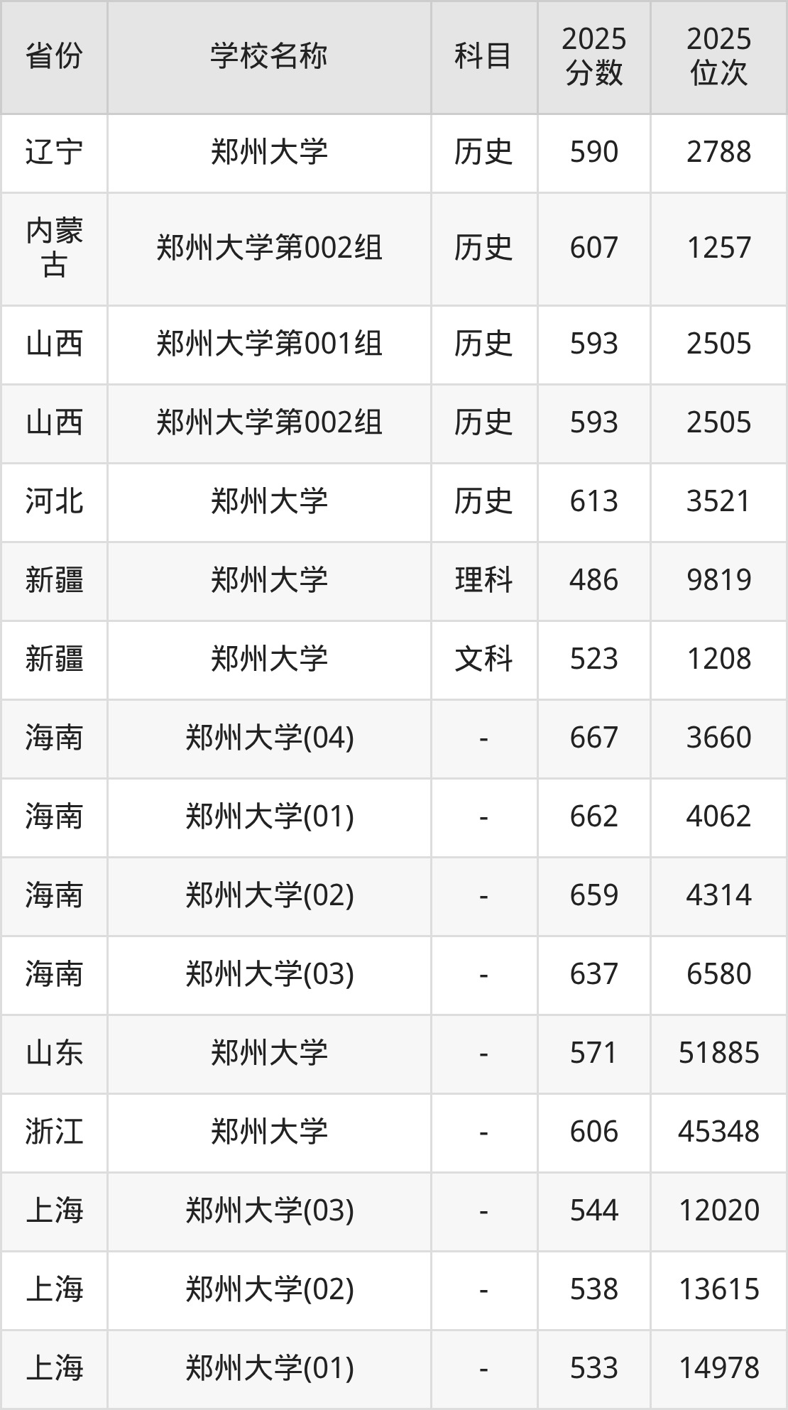 一、2025郑州大学录取分数线