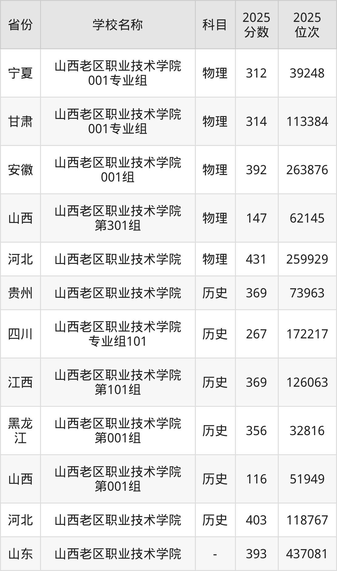 一、2025山西老区职业技术学院录取分数线