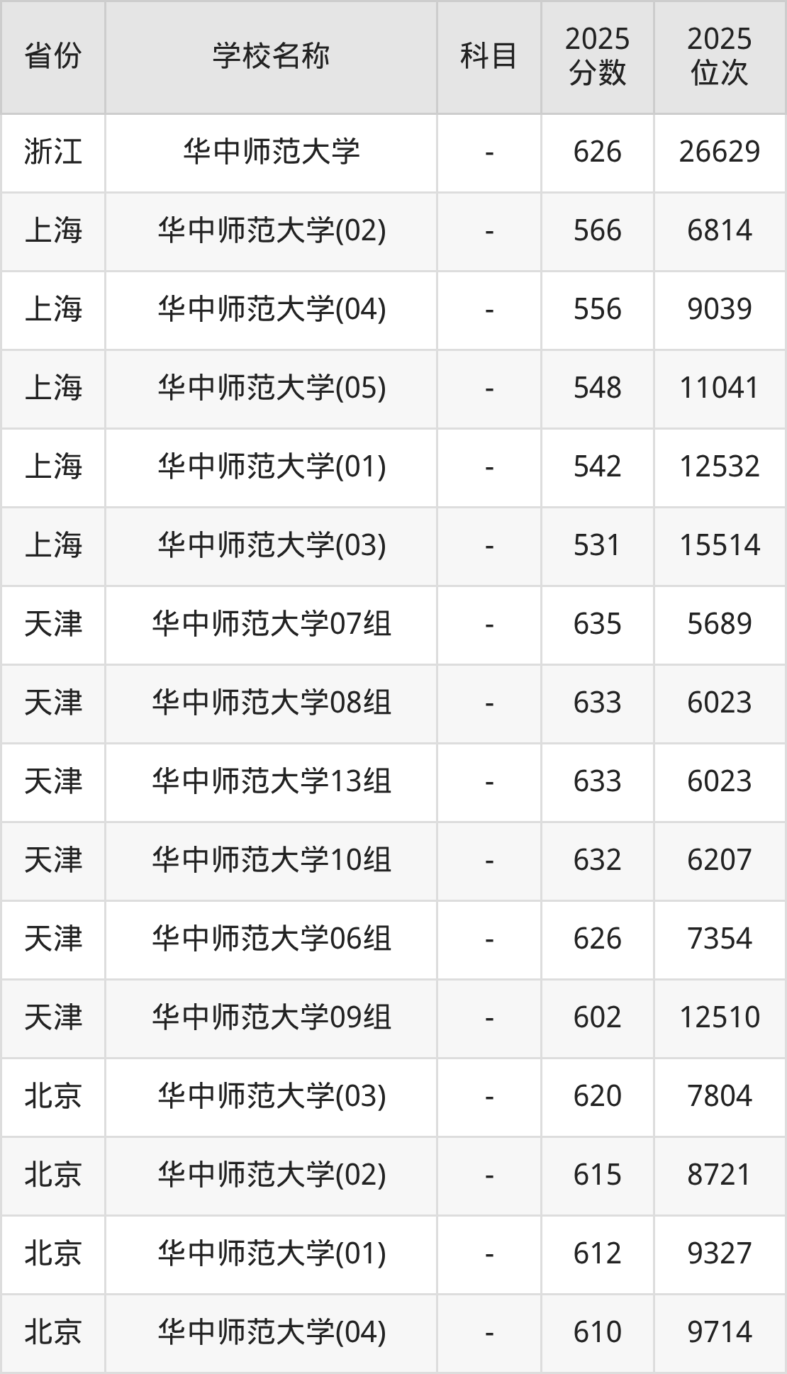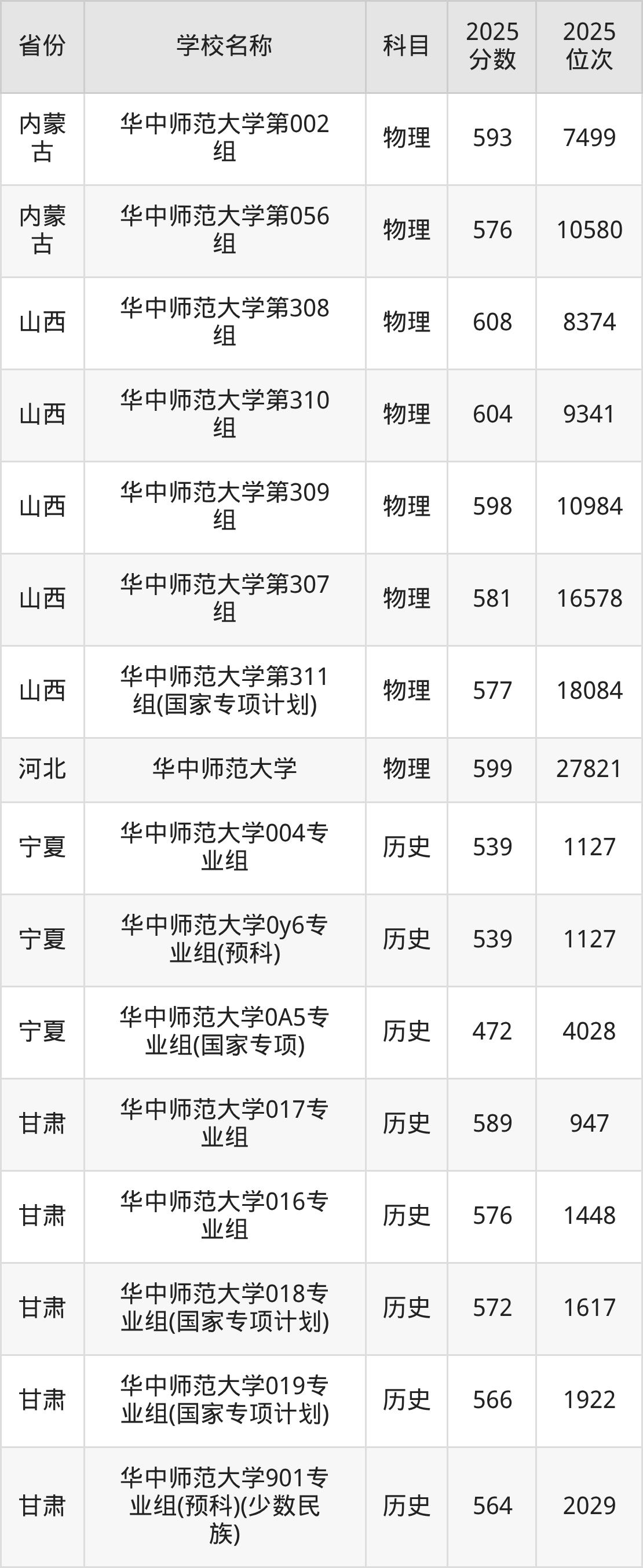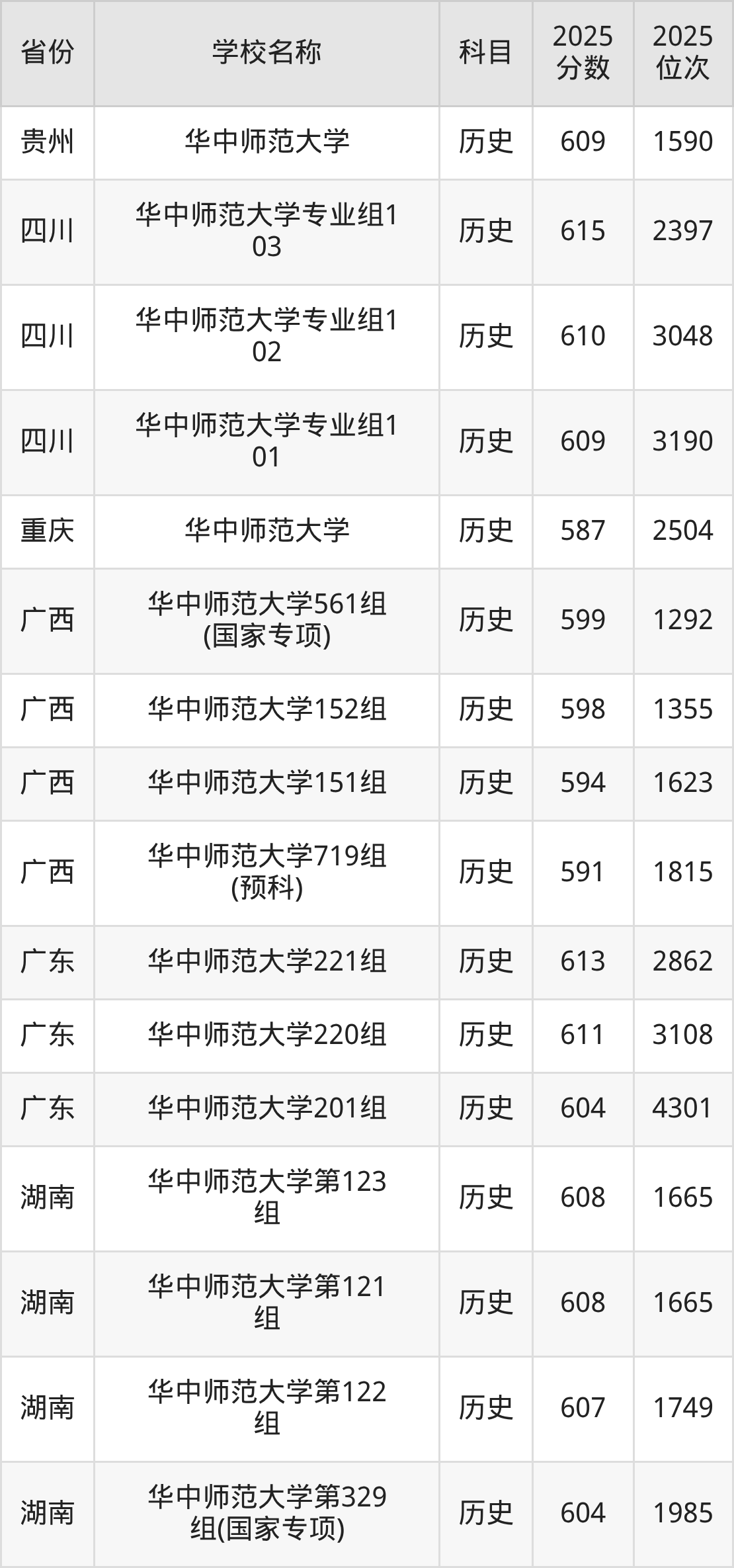华中师范大学2025年有12个专业组面向湖北省内首选了历史科目的考生招生: