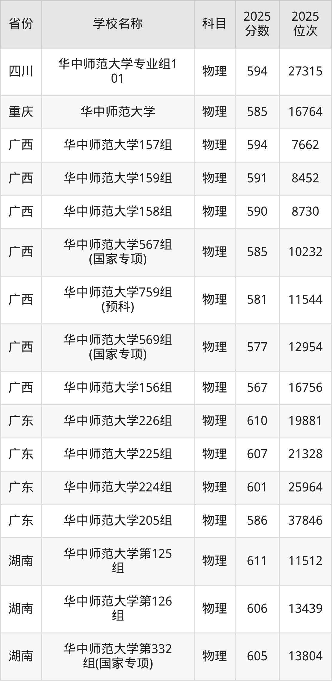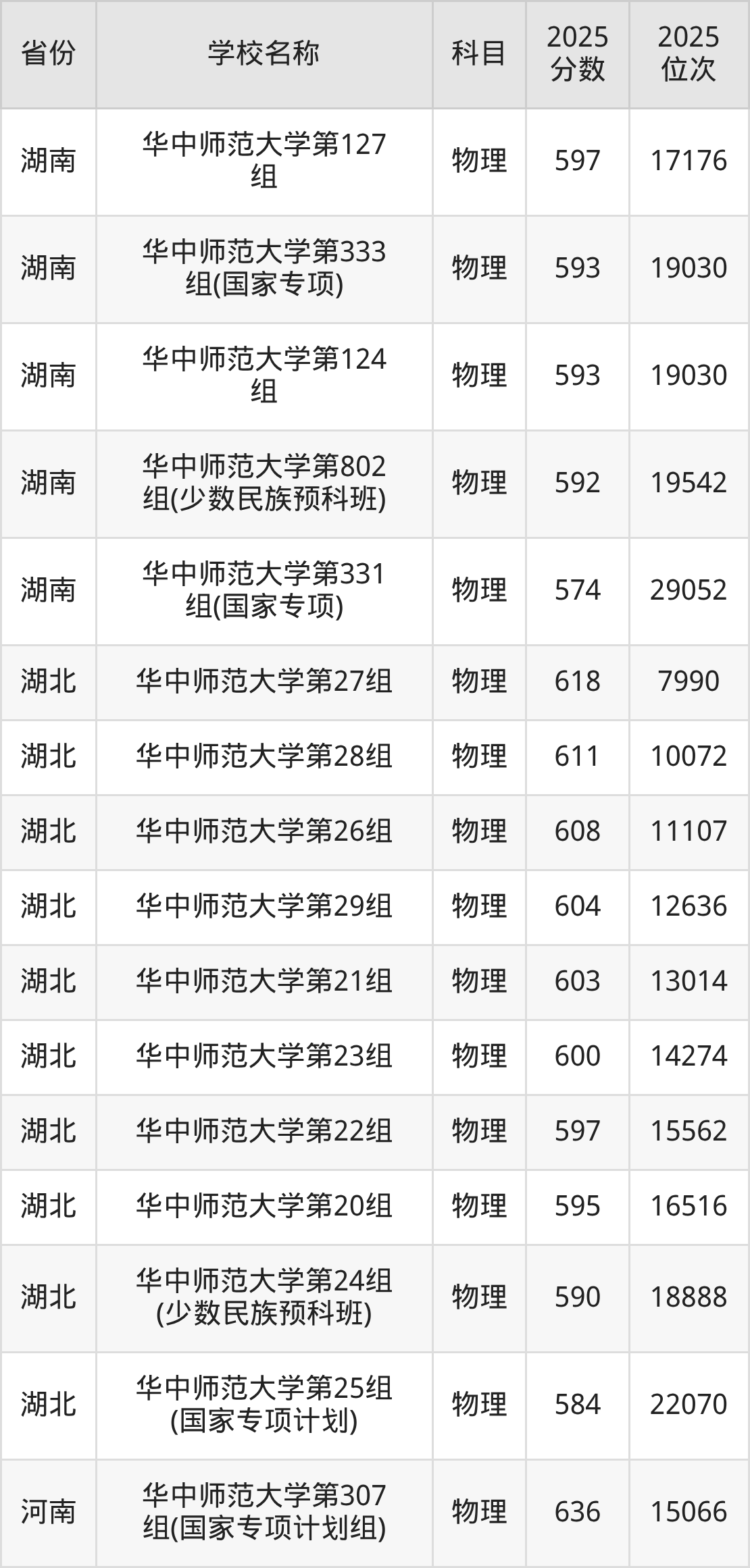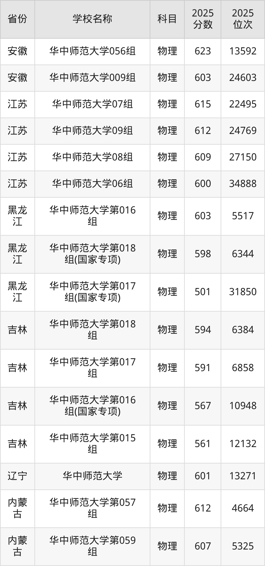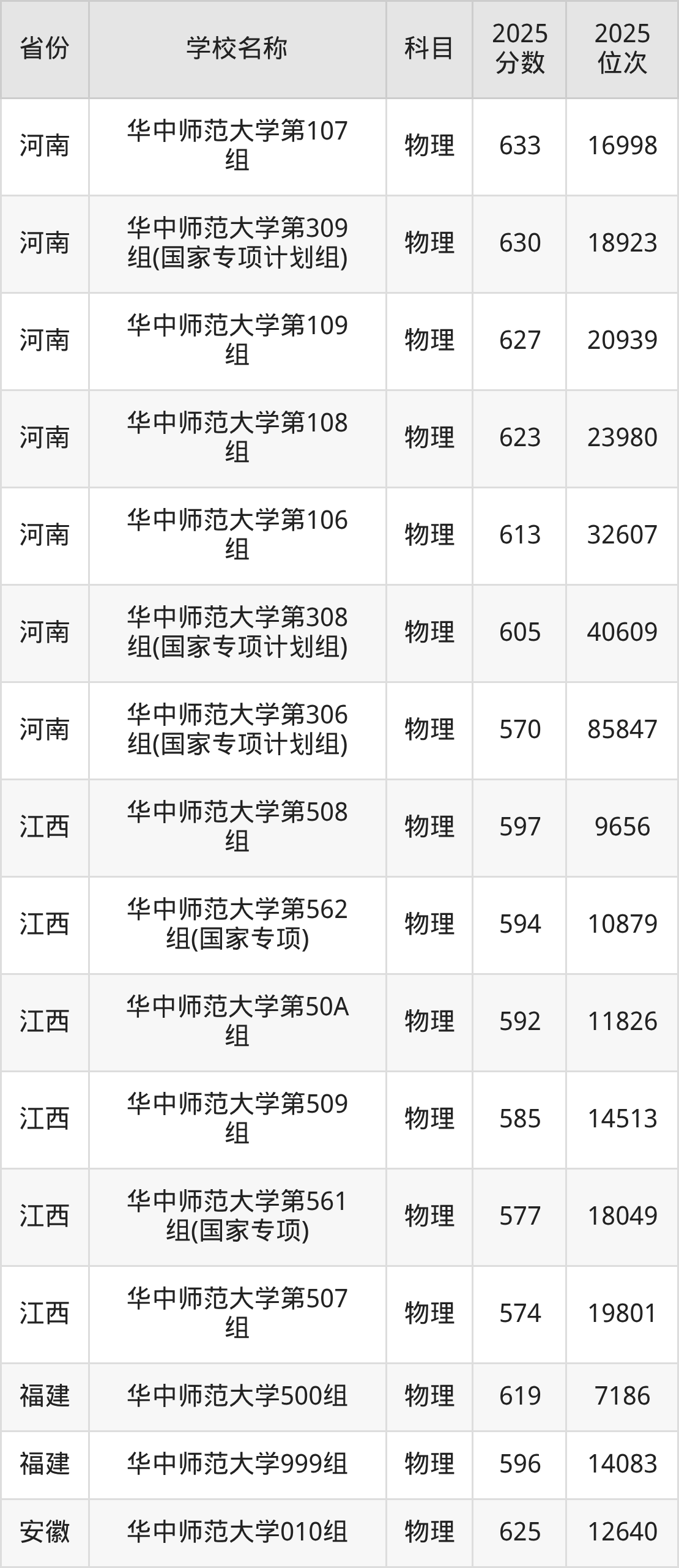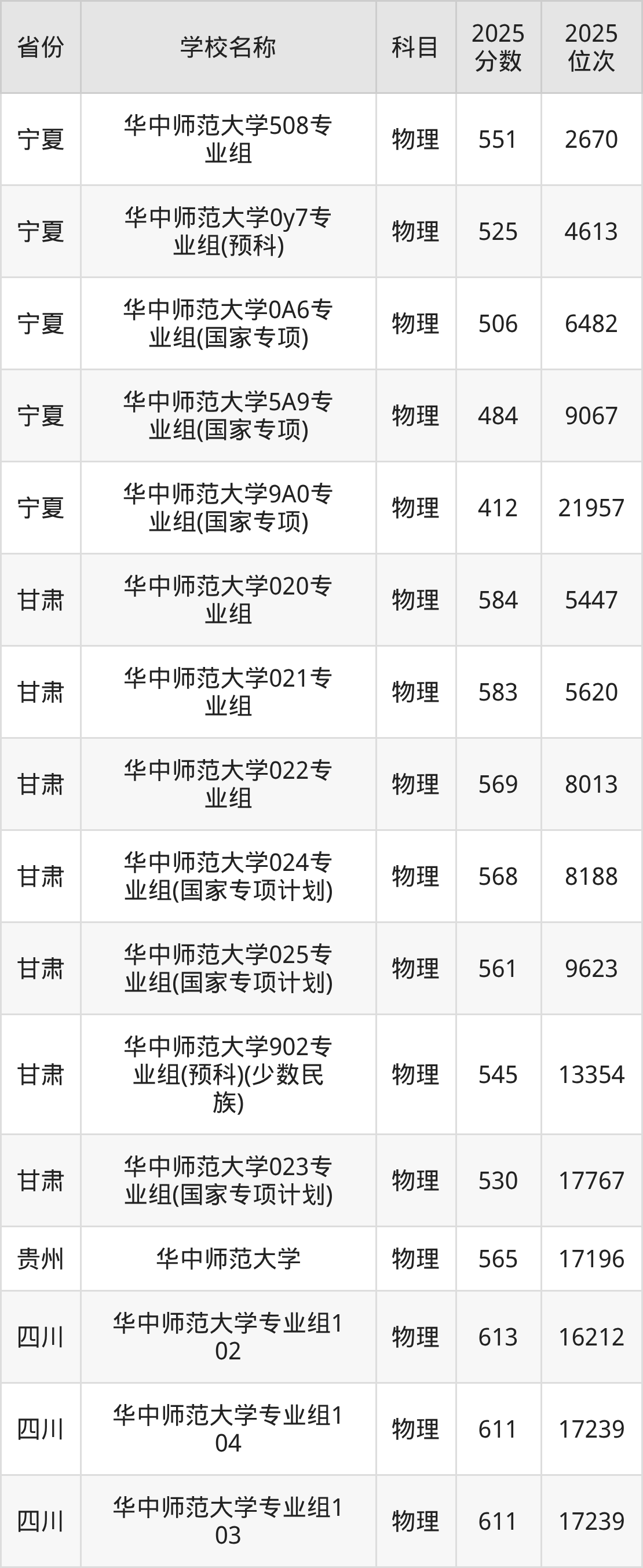 华中师范大学2025年有13个专业组面向湖北省内首选了物理科目的考生招生: