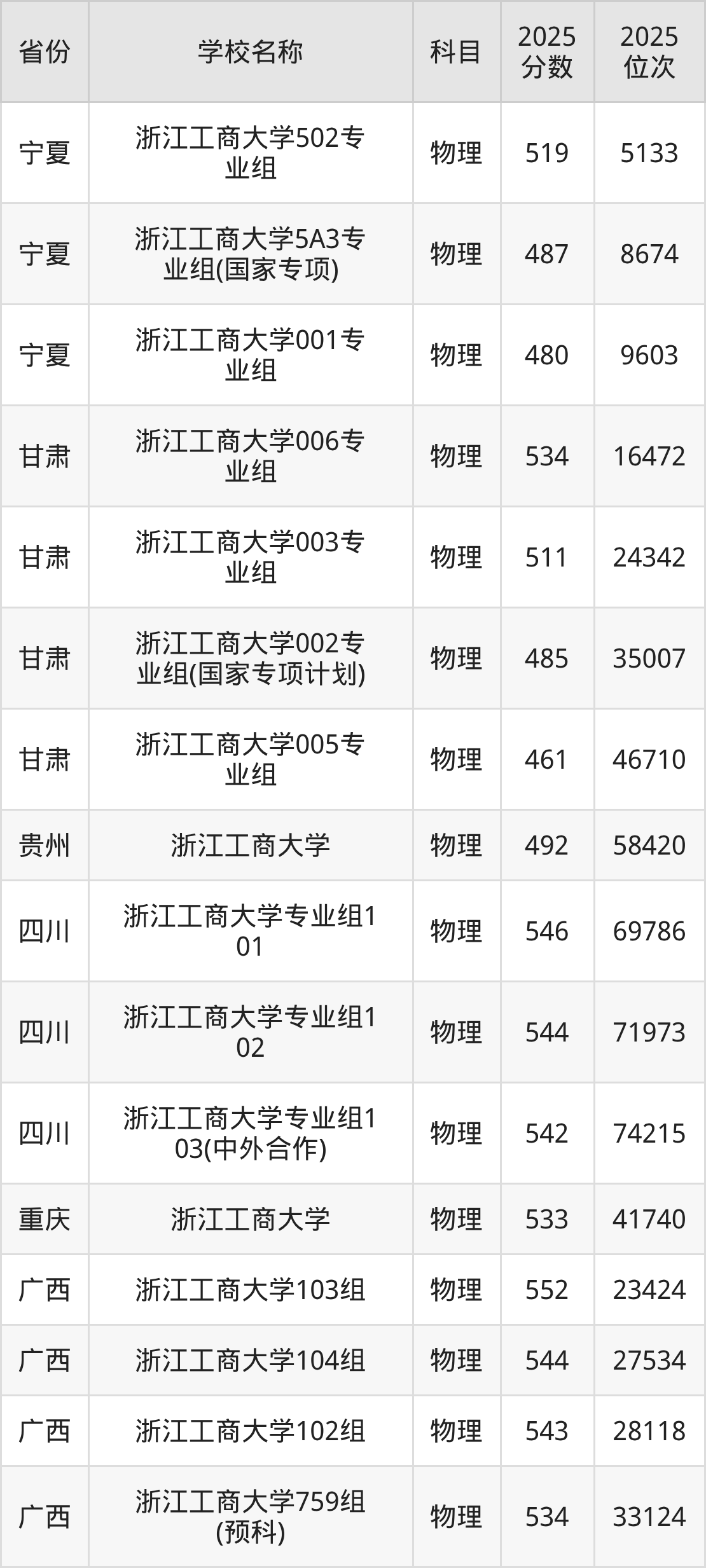 二、浙江工商大学各专业录取分数线