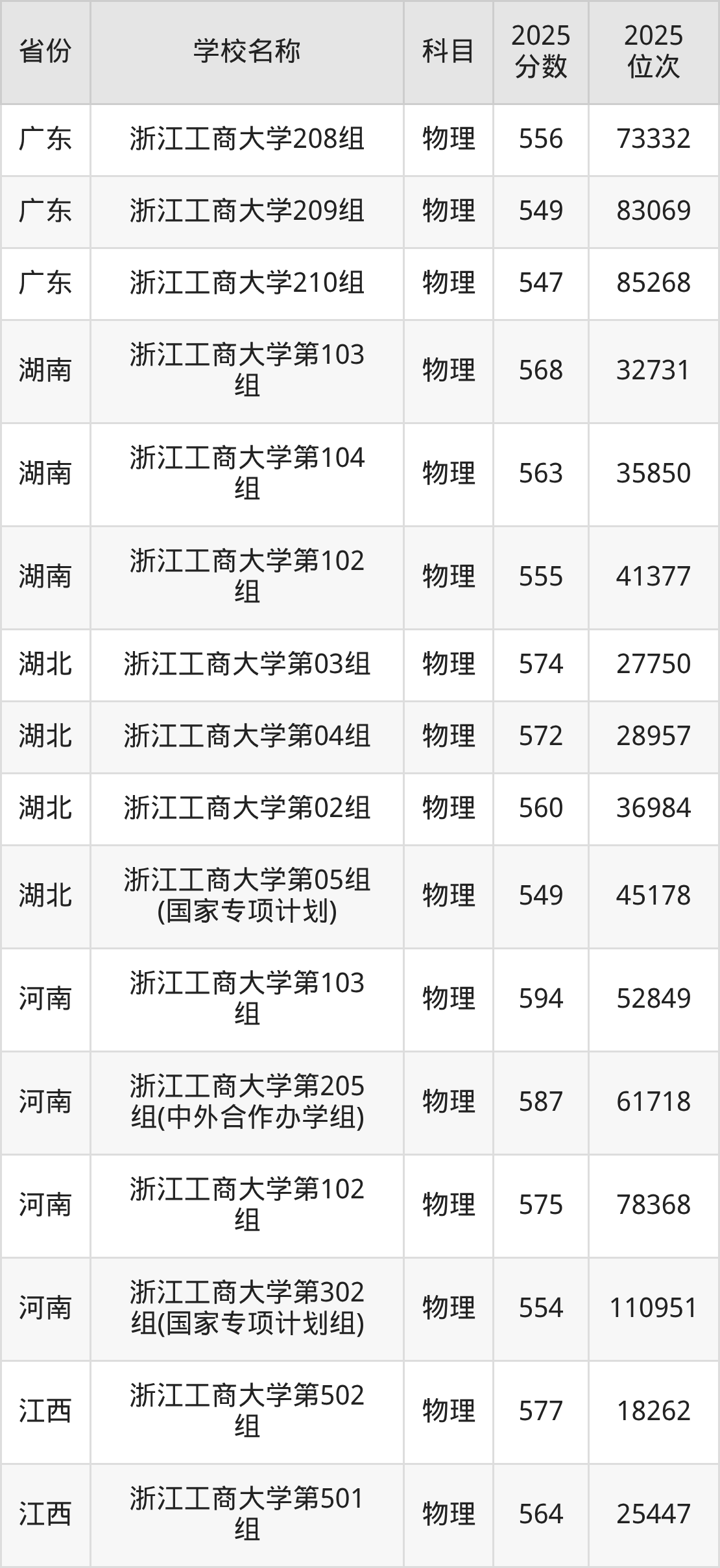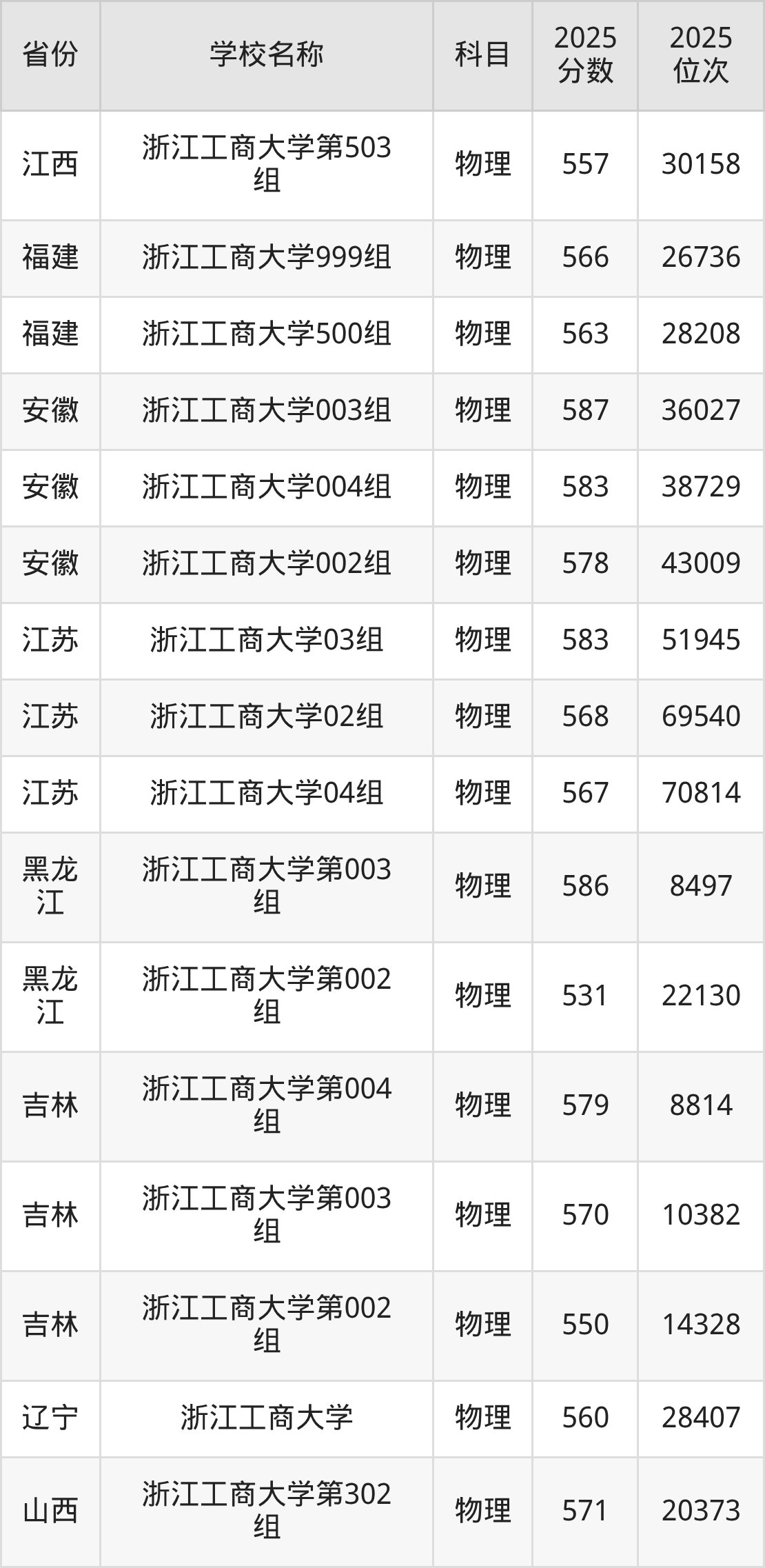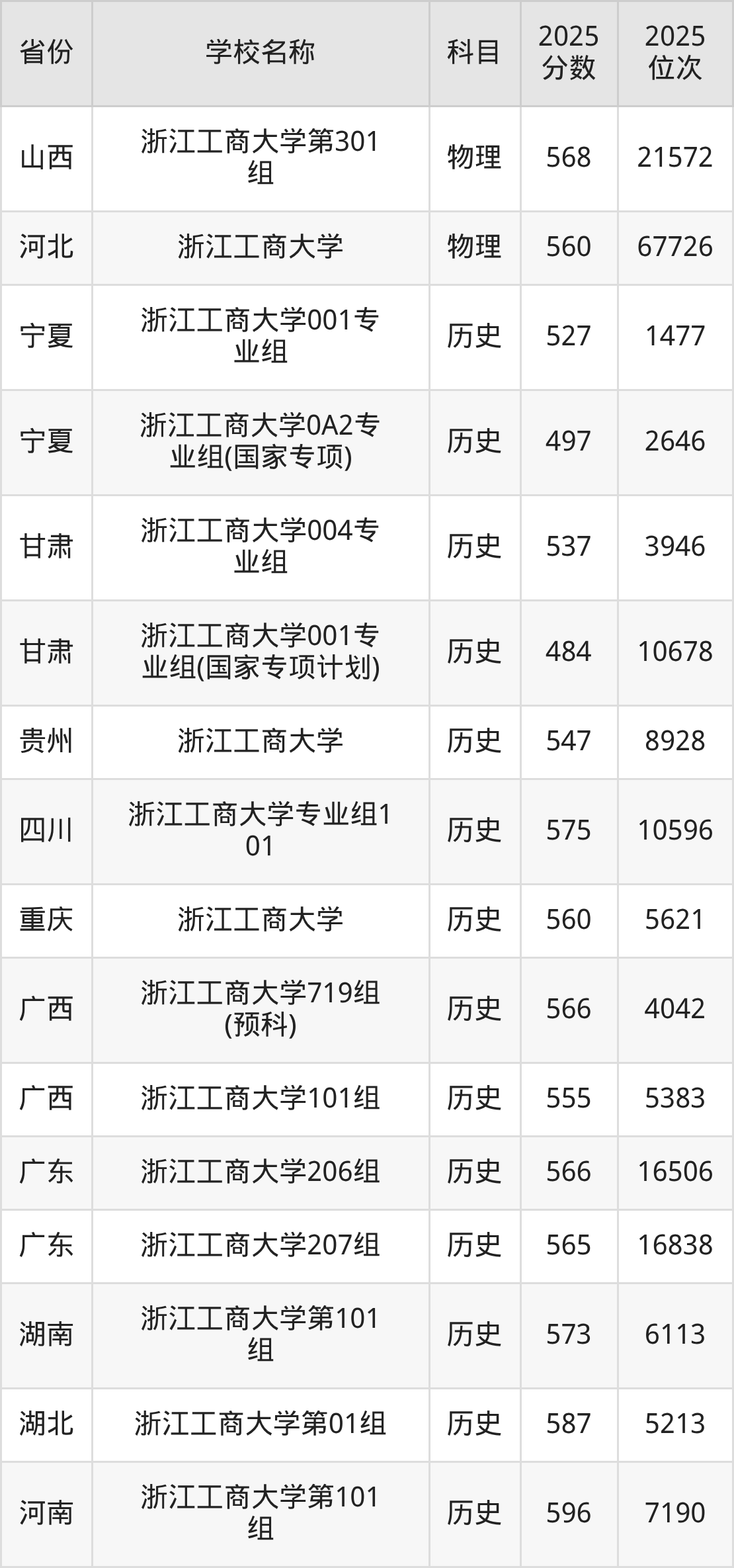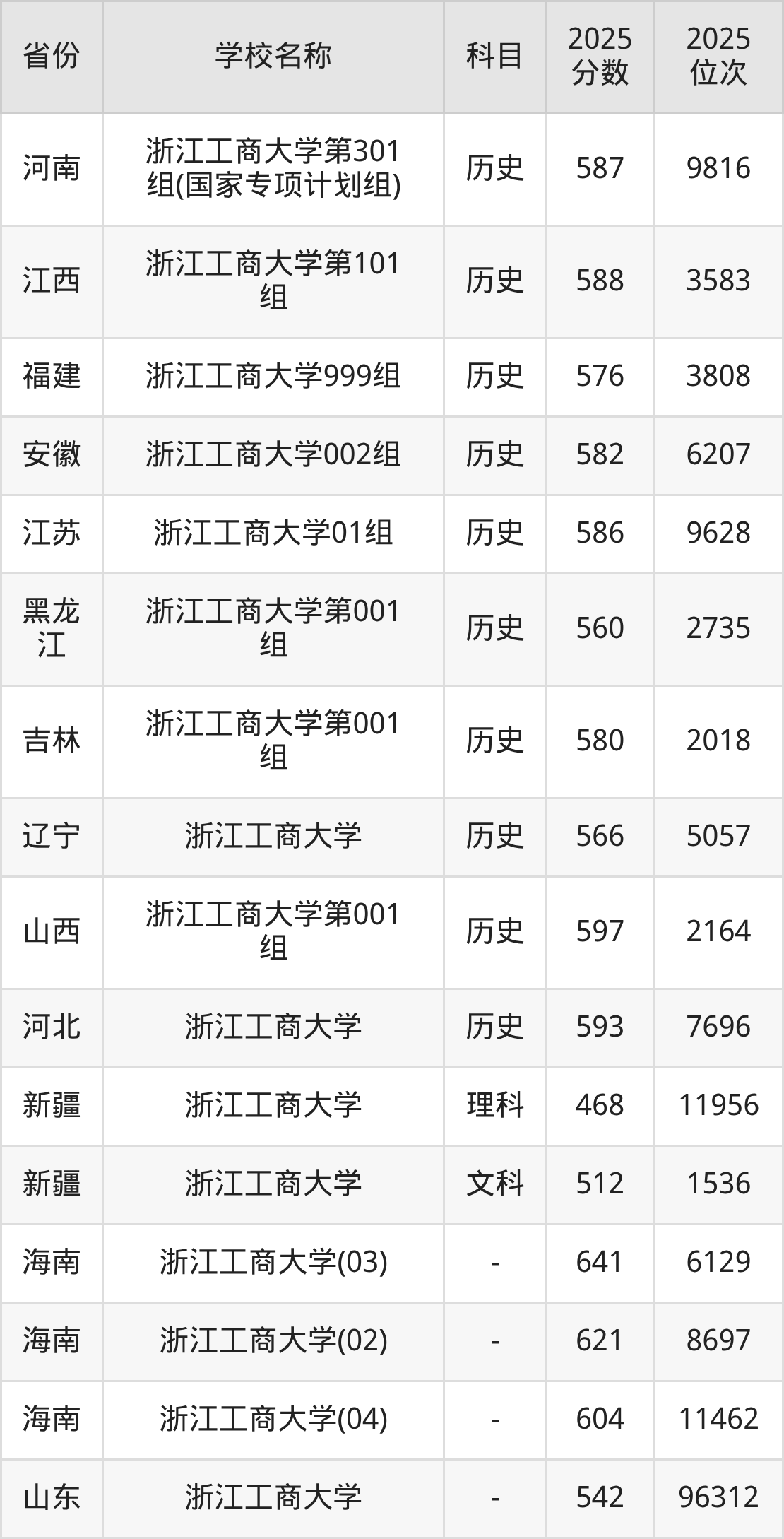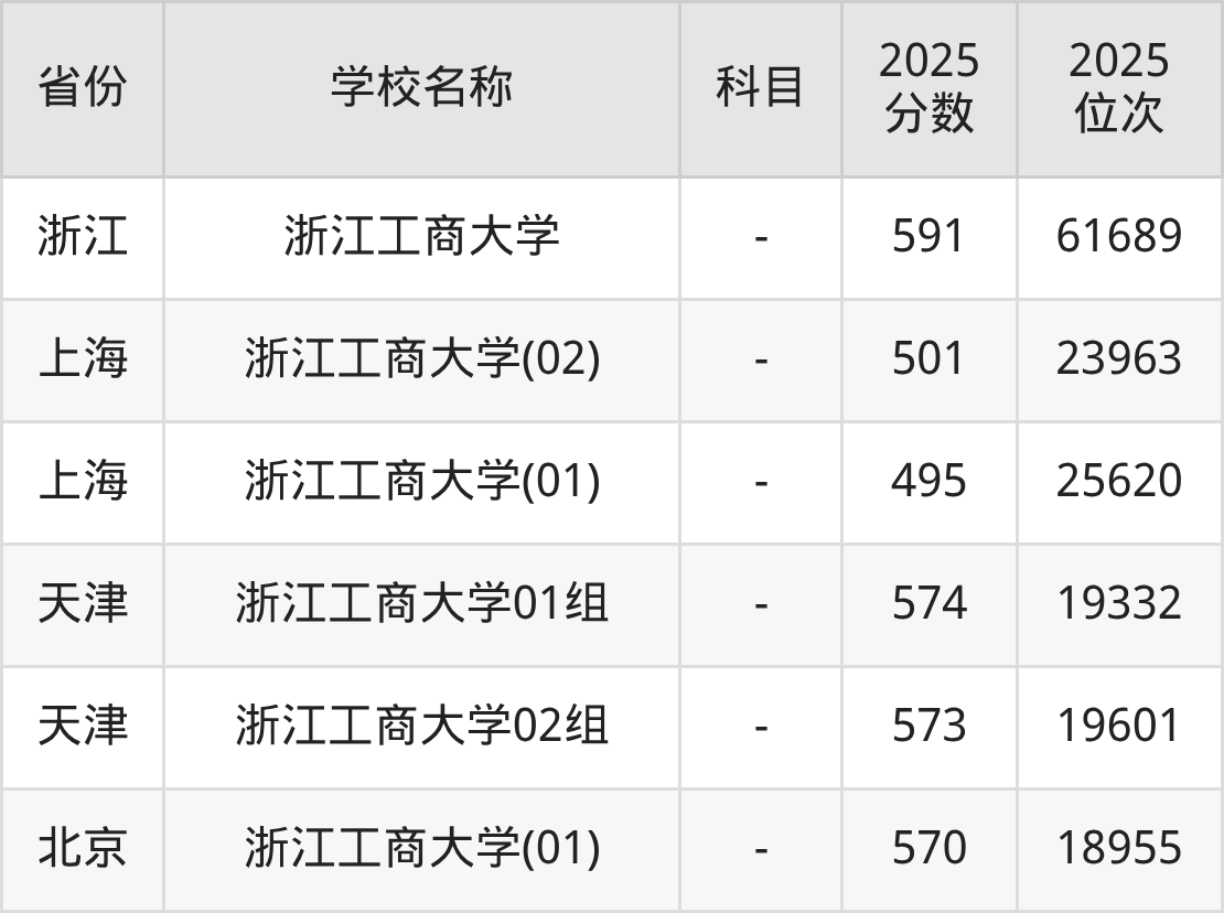 一、2025浙江工商大学录取分数线