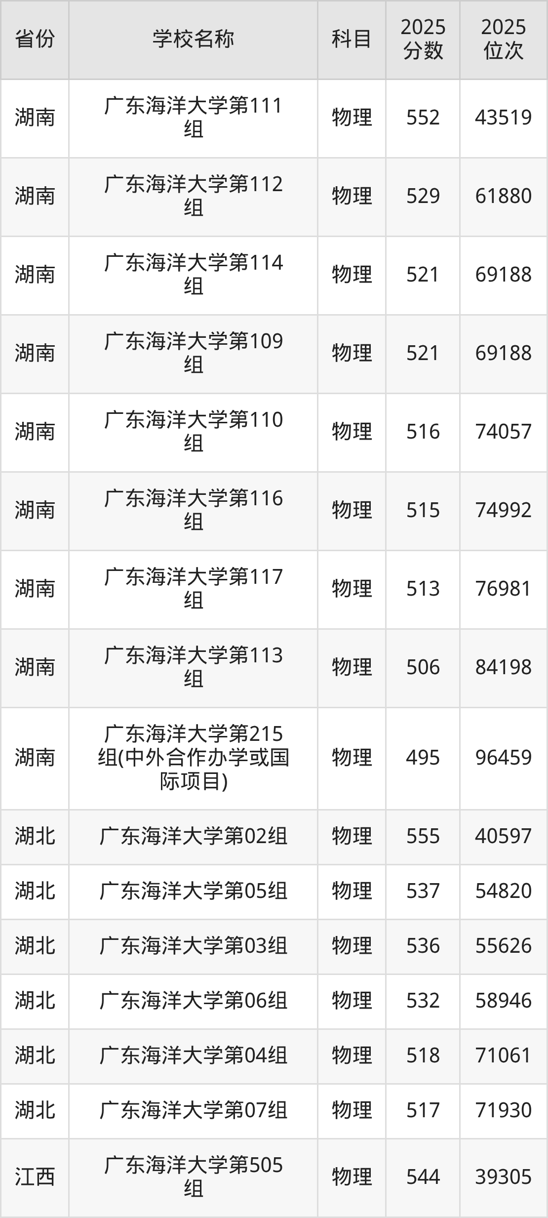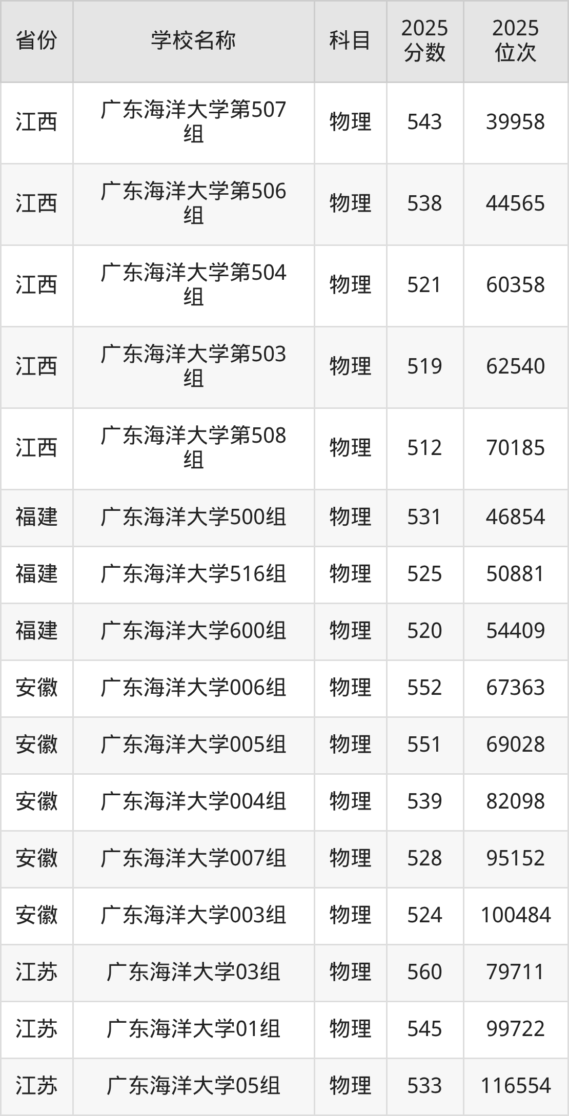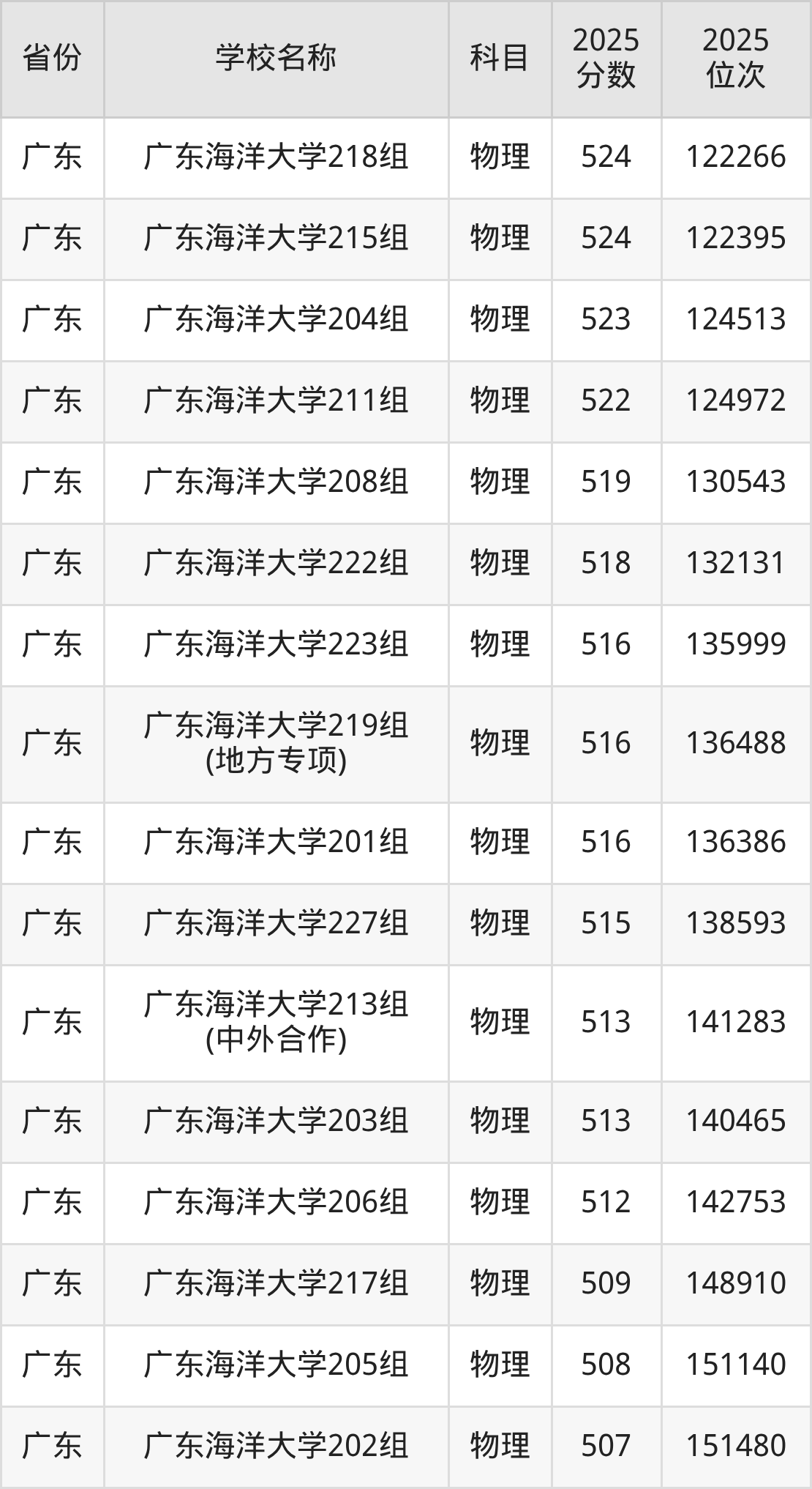 广东海洋大学2025年有27个专业组面向广东省内首选了物理科目的考生招生: