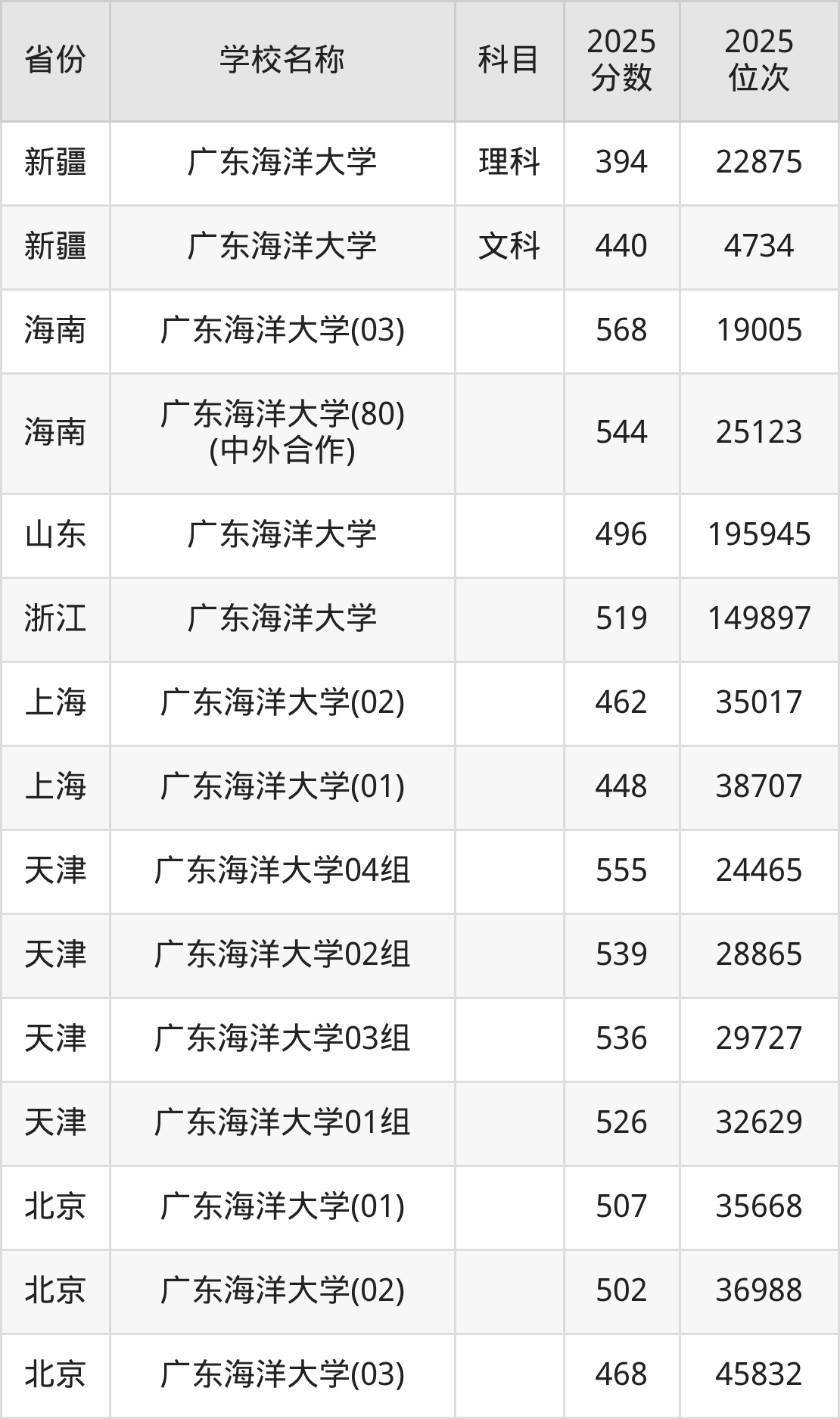 2025年广东海洋大学在全国各省本科的最低录取分数线在394~570分之间。海南高考生最低568分能上广东海洋大学、江苏物理类高考生最低560分能上广东海洋大学……下文将展示广东海洋大学在全国24个高考省份中的本科最低投档录取分汇总!