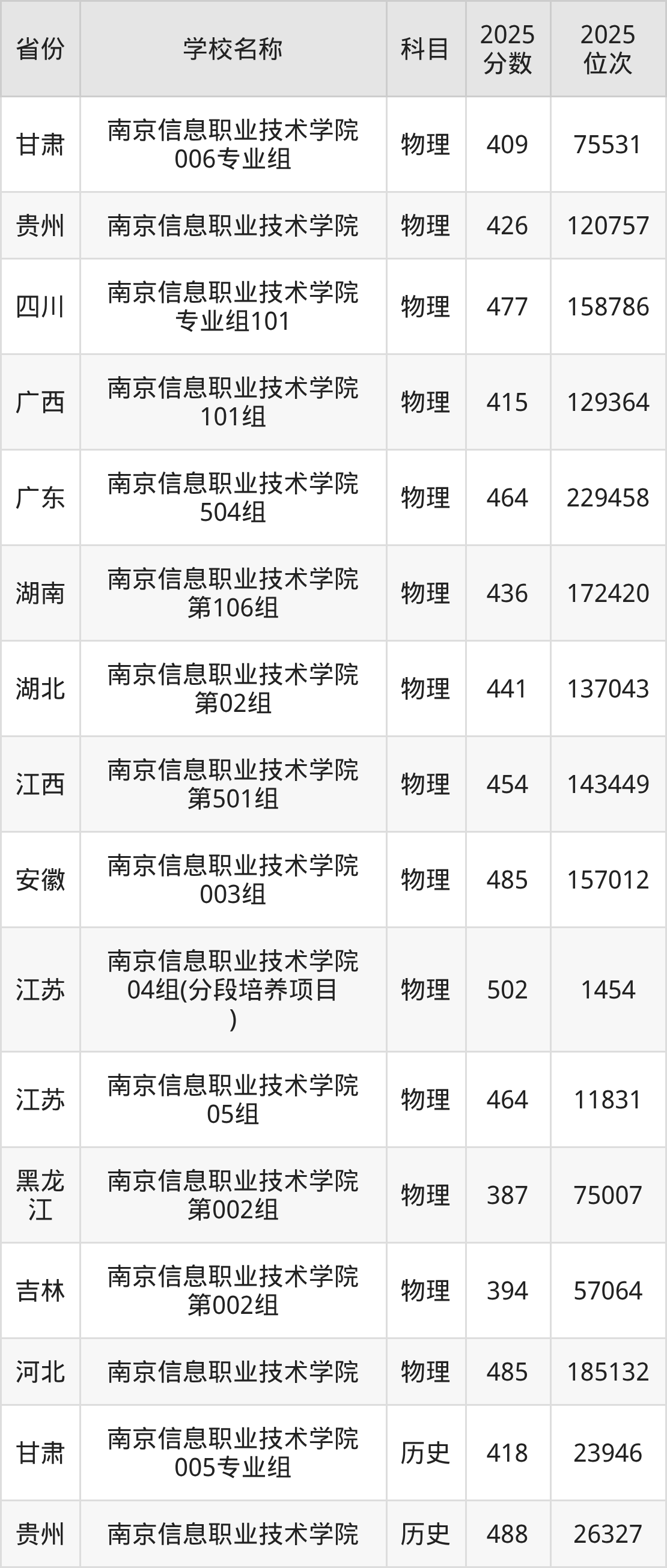 一、2025南京信息职业技术学院录取分数线