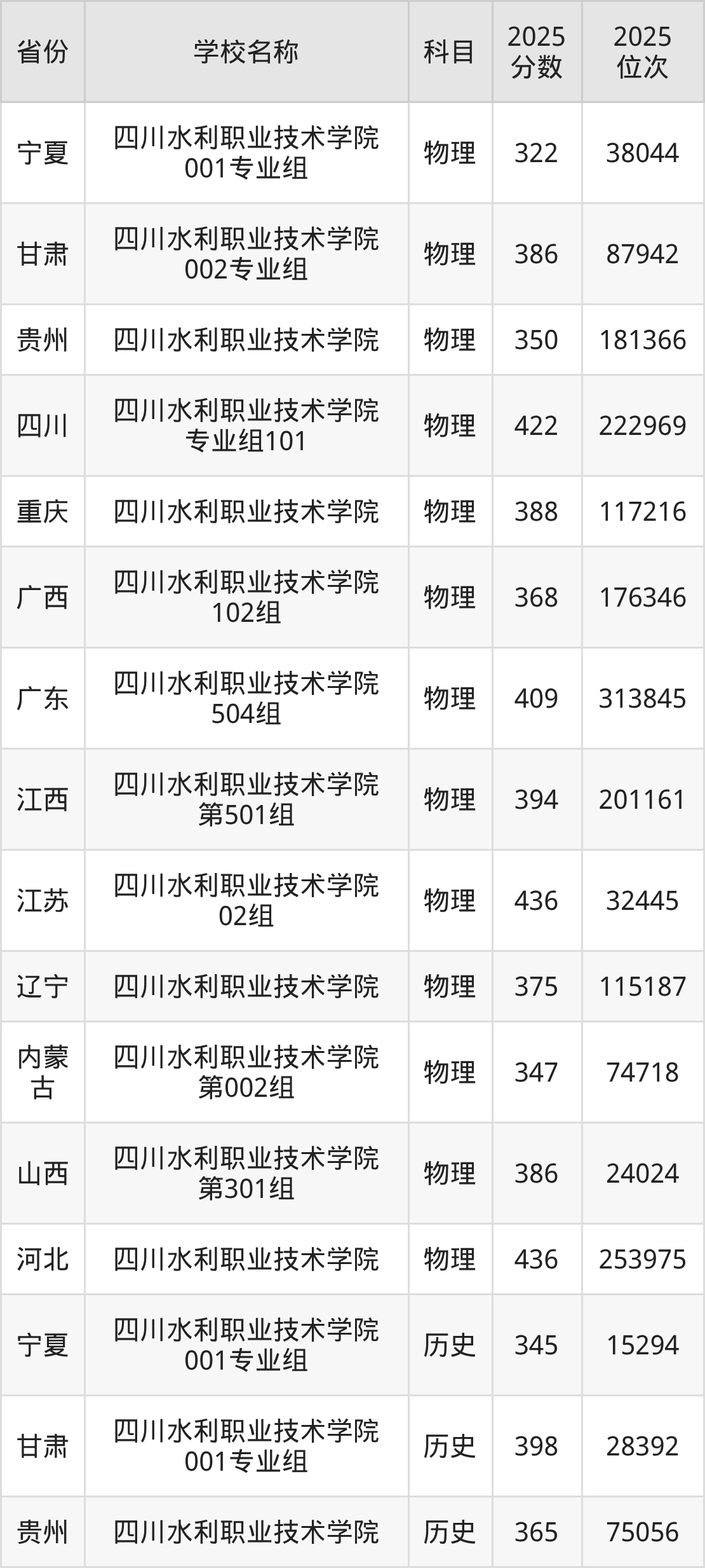 四川水利职业技术学院2025年有1个专业组面向四川省内首选了物理科目的考生招生: