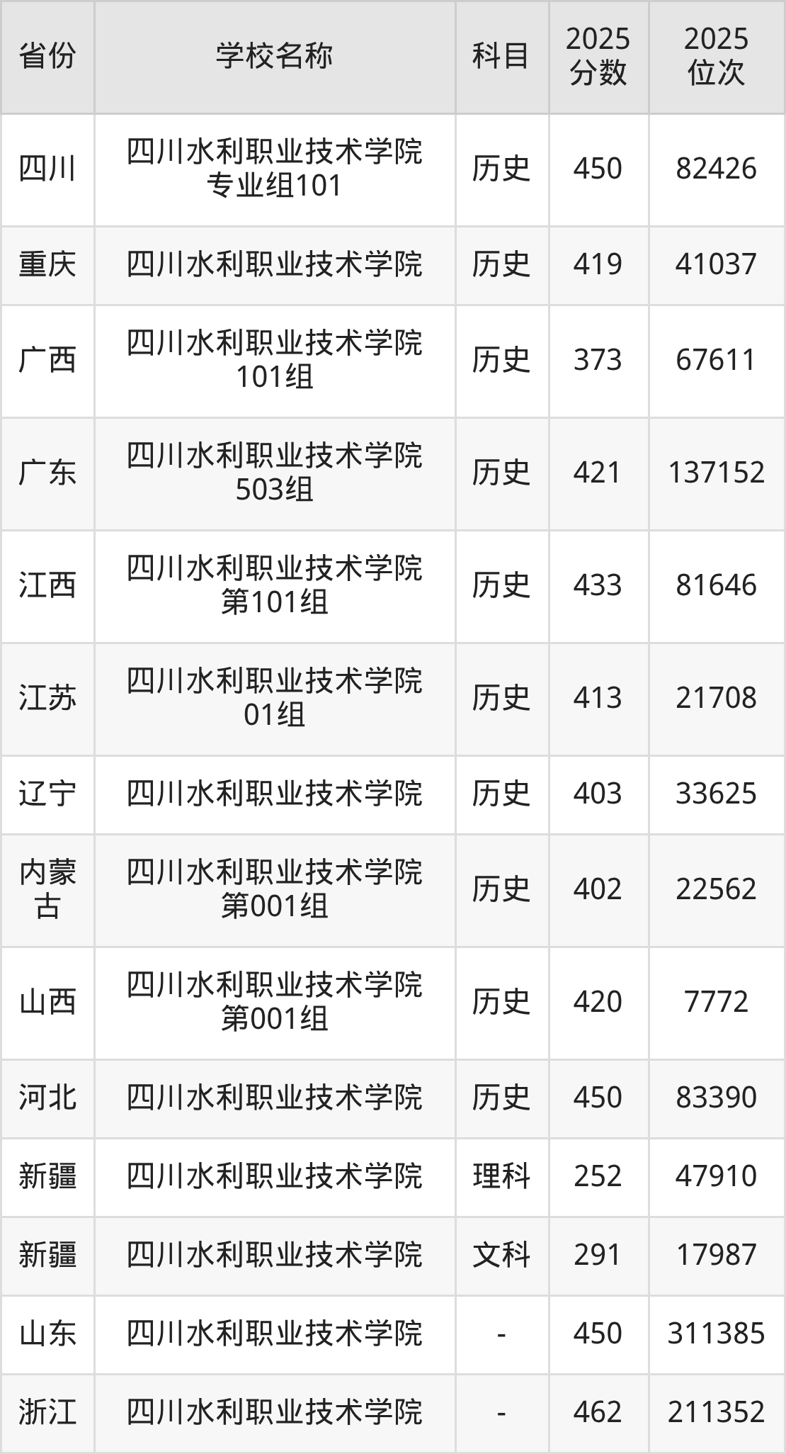 二、四川水利职业技术学院各专业录取分数线