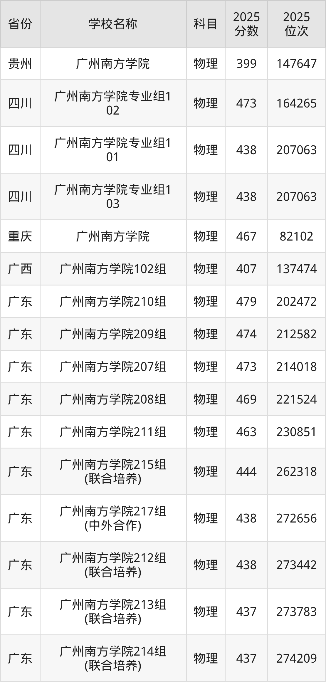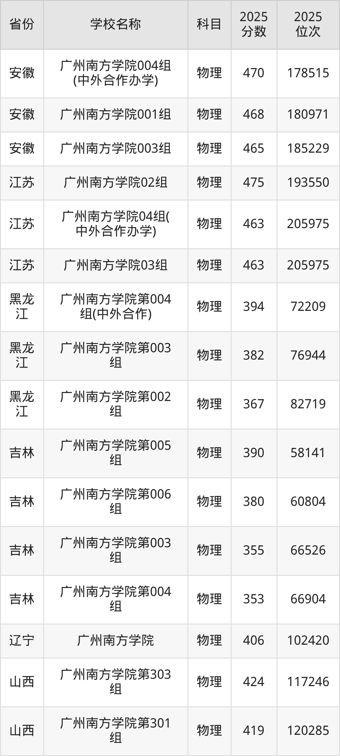 广州南方学院2025年有11个专业组面向广东省内首选了物理科目的考生招生: