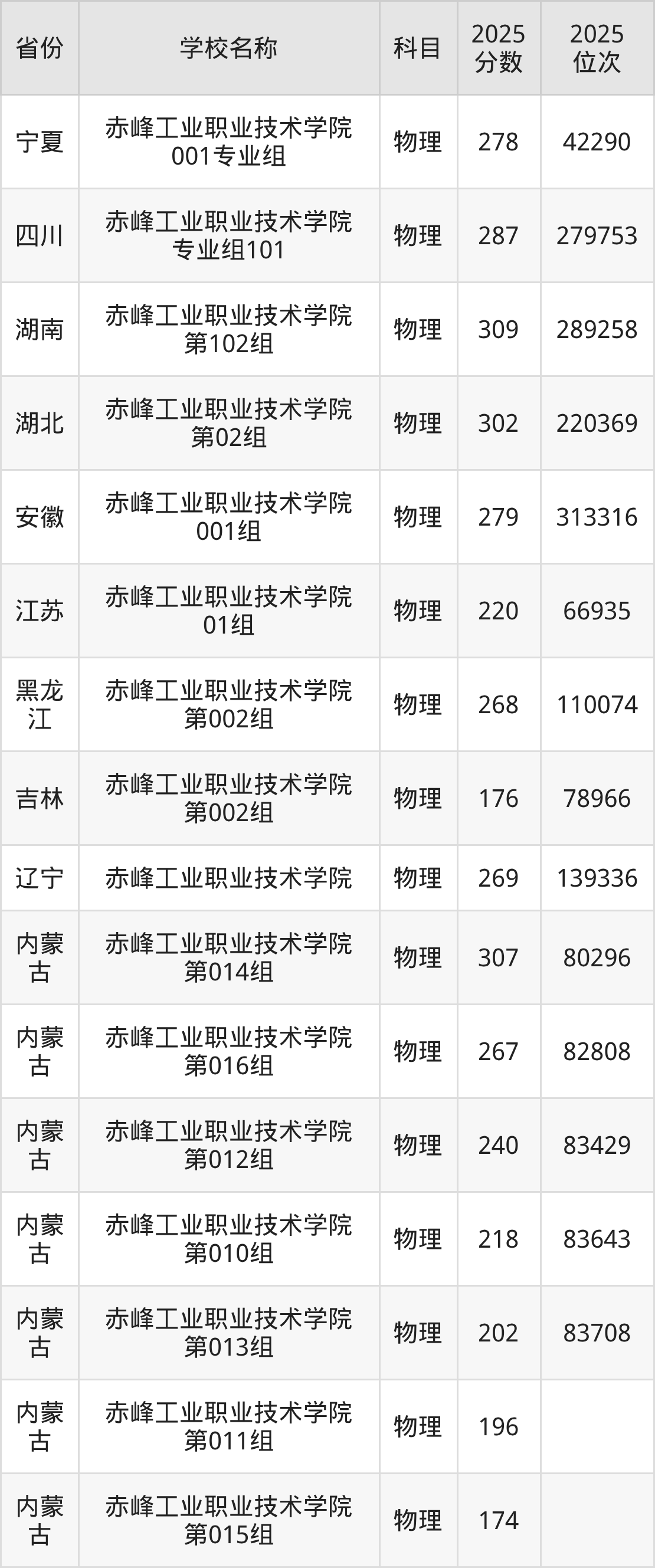 二、赤峰工业职业技术学院各专业录取分数线