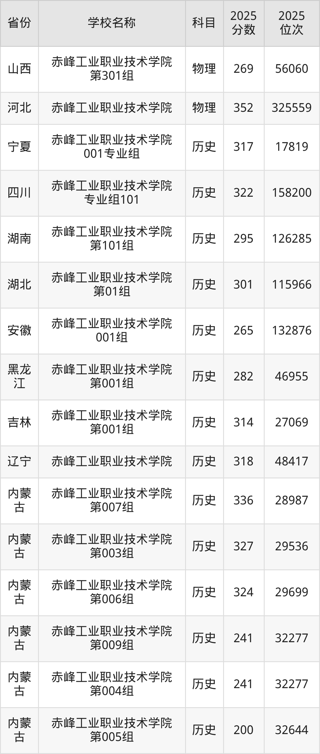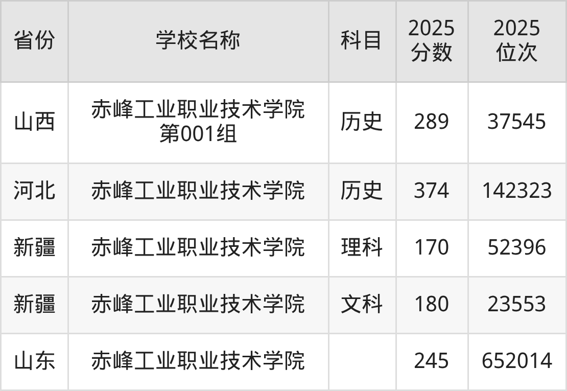 一、2025赤峰工业职业技术学院录取分数线