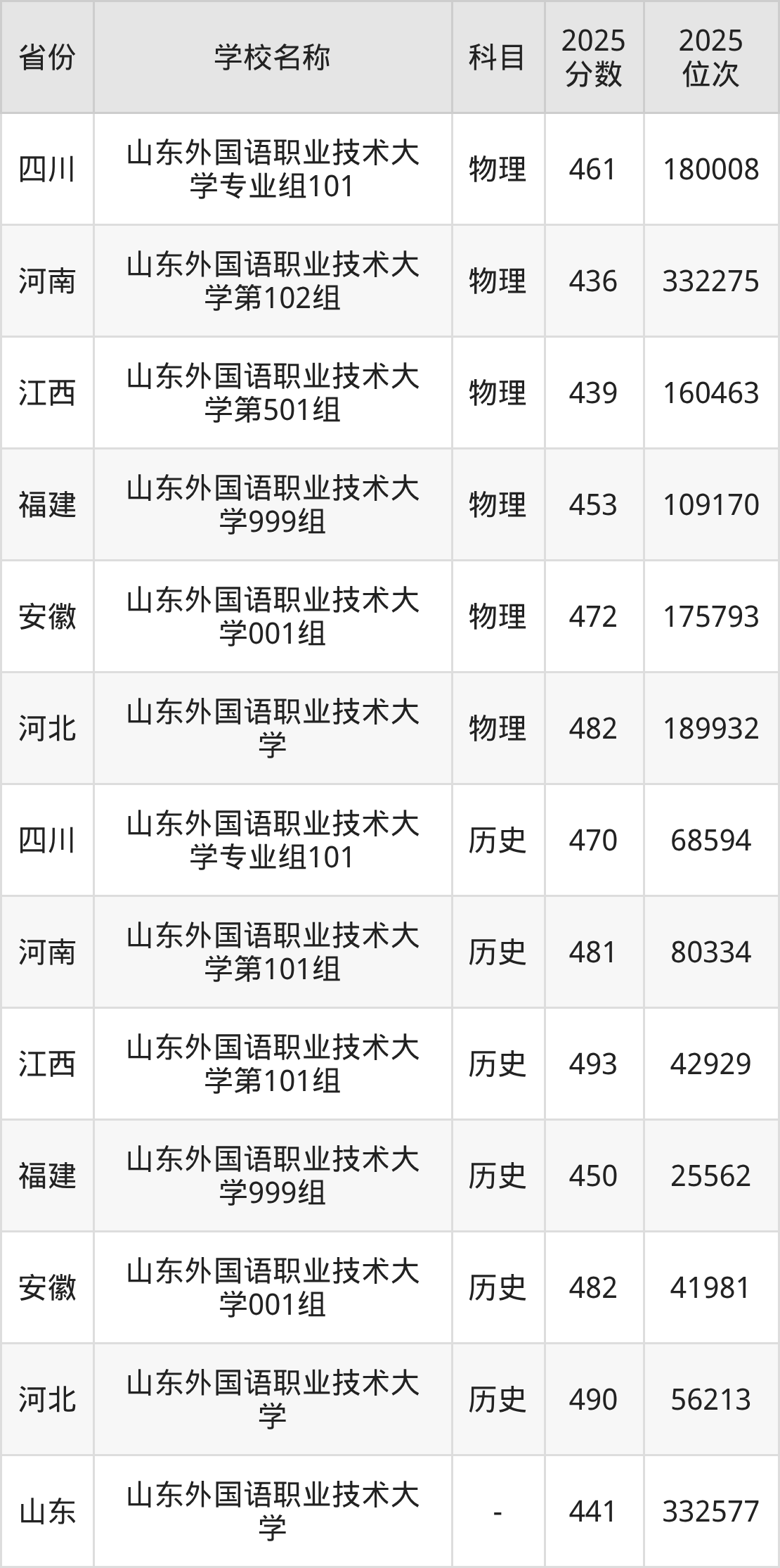 2025年山东外国语职业技术大学在全国各省本科的最低录取分数线在436~493分之间。河北物理类高考生最低482分能上山东外国语职业技术大学、安徽物理类高考生最低472分能上山东外国语职业技术大学……下文将展示山东外国语职业技术大学在全国7个高考省份中的本科最低投档录取分汇总!