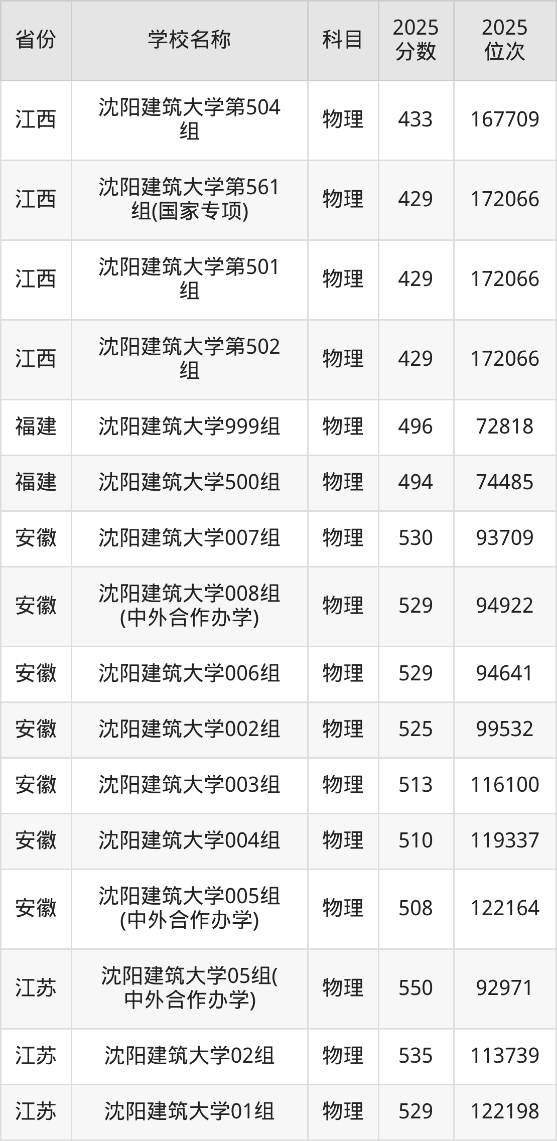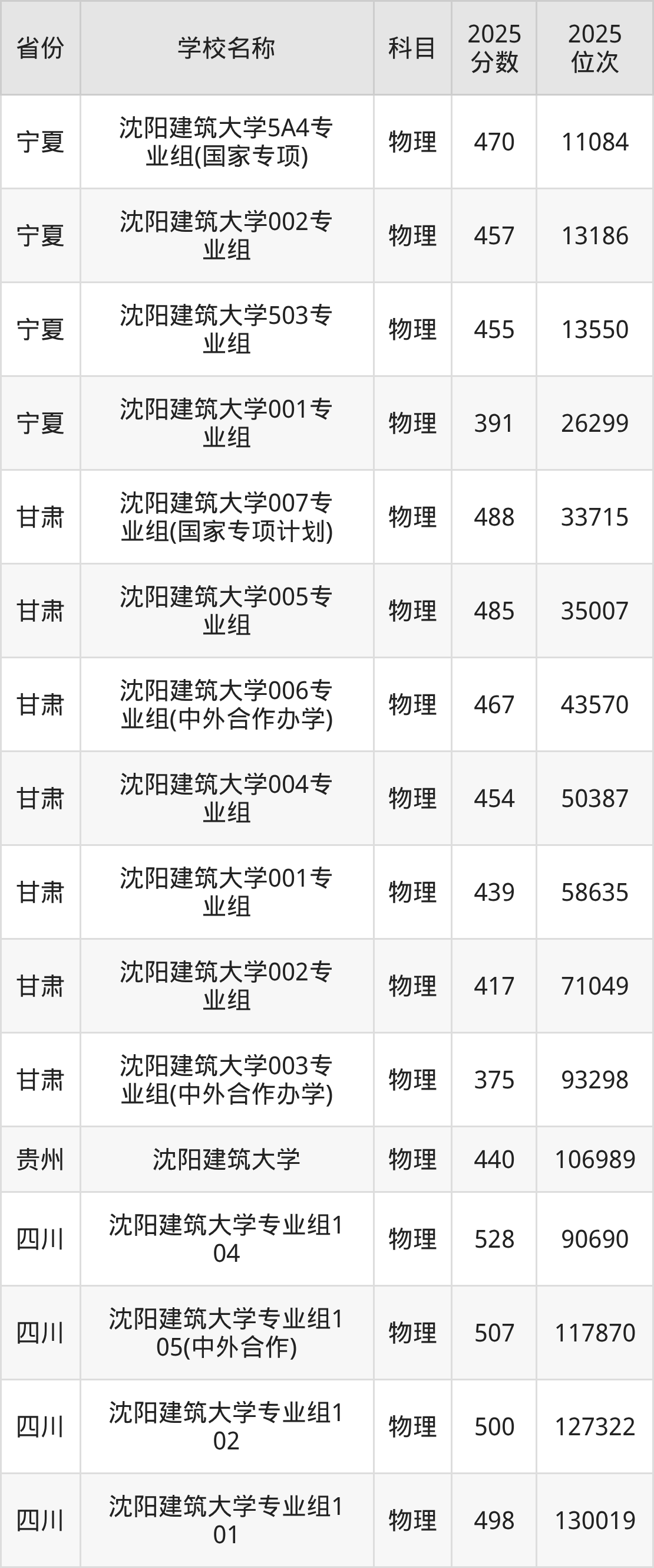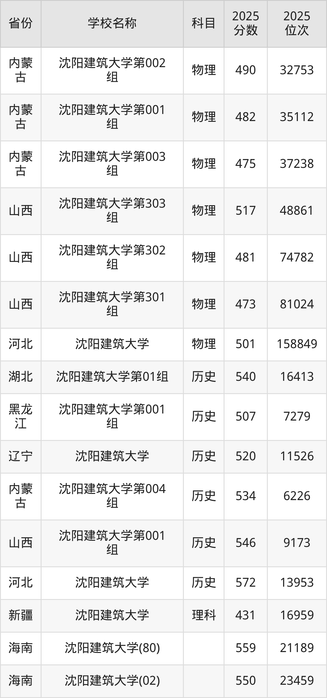 二、沈阳建筑大学各专业录取分数线
