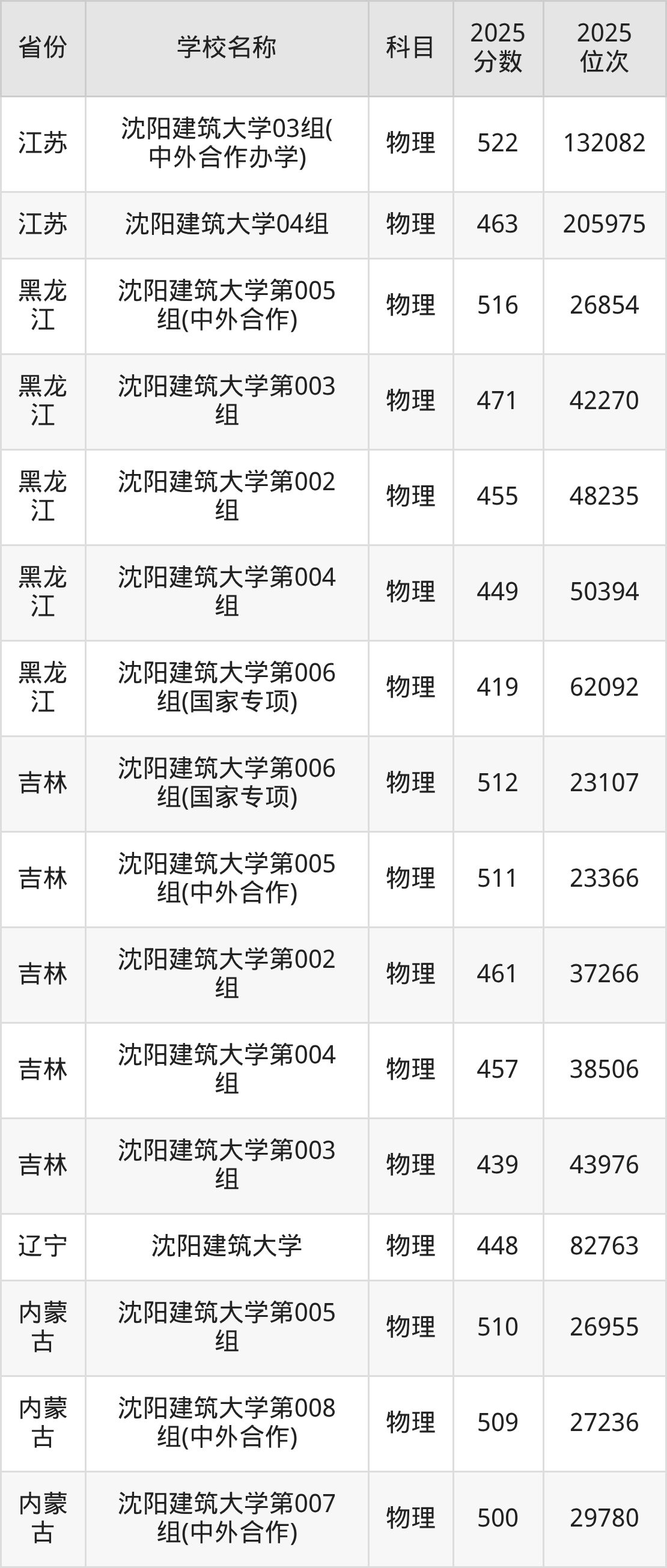 2025年沈阳建筑大学在全国各省本科的最低录取分数线在375~572分之间。海南高考生最低559分能上沈阳建筑大学、江苏物理类高考生最低550分能上沈阳建筑大学……下文将展示沈阳建筑大学在全国26个高考省份中的本科最低投档录取分汇总!