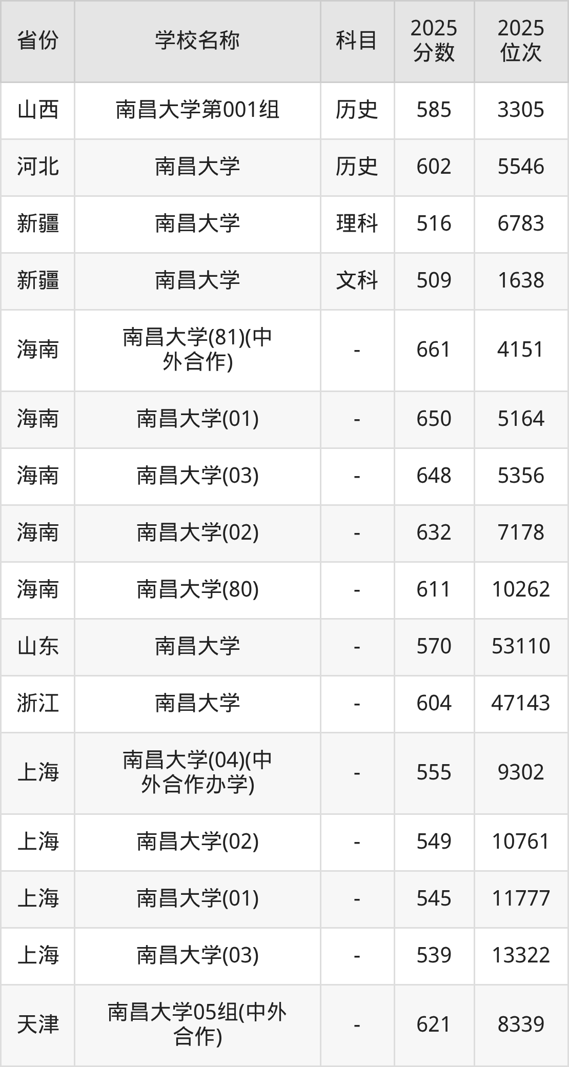 2025年南昌大学在全国各省本科的最低录取分数线在509~661分之间。海南高考生最低661分能上南昌大学、河南物理类高考生最低636分能上南昌大学……下文将展示南昌大学在全国27个高考省份中的本科最低投档录取分汇总!