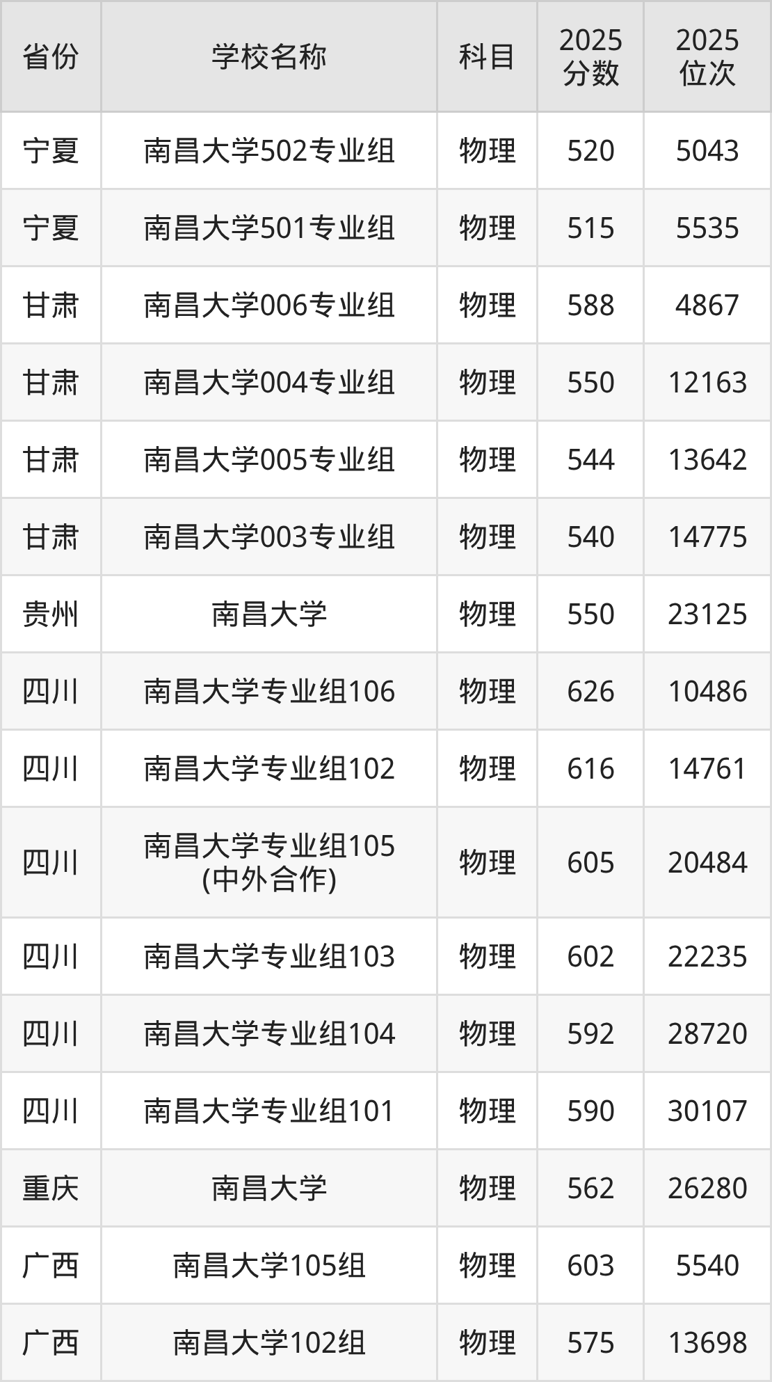 南昌大学2025年有21个专业组面向江西省内首选了物理科目的考生招生: