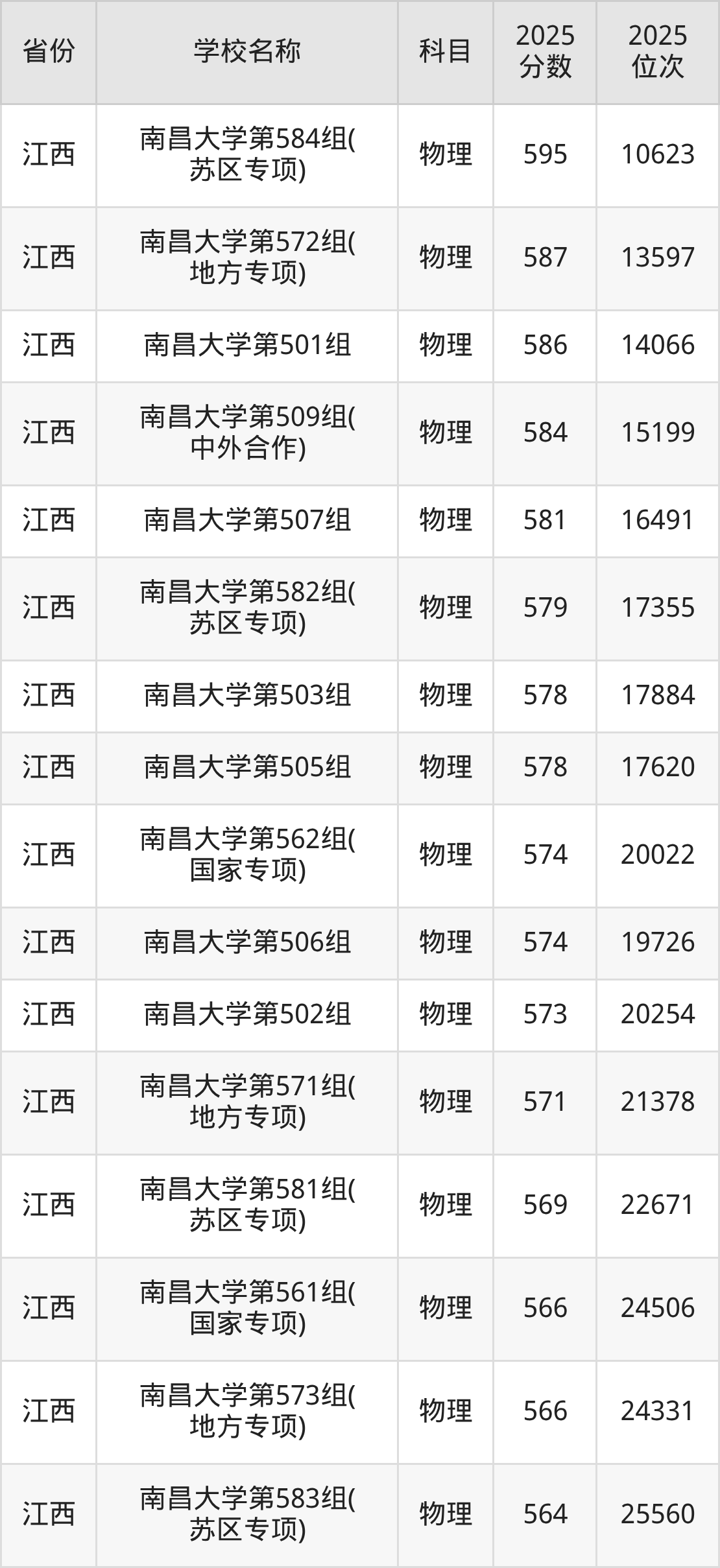 再看江西高考2025年特招批次线,历史类是539分、物理类是505分。通过对比发现:南昌大学2025年历史类最低分比特招线高35分,物理类最低分比特招线高40分。2026届江西高考生,可通过每一次模考划线,来判断自己的成绩是否有机会被南昌大学录取。