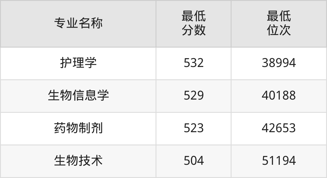 | 宁夏 | 理科第一批本 科 | —— | 495/537/538 |
