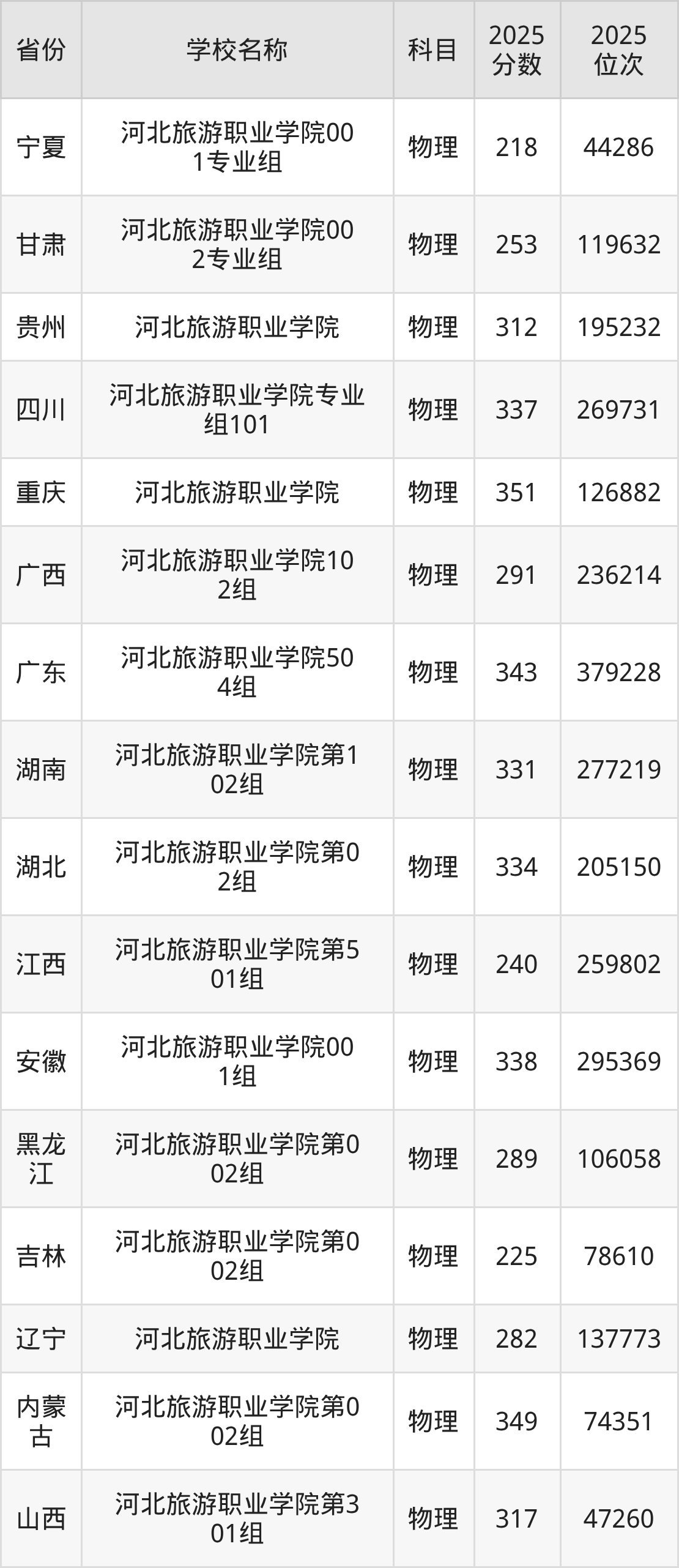 河北旅游职业学院2025年面向河北省内首选了物理科目的考生招生: