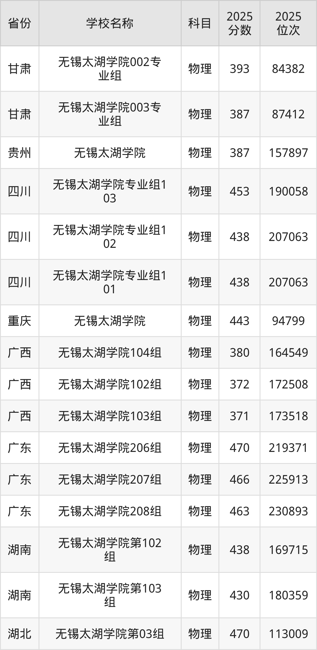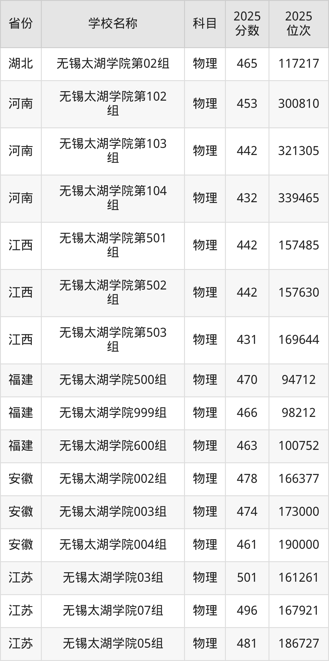 无锡太湖学院2025年有5个专业组面向江苏省内首选了物理科目的考生招生: