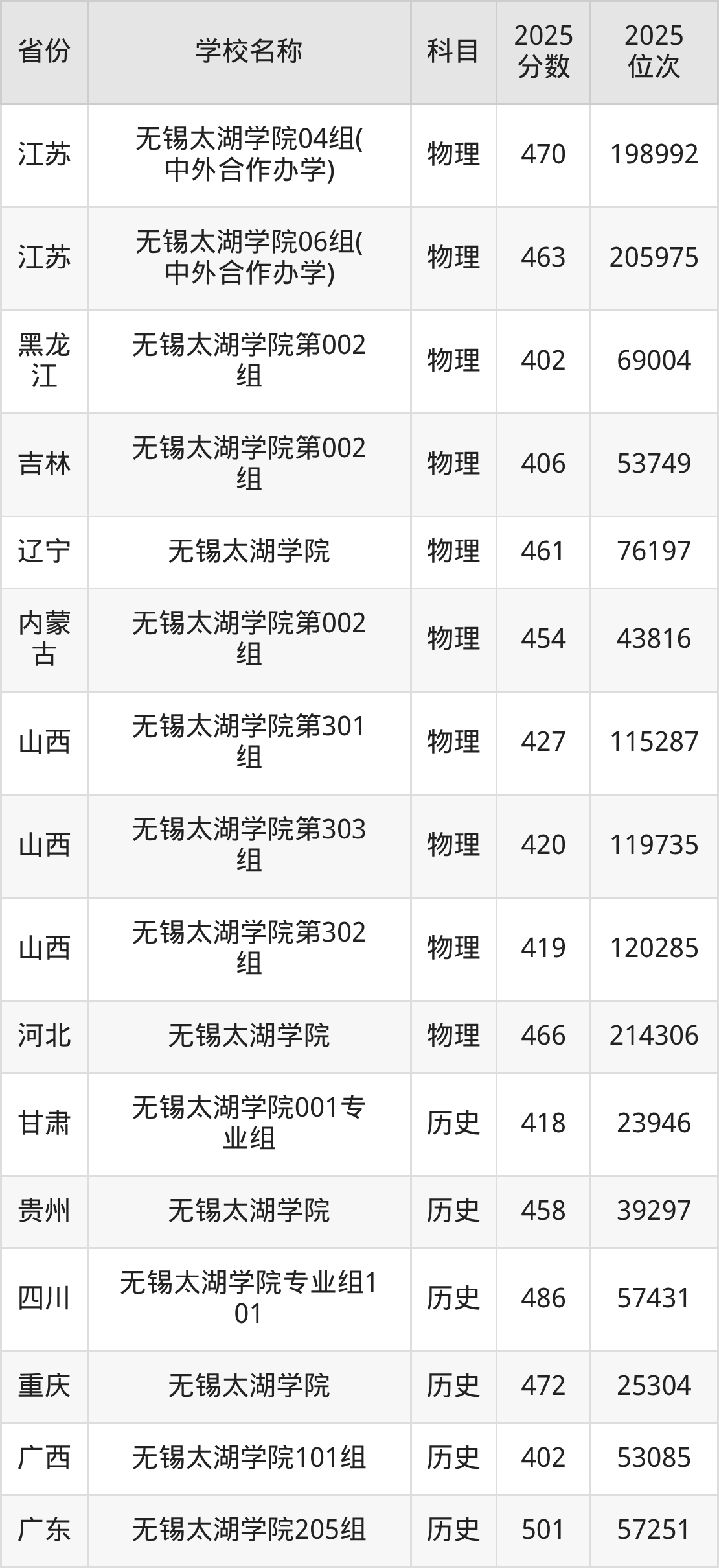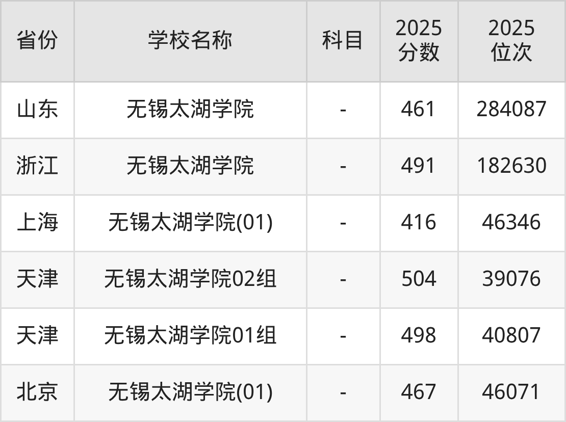 2025年无锡太湖学院在全国各省本科的最低录取分数线在371~539分之间。海南高考生最低539分能上无锡太湖学院、天津高考生最低504分能上无锡太湖学院……下文将展示无锡太湖学院在全国25个高考省份中的本科最低投档录取分汇总!