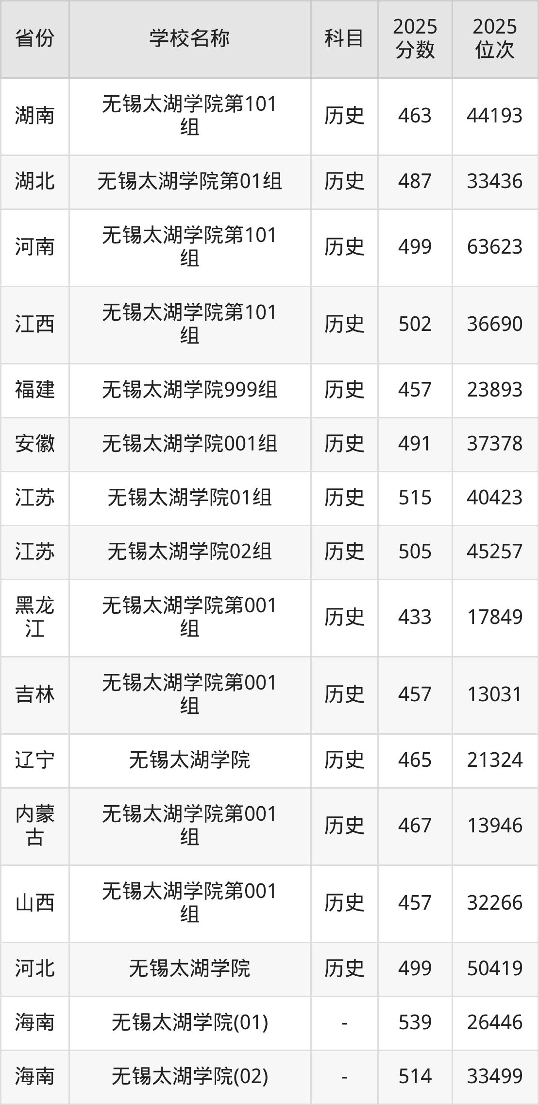 无锡太湖学院2025年有2个专业组面向江苏省内首选了历史科目的考生招生: